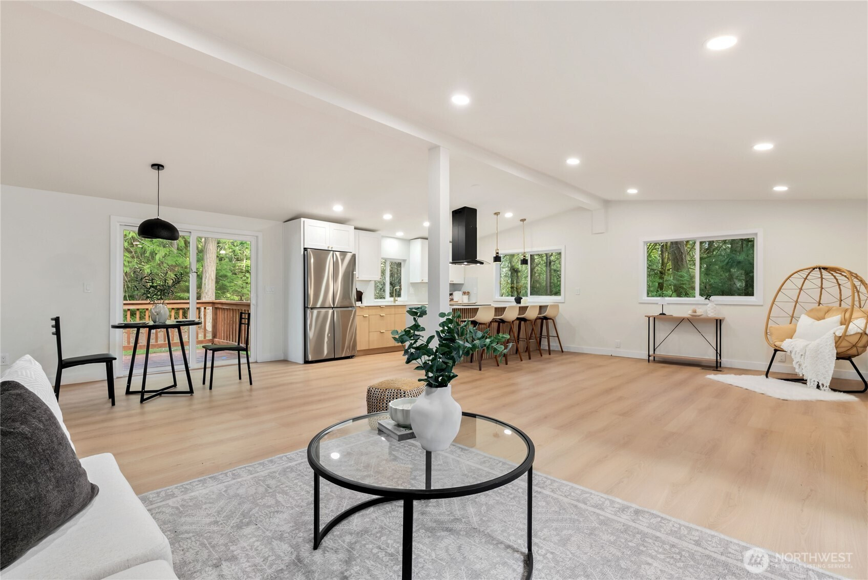 Beautifully remodeled home in the heart of Longbranch, offering a perfect blend of modern design and peaceful coastal living. Thoughtfully updated with vaulted ceilings, a stunning new kitchen with stylish countertops, and new vinyl flooring throughout, this home feels bright, open, and refined. The spacious primary suite is a true retreat, featuring a gorgeous spa-inspired bathroom with a freestanding soaking tub, separate walk-in shower, dual sinks, and generously sized closets for comfort and functionality. Set in a private and quiet setting, the property sits on a generous lot with a large detached garage, ideal for parking, storage, or a workshop. Enjoy scenic views and tranquil surroundings on your drive home, where the beauty of the Key Peninsula sets the tone for everyday living. Just one block from the Puget Sound boat launch, with boat parking available on the water, this home is perfect for boating, fishing, and outdoor enthusiasts seeking a refined yet relaxed lifestyle. A rare opportunity to enjoy luxury, privacy, and coastal charm in one exceptional property.