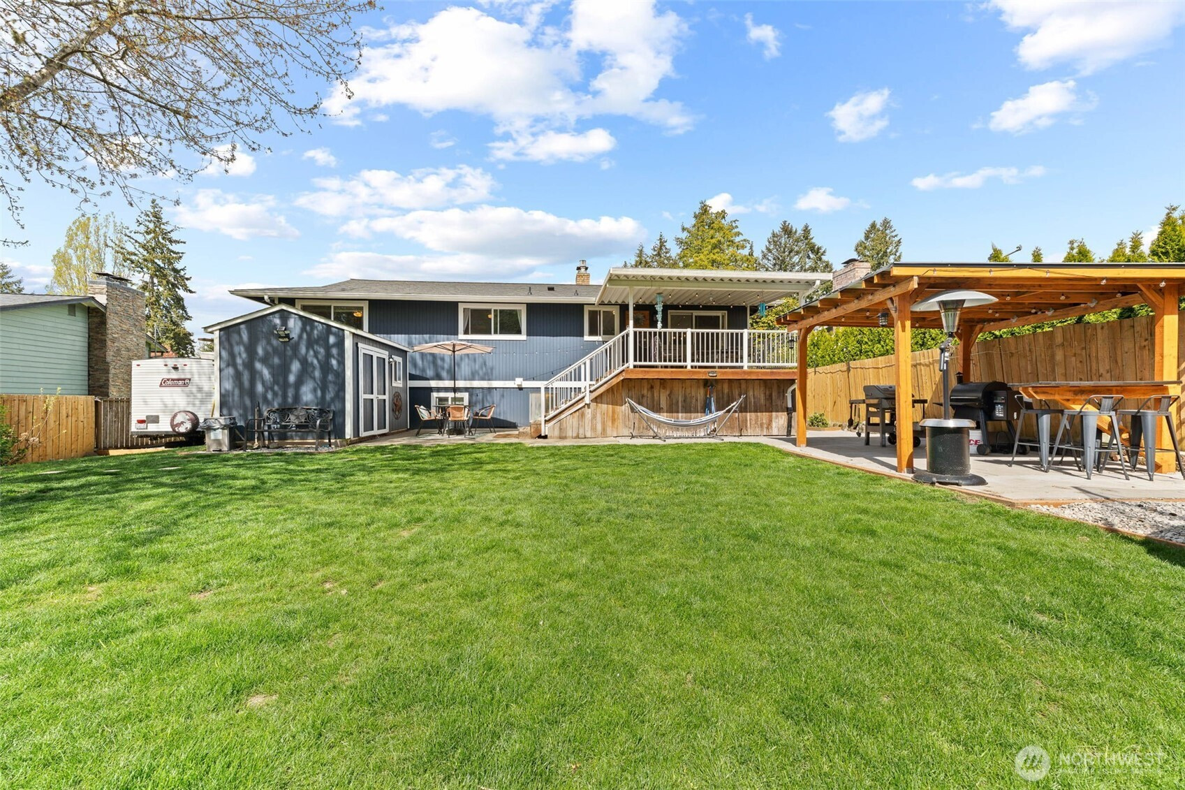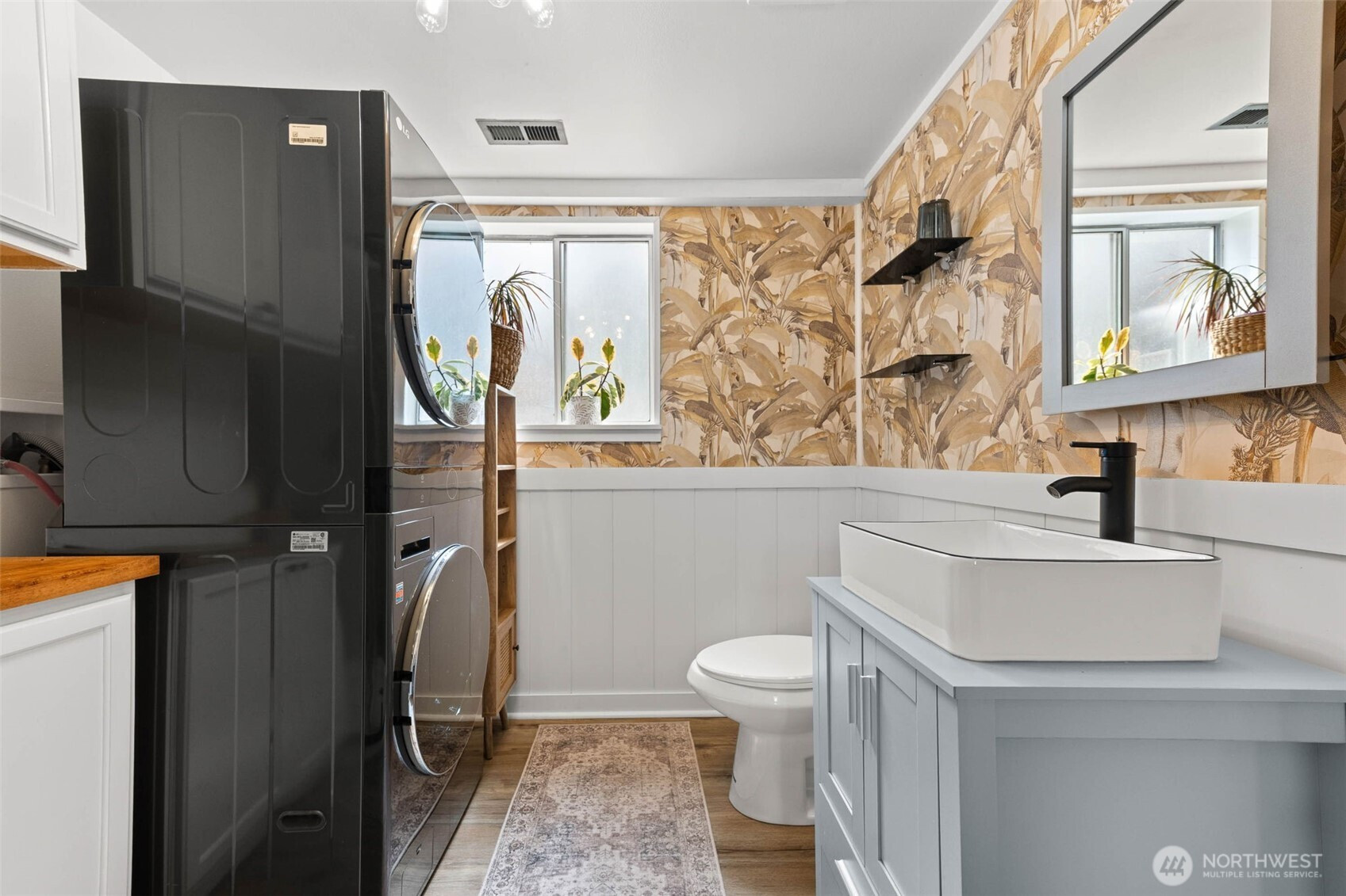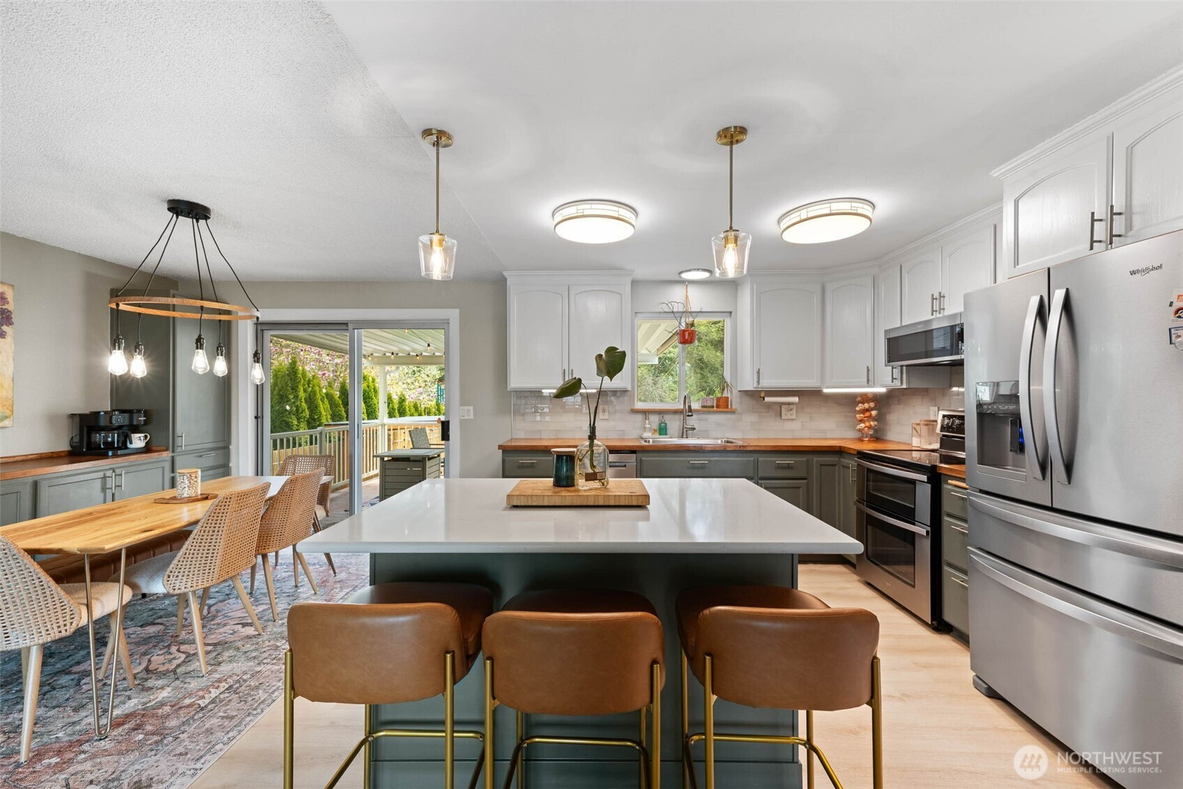 Rare find in charming Steilacoom! This beautifully updated 3BD/2.5BA backs to Farrell's Marsh — private, protected land where wildlife roams and the view stays forever green. Walk to historic downtown, waterfront dining, parks, and local shops in minutes. Upstairs, a bright and open living room flows into the remodeled kitchen and dining area, with new vinyl plank floors and updated bathrooms throughout. Downstairs offers a spacious rec room with closet, an additional bedroom, and a bathroom with utility room — perfect for guests or flexible living. The 2-car garage includes a private office or workshop space and a 50-amp EV outlet. Additional highlights: new electrical panel with whole-home surge protection, heat pump with central A/C, tankless water heater, energy-efficient windows, and fresh paint inside and out. Bonus RV parking with power hookup. Turnkey, tranquil, and perfectly located.