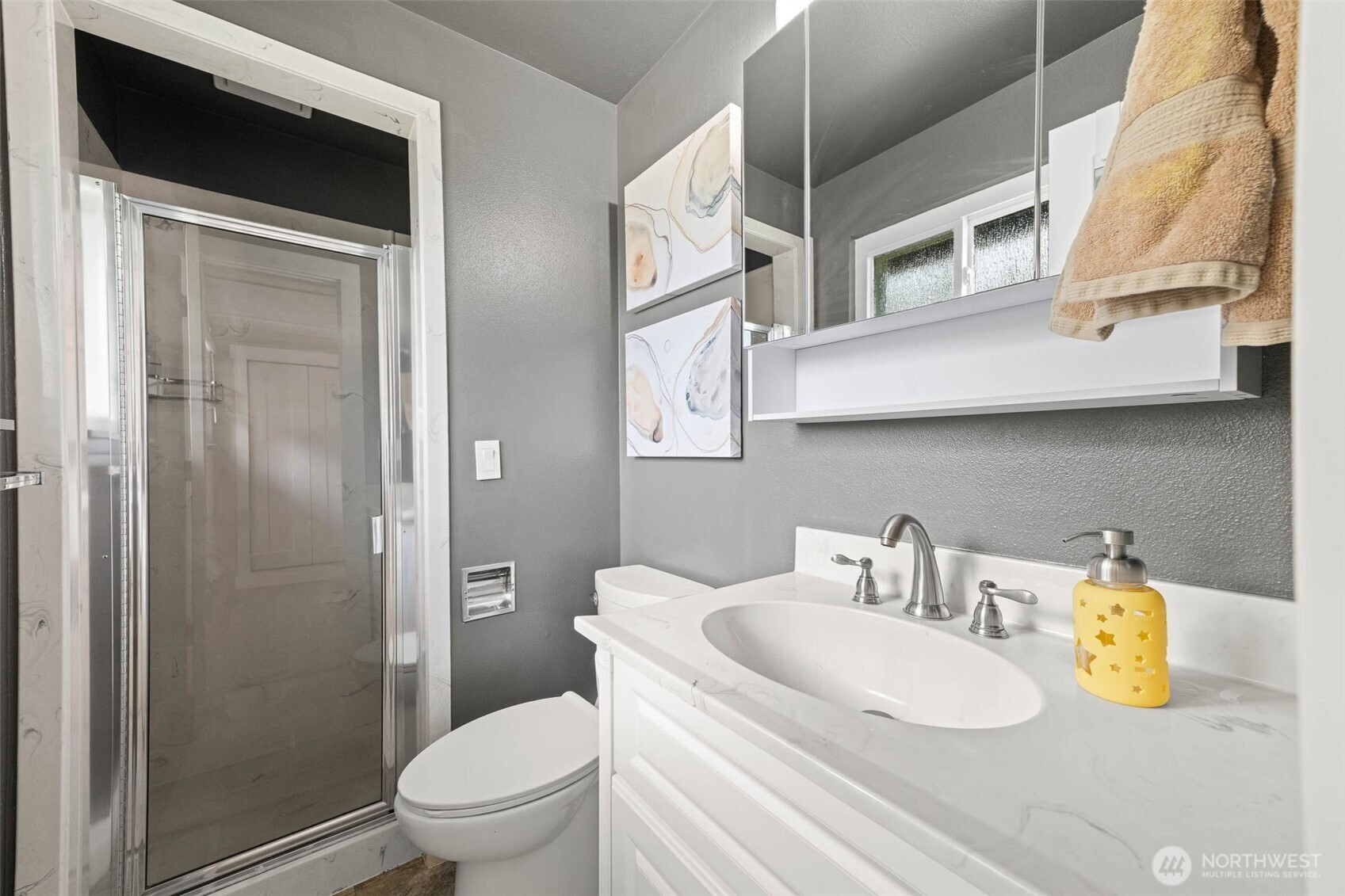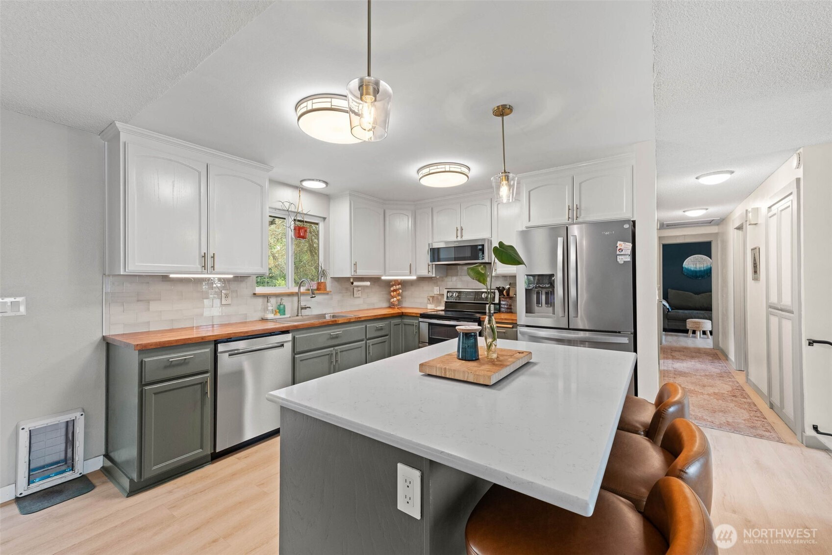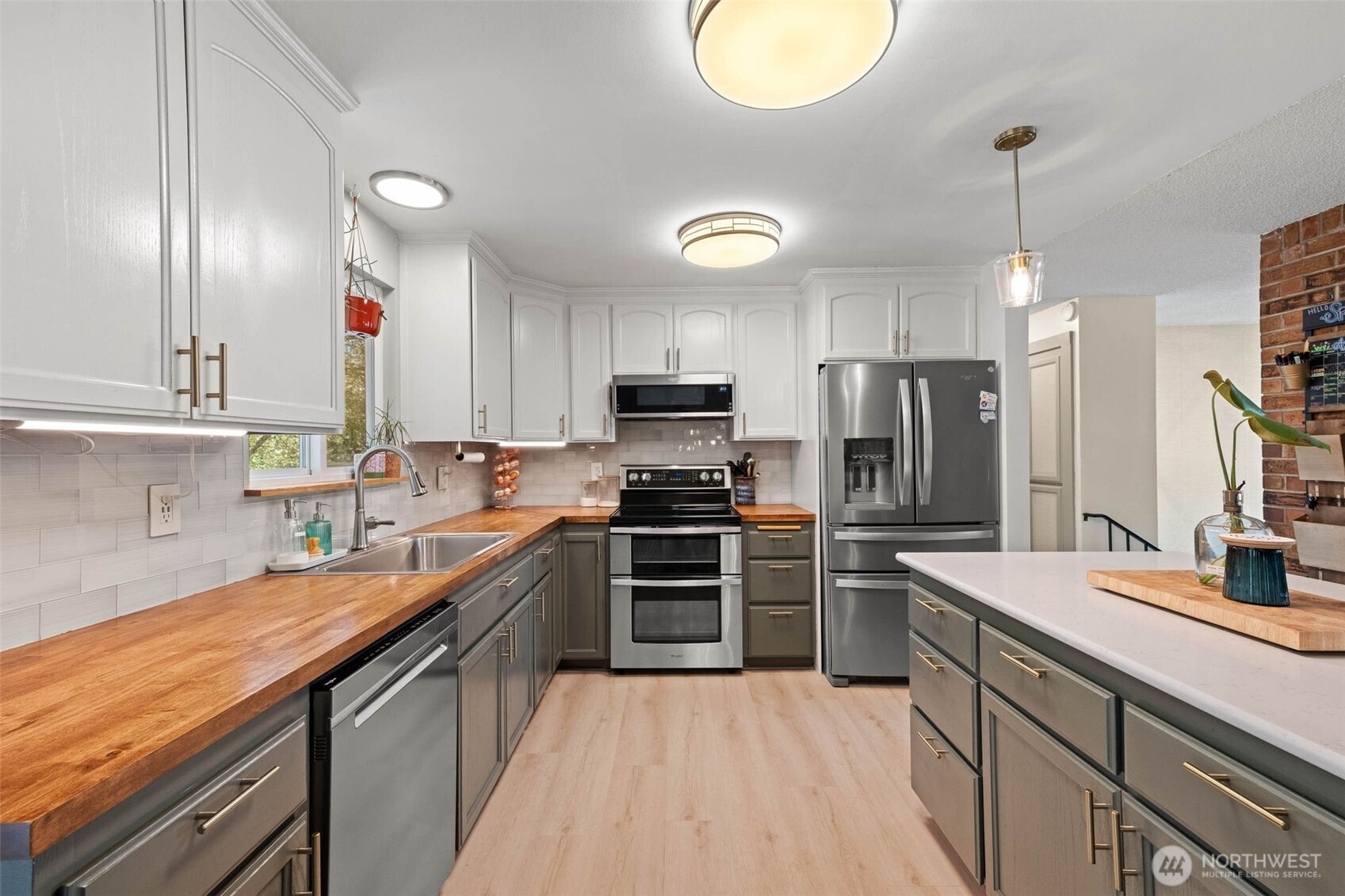 Rare find in charming Steilacoom! This beautifully updated 3BD/2.5BA backs to Farrell's Marsh — private, protected land where wildlife roams and the view stays forever green. Walk to historic downtown, waterfront dining, parks, and local shops in minutes. Upstairs, a bright and open living room flows into the remodeled kitchen and dining area, with new vinyl plank floors and updated bathrooms throughout. Downstairs offers a spacious rec room with closet, an additional bedroom, and a bathroom with utility room — perfect for guests or flexible living. The 2-car garage includes a private office or workshop space and a 50-amp EV outlet. Additional highlights: new electrical panel with whole-home surge protection, heat pump with central A/C, tankless water heater, energy-efficient windows, and fresh paint inside and out. Bonus RV parking with power hookup. Turnkey, tranquil, and perfectly located.