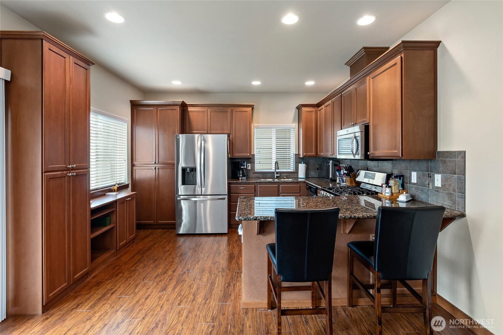 Welcome to this move-in ready 3-bedroom, 2.5-bath home offering 1,630 sq ft of comfortable and functional living in the heart of Frederickson. Backing to a private greenbelt, this home provides a peaceful setting with added privacy. The thoughtfully designed layout features stainless steel appliances, custom built-ins, and bright, open living spaces ideal for everyday living and entertaining. The spacious primary suite includes a luxurious five-piece en suite bath, creating a relaxing retreat at the end of the day. Enjoy the convenience of a low-maintenance yard, perfect for a busy lifestyle or easy outdoor enjoyment. Ideally located near shopping, dining, schools, and major commuting routes, this home offers comfort and convenience! A fantastic opportunity in a desirable Frederickson location.