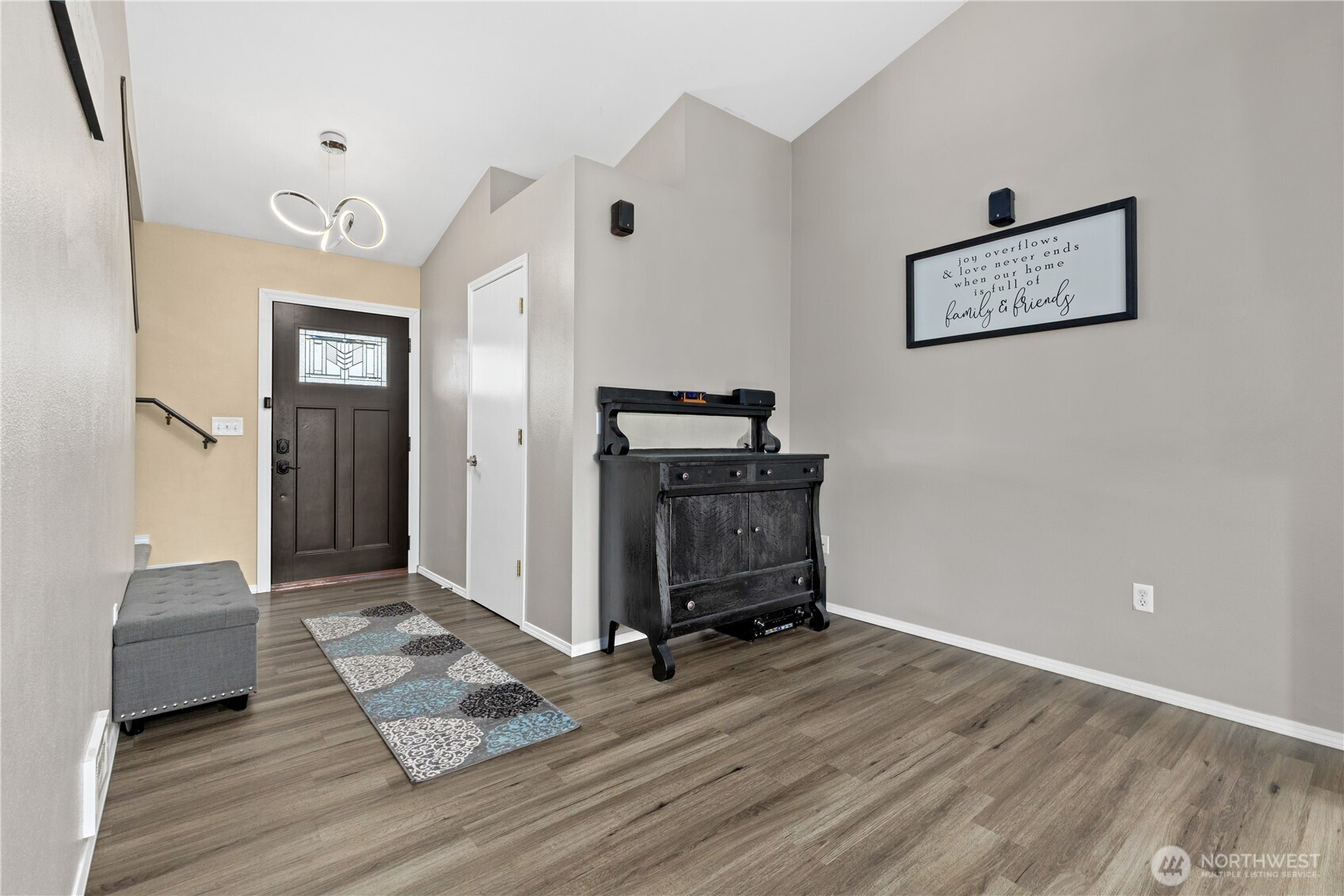 Welcome home to this beautifully updated property in a prime Sumner location! Featuring an open-concept layout with vaulted ceilings, this home offers seamless access to the entertainment deck and fully fenced, level backyard with fire pit—backing to open space and a walking trail to the river. Recent upgrades include LVP flooring throughout the main level, new carpet and pad upstairs, refreshed crawl space with new vapor barrier, updated fixtures, new front door, automatic garage door opener, and added ceiling fans. Kitchen boasts newer appliances, double oven, and ample pantry space. Enjoy a spacious primary suite, second-floor utility, and abundant storage. Located in the highly sought-after Sumner School District and just minutes to the Sounder train station. Move-in ready and packed with value!