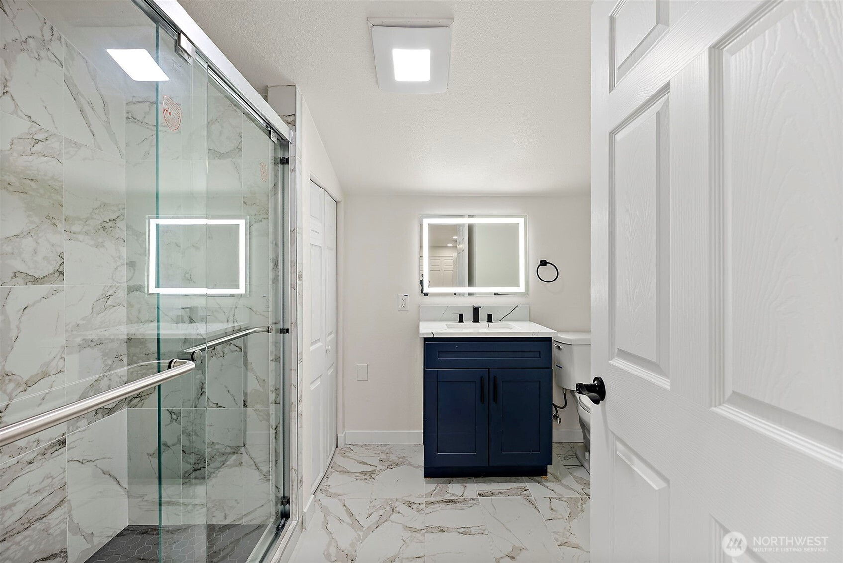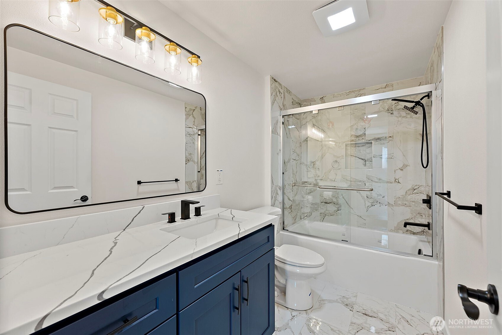 Welcome home to this beautifully and completely updated 4-bed, 2-bath gem! Step inside and fall in love with the stunning modern kitchen featuring quartz countertops, stainless steel appliances, and a stylish waterfall island that anchors the space perfectly. The spacious primary bedroom offers comfort and privacy with its own en-suite bath. Enjoy the durability and clean look of LVT flooring throughout, along with fresh interior and exterior paint that gives the home a crisp, move-in-ready feel. Outside, the large fully fenced (9000 sf) backyard provides room to relax, entertain, or play—plus a two-car covered garage with extra space for your toys or RV. This home has been thoughtfully renovated from top to bottom: new furnace, new roof, new electrical panel, new plumbing, new siding, new doors, and new double-pane storm windows. All work was completed with permits and inspections by the City of Tacoma, giving you peace of mind for years to come. Located just minutes from I-5, Tacoma Mall, restaurants, grocery stores, and everyday conveniences, this home offers both comfort and accessibility. Don’t miss the opportunity to own this beautifully updated property—your next chapter starts here.