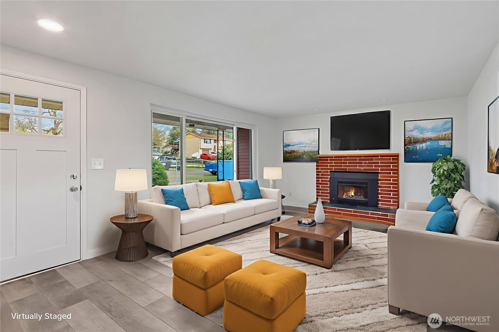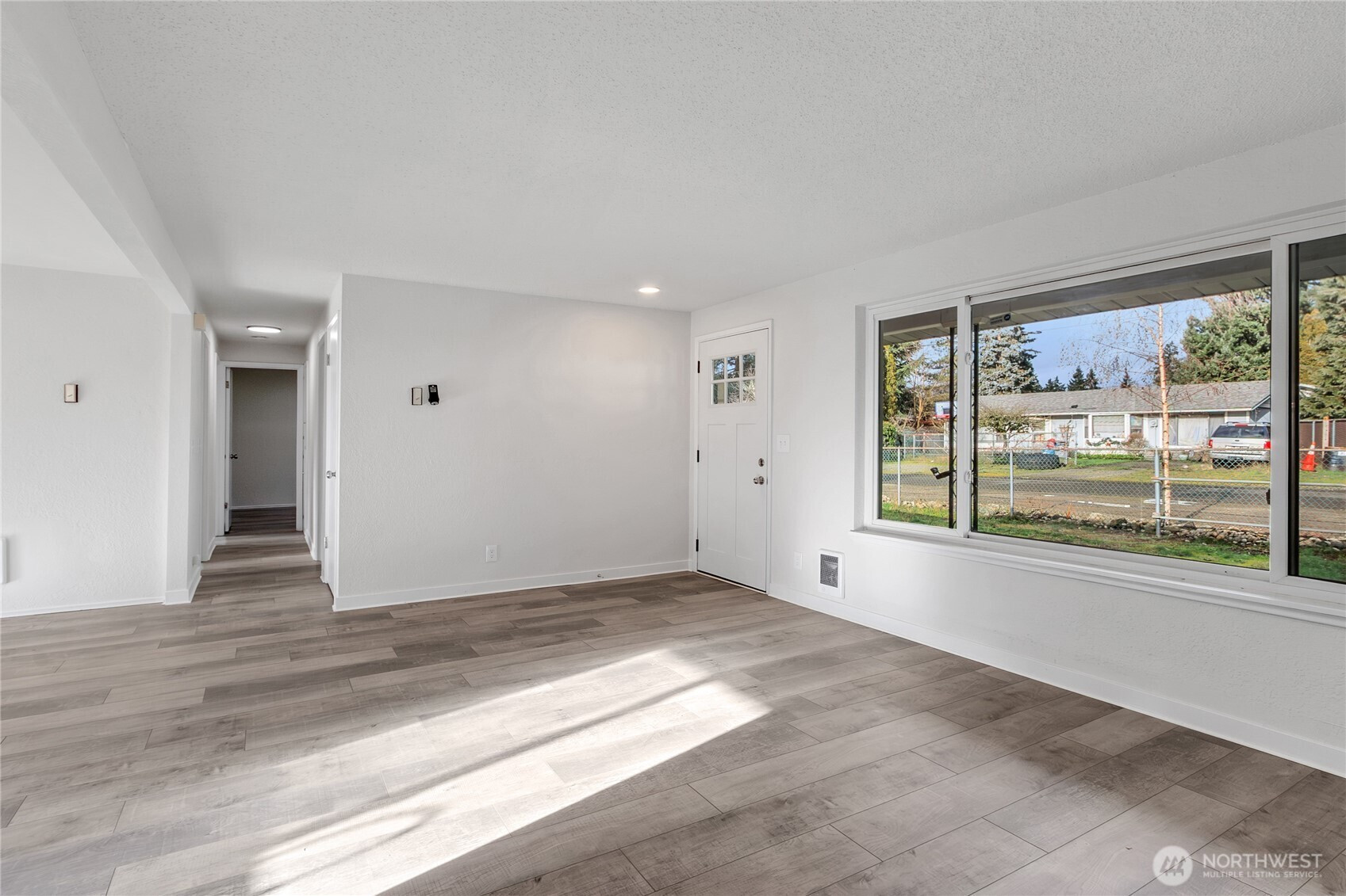 Charming and refreshed 3-bed, 1-bath Rambler on a dead-end street. Clean, move-in-ready interior features new paint, flooring, trim, and updated fixtures. Cozy propane fireplace and covered back patio provide comfortable living year-round. Large lot with fully fenced front and back yards, sliding driveway gate, and ample off-street parking. Roof replaced in 2021 and new electrical panel in 2015. Conveniently located near freeways, shopping, PLU & JBLM, offering both convenience and accessibility. Affordably priced and move-in ready!