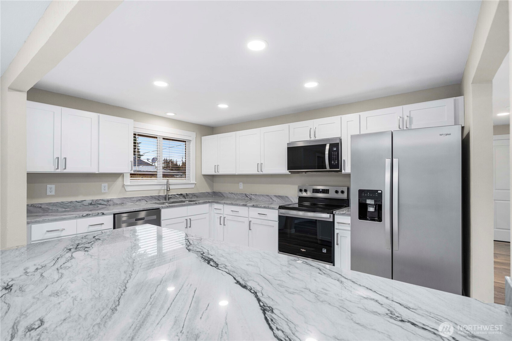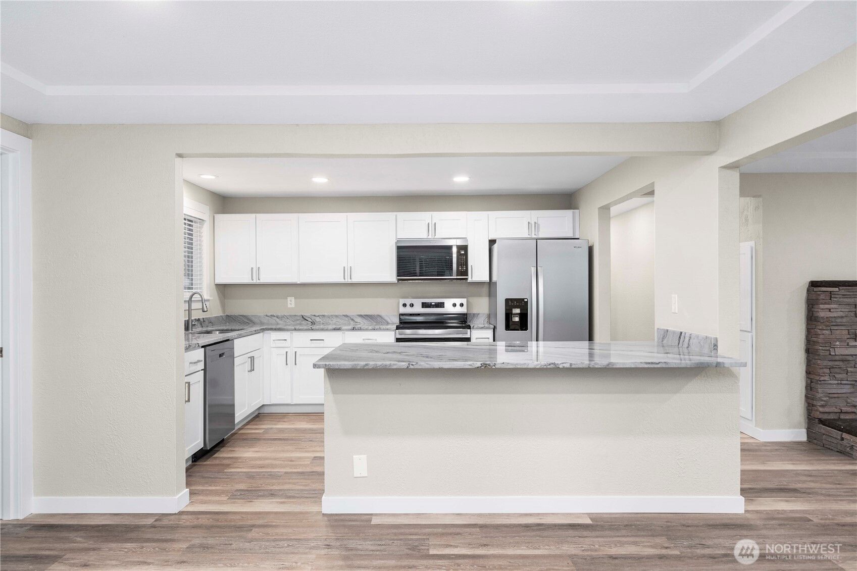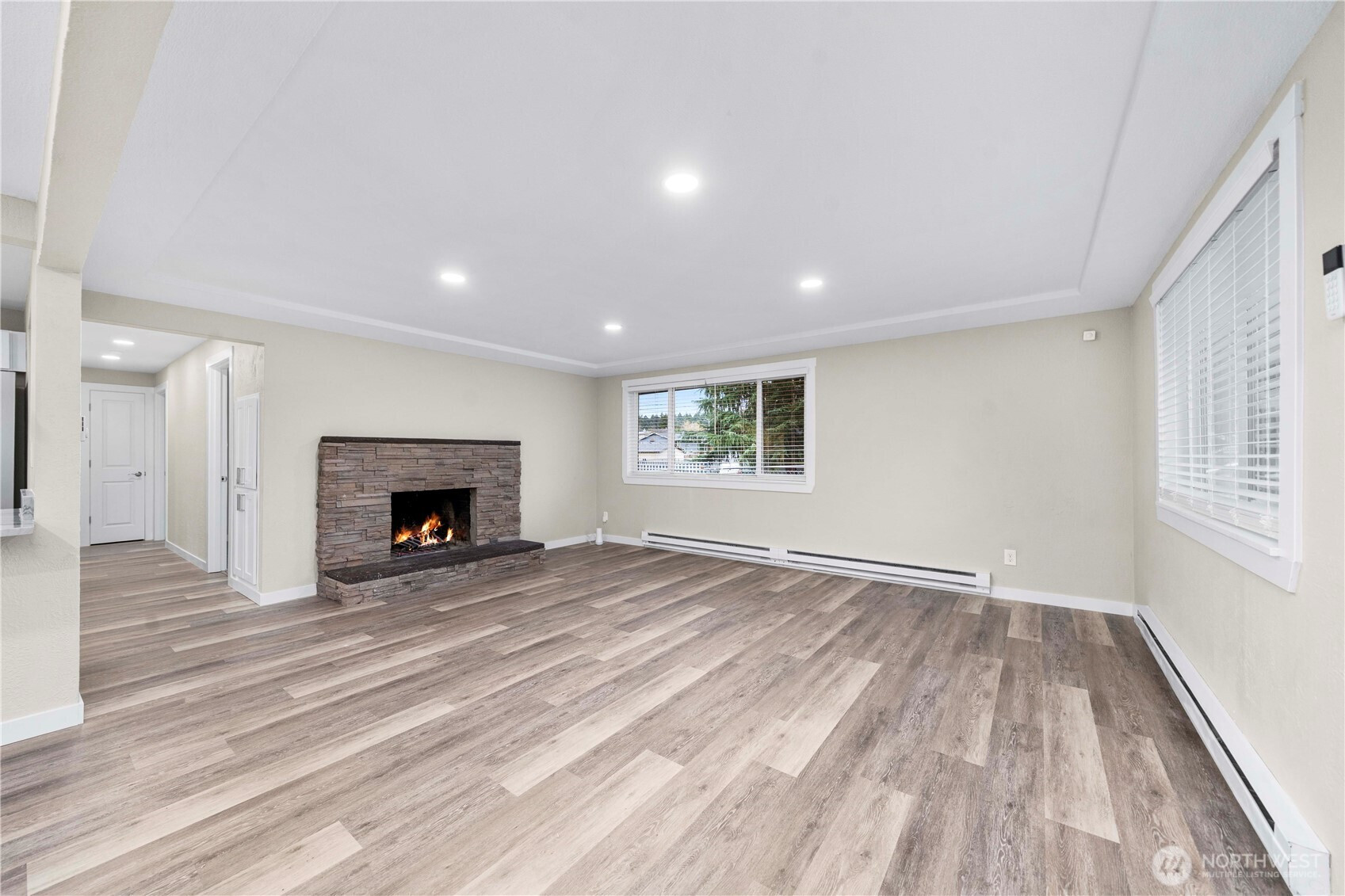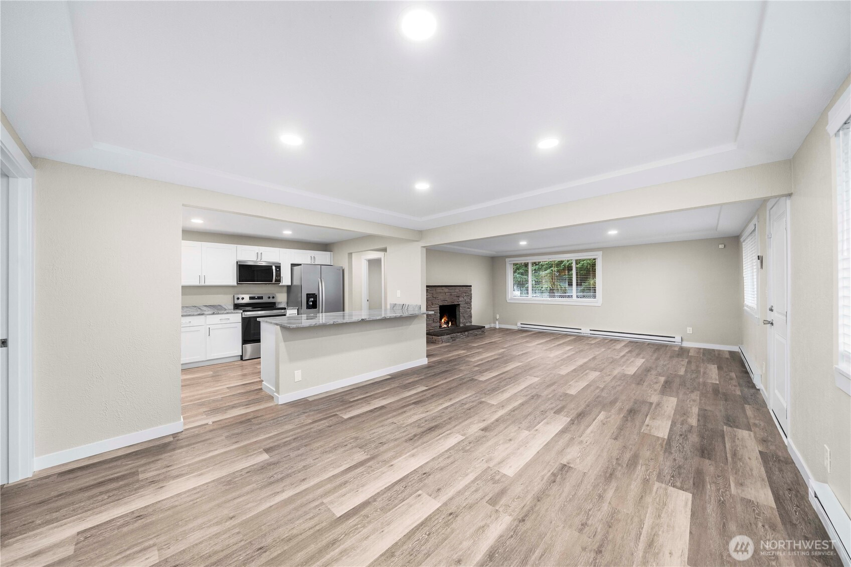 Completely renovated from top to bottom, this stunning home offers peace of mind and modern style throughout. Featuring a brand-new 30-year roof, new siding, luxury vinyl plank flooring, quartz countertops, new cabinetry & fully updated living, kitchen, bedroom, and bathroom spaces - every detail has been thoughtfully redone. The open-concept living areas are highlighted by a spacious quartz island w/seating for 4, ideal for everyday living & entertaining. The redesigned kitchen includes brand-new stainless steel appliances, while the bathrooms showcase fresh, contemporary finishes. The home offers 4 bedrooms, 1.75 bathrooms & a cozy wood-burning fireplace that adds warmth and character. With everything brand new, this move-in-ready property combines contemporary finishes w/functional design. AND it's close to I-5, 512, shopping, parks, trails & community center. With all the beautiful updates & prime location, you won't find anything better!