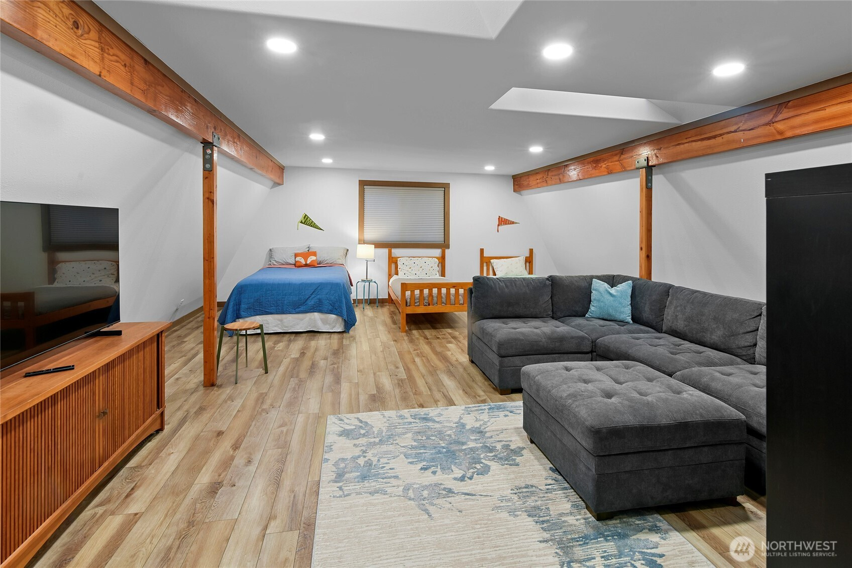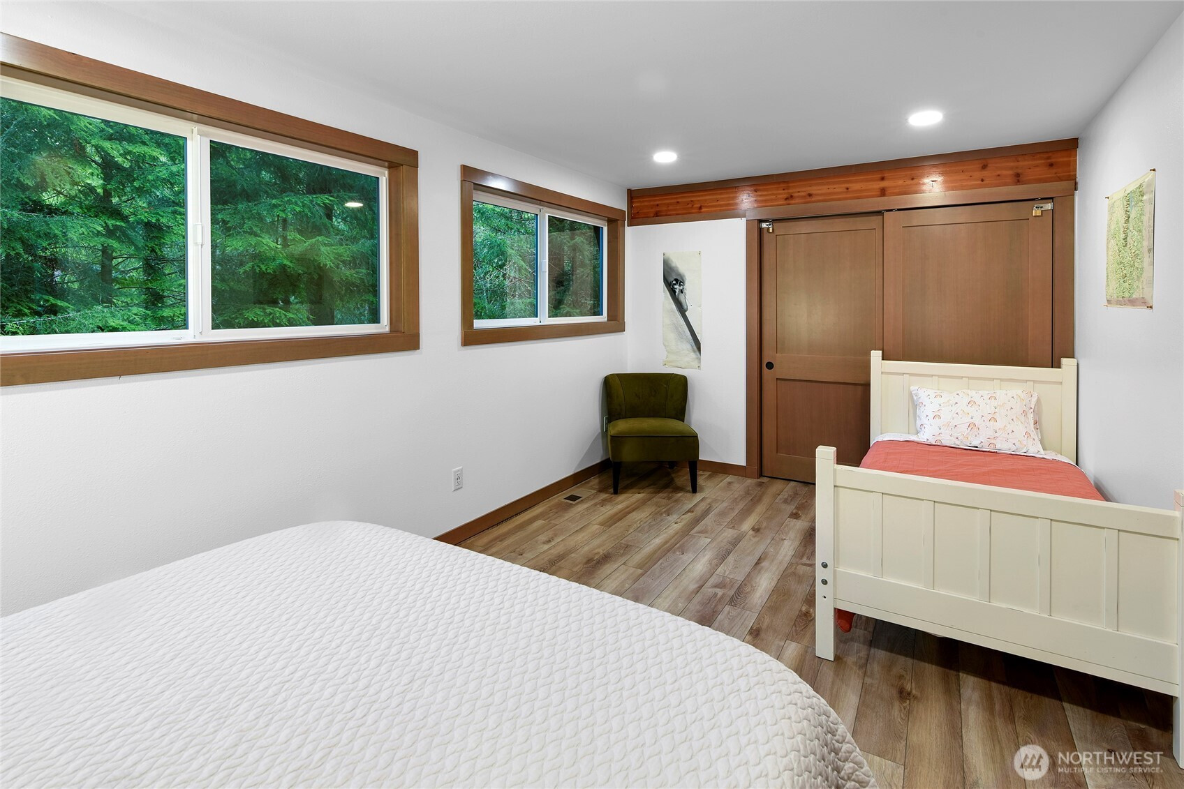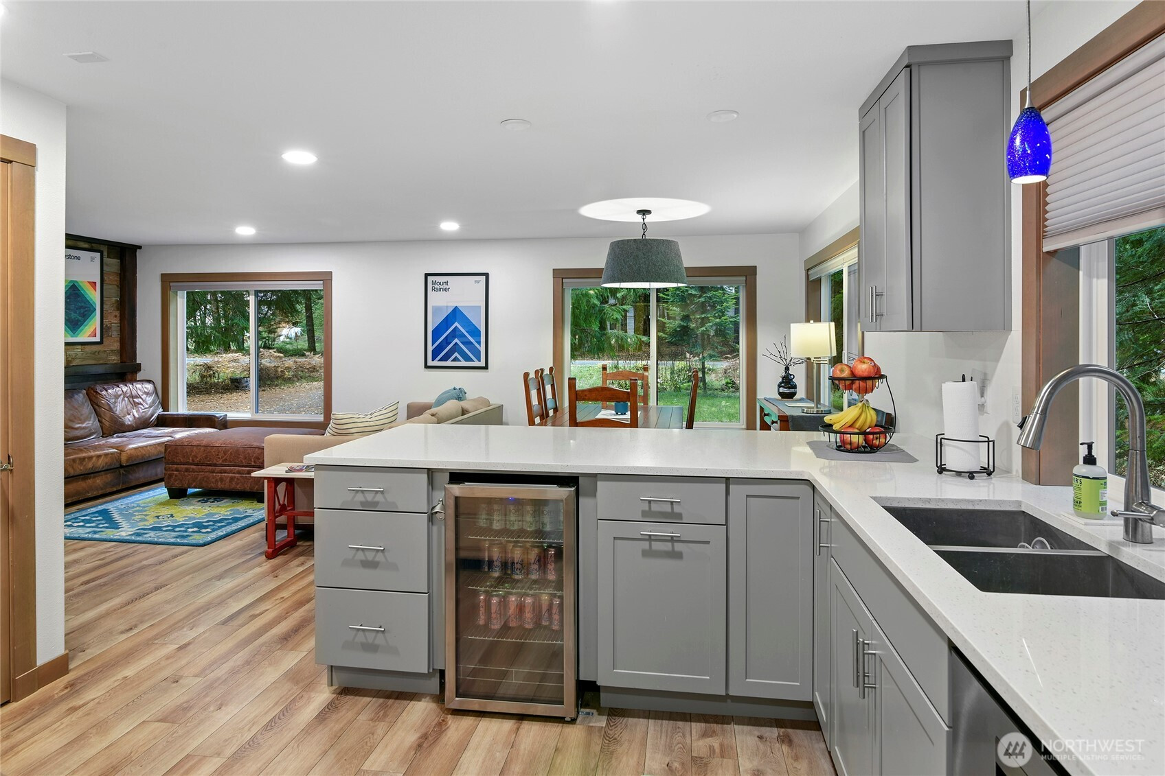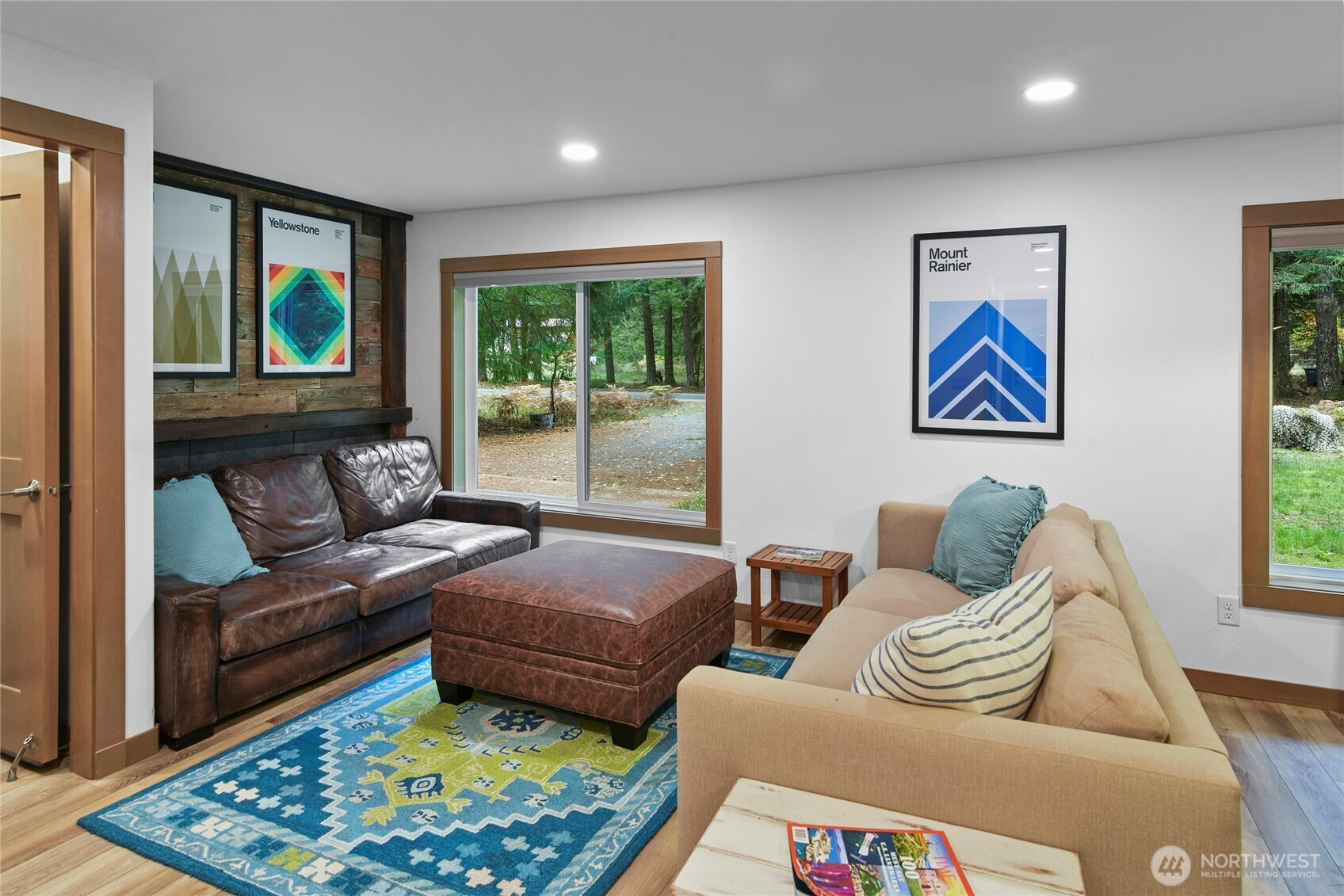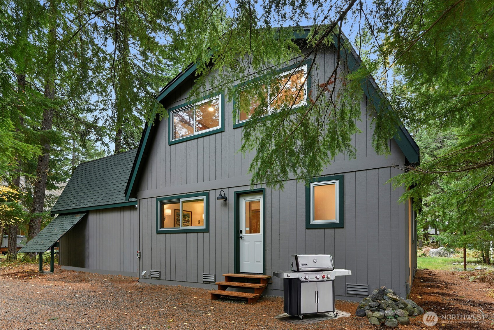Alpine Basecamp: a flawless mountain retreat designed for large groups, this thoughtfully renovated home offers the perfect blend of comfort, style, and serenity. Remodeled in 2022 to create intentional space for gathering and proving why it’s a turnkey STR with a solid 5-star rating, the light-filled kitchen was doubled in size and designed specifically for entertaining groups of 10. Structural improvements include new roof, windows, doors, trim, kitchen and bathroom cabinets & counters, appliances, flooring, paint inside/out, addition of a mudroom entry w/ heated floors, on demand hot water (you won’t run out), new energy efficient attic, wifi-thermostat, laundry hookups both upstairs/garage. Play in the sun in the front yard or soak in the tranquility of a backyard as private as a remote campsite (both yards are plumbed for propane BBQ & fire pits). An elevated south-facing deck with bi-fold glass door connects indoor-outdoor living in a treehouse-like atmosphere. Already wired for future generator & hot tub make future improvements easy. Located just a short drive from Crystal Mountain Resort and Mt. Rainier National Park, this property is an ideal basecamp for outdoor enthusiasts. Nestled in the highly sought-after Crystal River Ranch community, benefit from access to shared riverfront property, community room, picnic shelter, horse stable, clubhouse, playground, ball fields, trail system, and water service. No matter your needs, this mountain retreat checks every box.