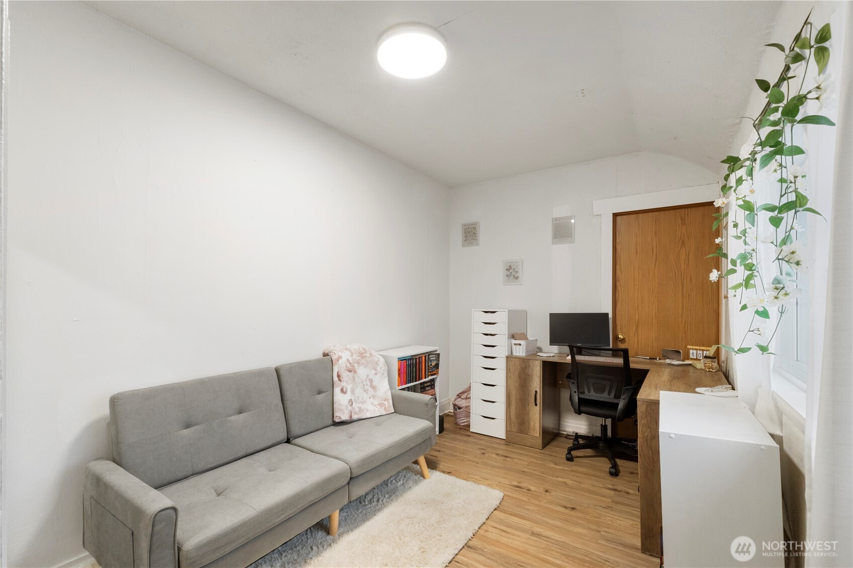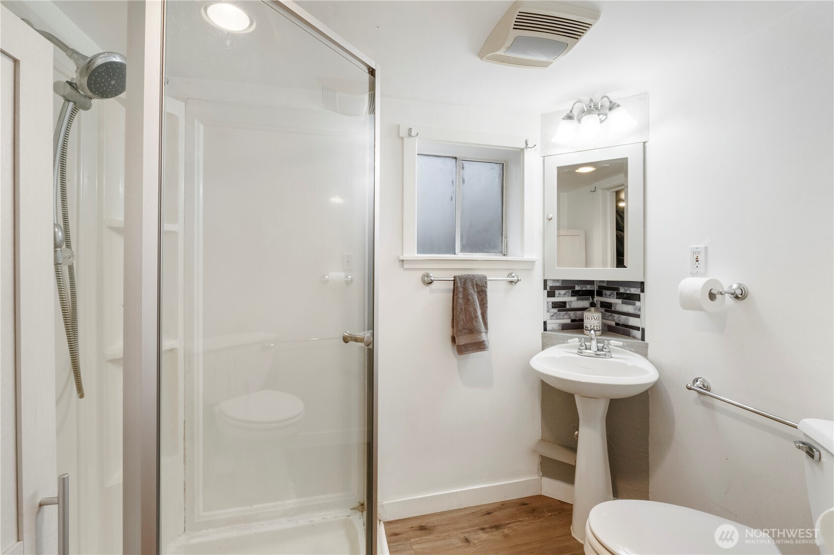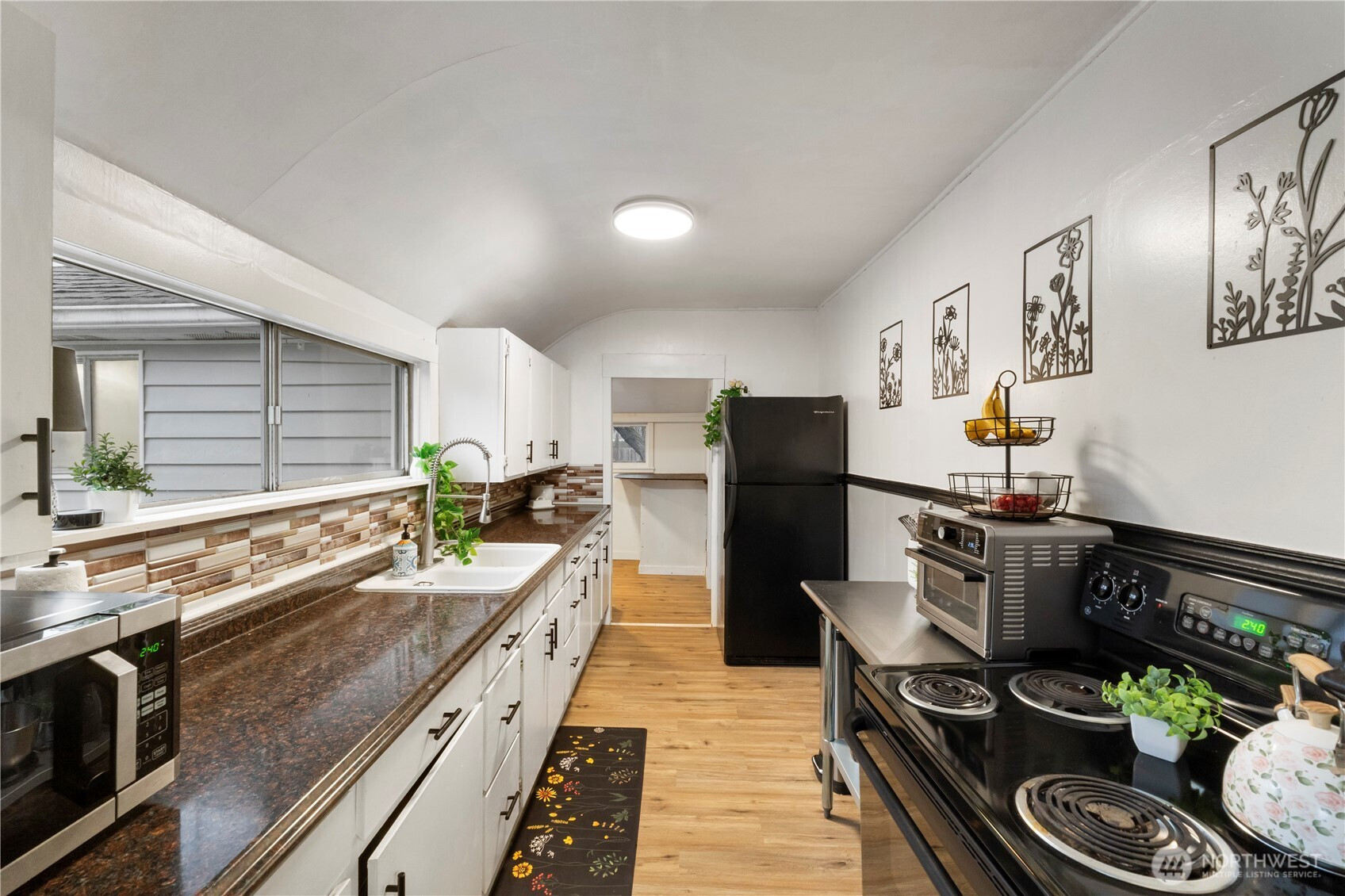 Tucked away on a private spacious lot, this charming Craftsman home with detached garage offers the perfect blend of space, seclusion, and convenience—just minutes from downtown Sumner shopping, dining, and amenities.Step through the foyer into a spacious open great room featuring arched ceilings, a cozy pellet stove, eye-catching brick accent wall, and beautiful light flooring. French doors open to the large back deck, creating an easy indoor-outdoor flow ideal for entertaining or relaxing in your own peaceful setting.The galley kitchen is designed for function and style with a farmhouse sink, generous prep space, and a window overlooking the expansive backyard. Full security system stays with the home!