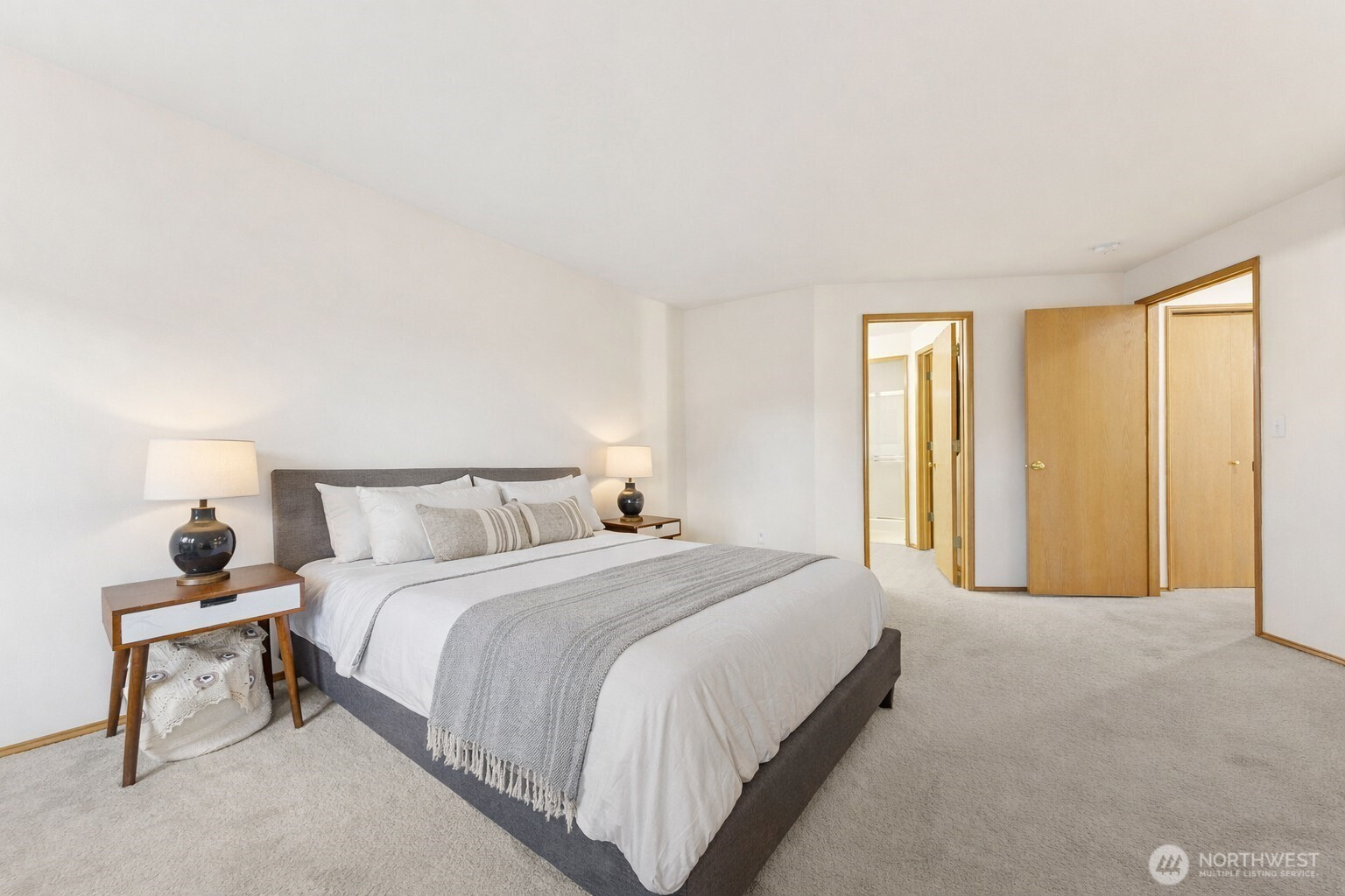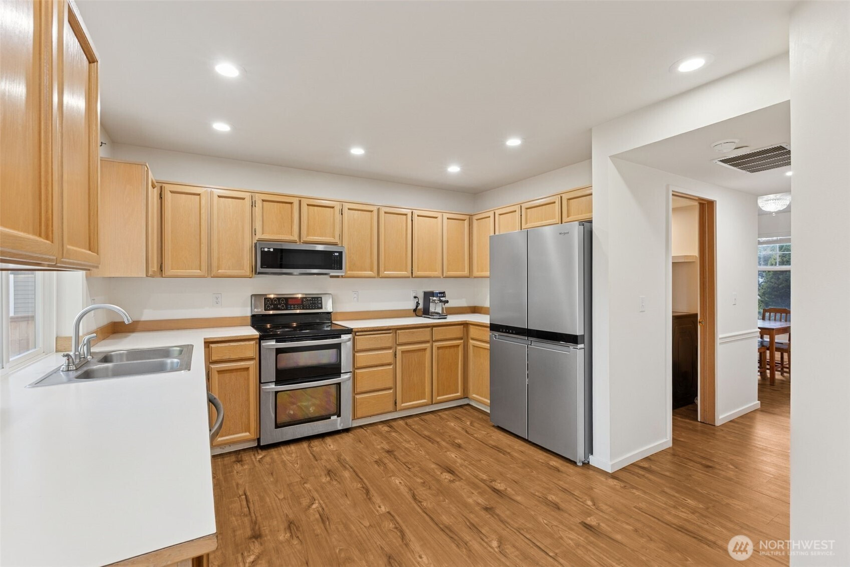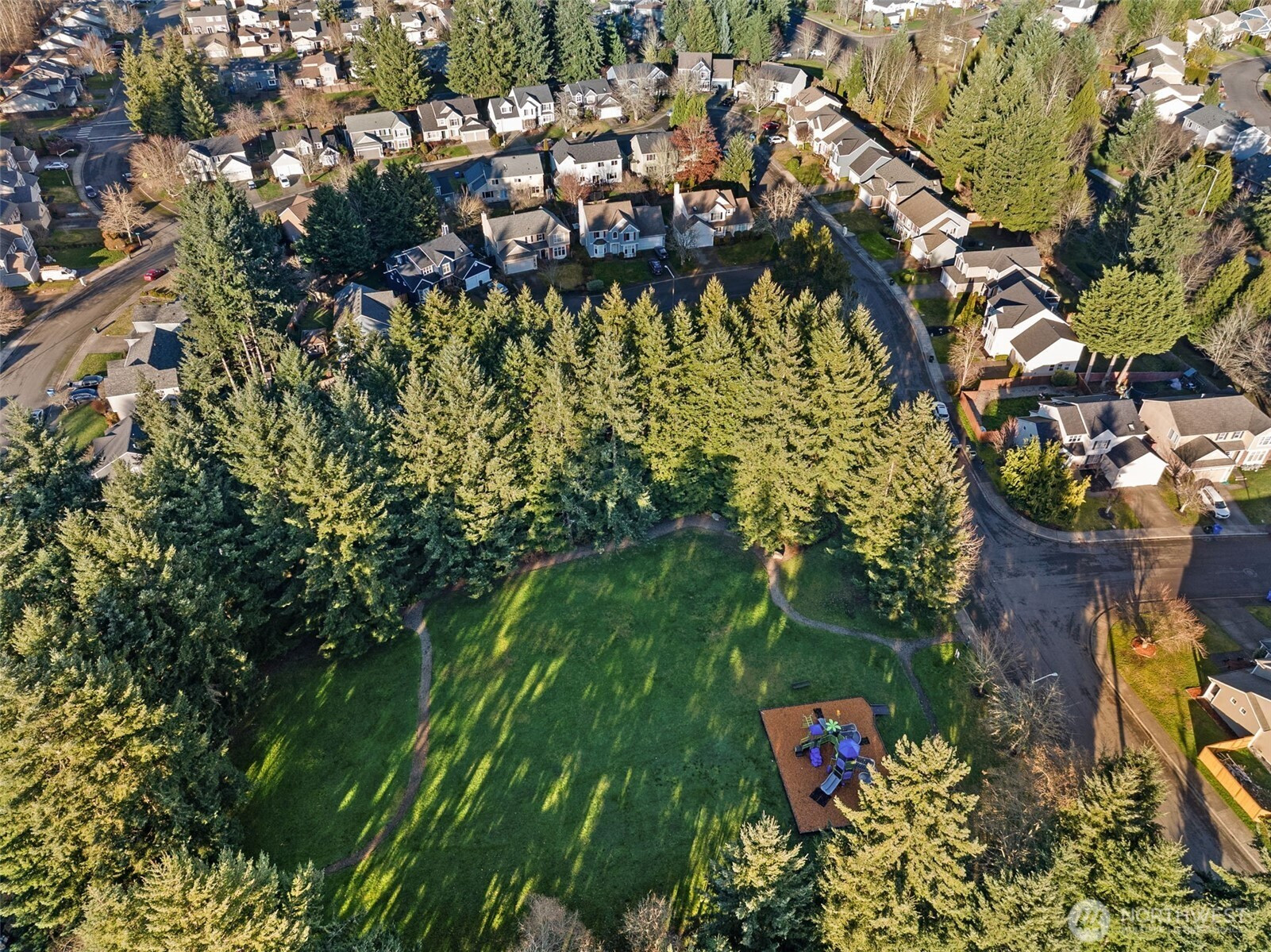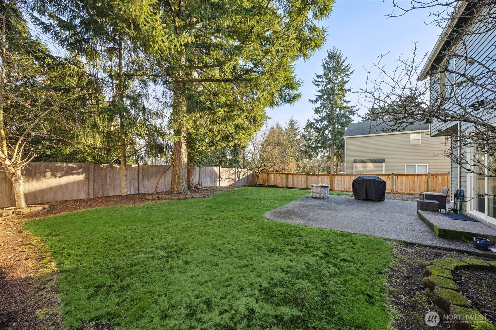Welcome home to this beautifully maintained home in the desirable Sunrise Community backing to greenbelt! Fresh interior paint enhances the bright, functional floor plan. The main level features a formal dining room with a new light fixture, a dedicated office with French doors, and a spacious living room with a cozy gas fireplace and built-in storage. The kitchen offers laminate countertops, pantry, new kitchen faucet, and all appliances convey—including a newer refrigerator (2023). Utility room with newer W/D (2023) that convey. The second floor boasts 3 guest rooms, a full guest bath and a primary suite that impresses with vaulted ceilings, a walk-in closet, 3/4 bathroom, skylights, and abundant natural light. Additional highlights include A/C & 2-car garage with new garage motor! Enjoy a private, fully fenced backyard complete with sprinkler system, mature cherry tree, and firepit -perfect for relaxing or entertaining. The back fence was replaced approximately 3 years ago, with the side fence updated just 1 year ago. Enjoy low maintenance living with a common area maintained by the HOA and a community park conveniently located right across the street. Puyallup School District!