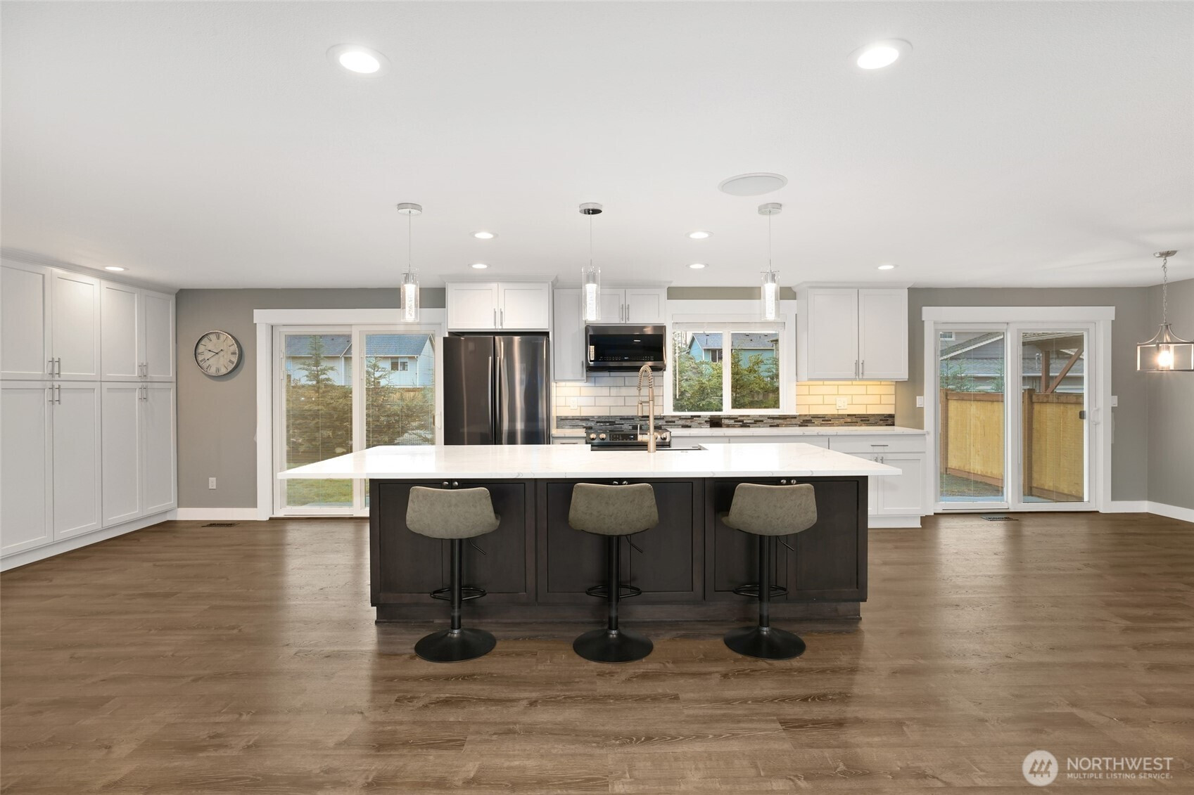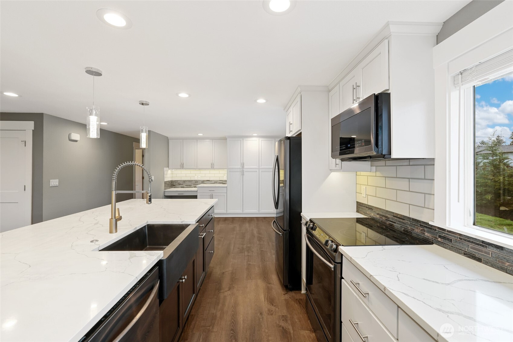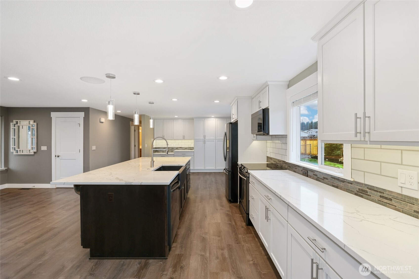 Welcome home to this beautifully renovated residence in Tacoma! Every detail has been thoughtfully updated from top to bottom, delivering a truly move-in ready experience. The stunning kitchen showcases brand new cabinetry, sleek countertops, modern fixtures, & all new stainless steel appliances—a chef's dream for cooking and entertaining. The bathrooms have been completely remodeled with new vanities, updated tile work, contemporary fixtures, and fresh finishes that bring a clean, modern feel throughout. New flooring, fresh interior paint, & updated lighting flow seamlessly from room to room, creating a bright and inviting atmosphere you'll love coming home to. Step outside to discover your own private retreat—a generous fully fenced backyard that offers endless possibilities for entertaining, summer barbecues, gardening, or creating the outdoor oasis you've always dreamed of. The oversized lot is a true standout, providing ample room for RV, boat, or trailer parking right on your own property—a rare find that outdoor enthusiasts & hobbyists will absolutely love. No more paying for off-site storage or searching for a place to park your toys. Situated in a convenient Tacoma location with easy access to Joint Base Lewis-McChord, parks, shopping, dining, & major commuter routes including SR-512 and I-5. Don't miss your chance to own a completely remodeled home with the rare combination of modern updates & the outdoor space and flexibility that today's buyers are searching for!