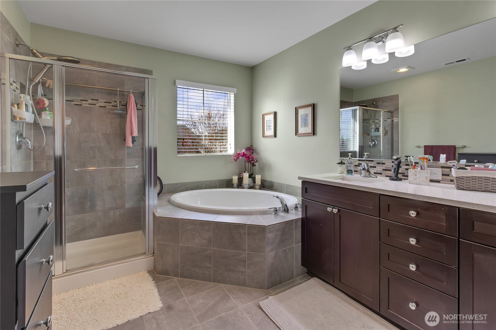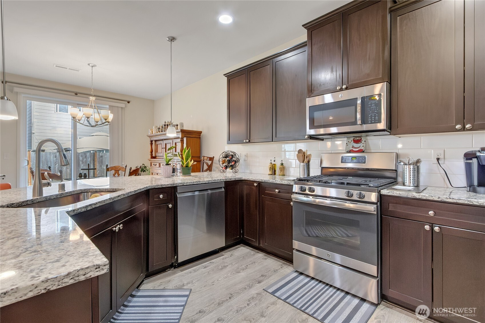 Beautiful and well maintained home in the desired Red Hawk 1V community. This home features many upgrades, which includes a spacious kitchen with granite countertops, cherry cabinets and stainless steel appliances. Kitchen has an open concept to living room and dining room. Beautiful custom staircase which leads to the 2nd floor. Sought after bedroom on main floor. Second floor you have three more bedrooms plus the master bedroom with a 5 piece master bath. High-end laminate flooring throughout the main floor. A/C to keep you cool during those hot days. Lots of overhead storage in the huge 3 car garage. Enjoy the privacy the outdoor lighted gazebo brings. Backyard and side yards also include an outdoor gas valve for the BBQ, decorative pavers, sprinkler system and a storage shed. Close to shopping, community parks, and much more. This home is a must see!
