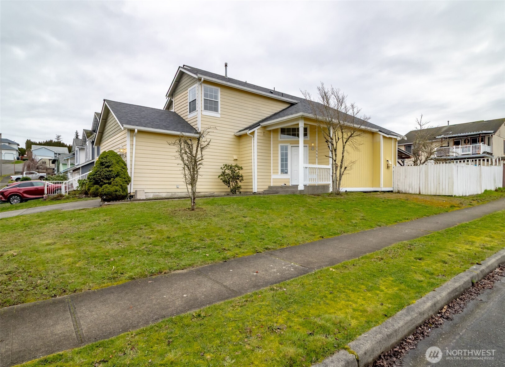 Stunning remodeled home in Tacoma. This home features 3 bedrooms, 2.5 bathrooms, with vaulted ceilings. Gleaming new wood laminate flooring, new white trims, and new paint cabinets throughout. Open and bright floor plan with lots of natural light, new laminated countertops in the kitchen and bathrooms. New interior paint, new toilets, new kitchen sink and bathroom sinks, and new vanity in the bathroom. A beautiful gas fireplace in the living room. Spacious primary room with double sink vanity and walking closet. Roof replaced in 2022 and furnace replaced in 2023. Backyard with new patio cover, built in fish pond, garden/flower area, and a nice patio for BBQ and entertaining. Conveniently located near freeways, parks, schools, and shopping plaza.
