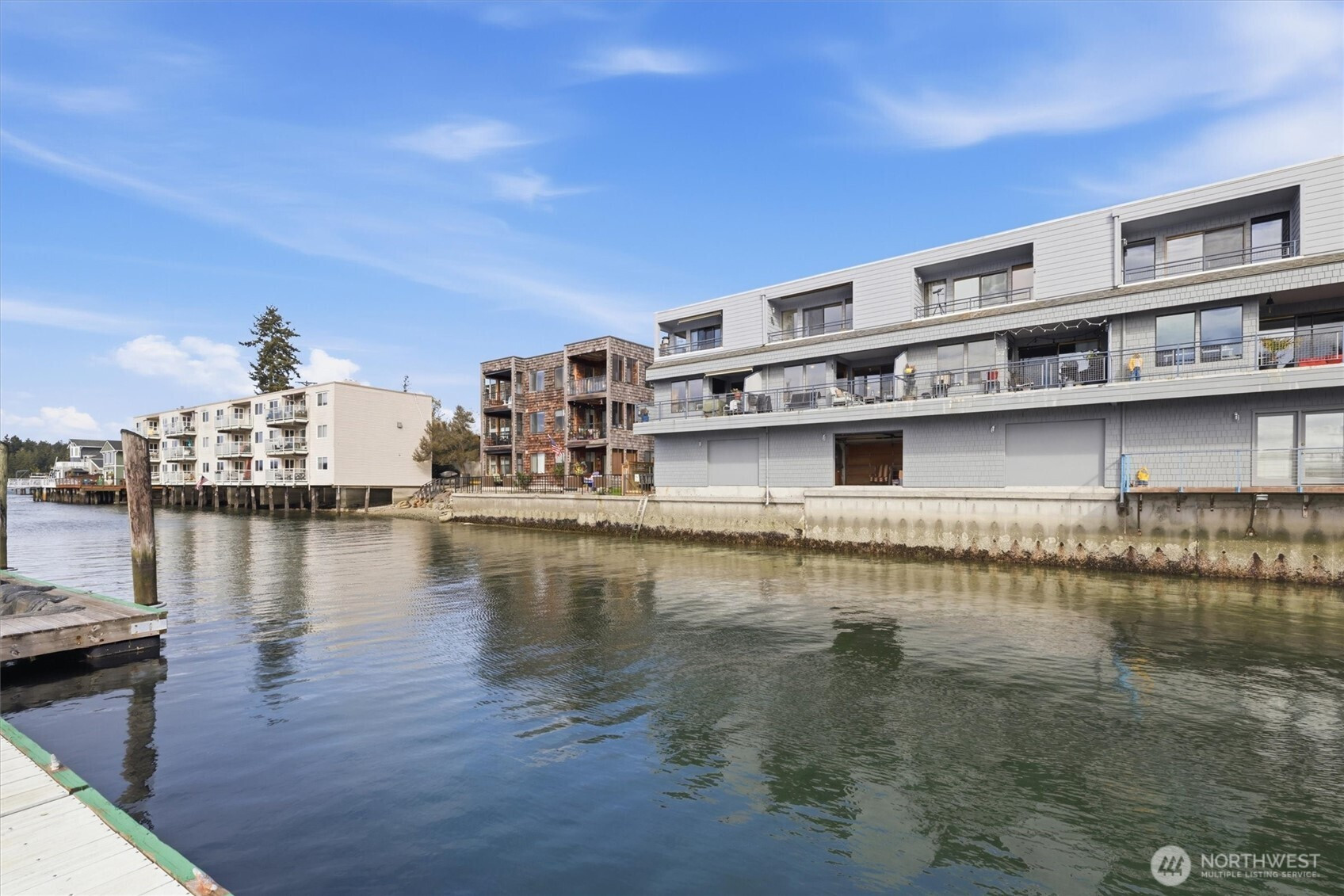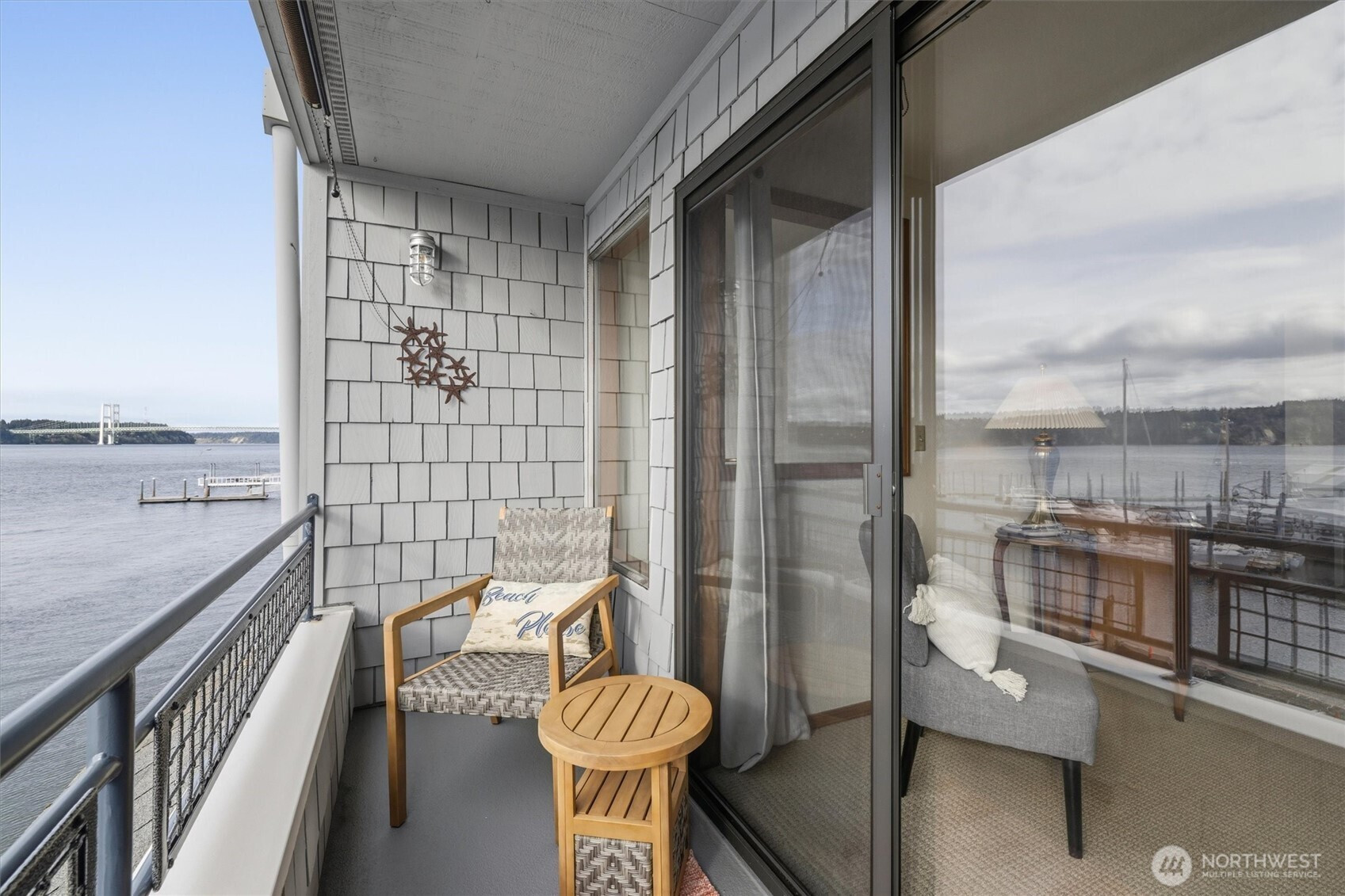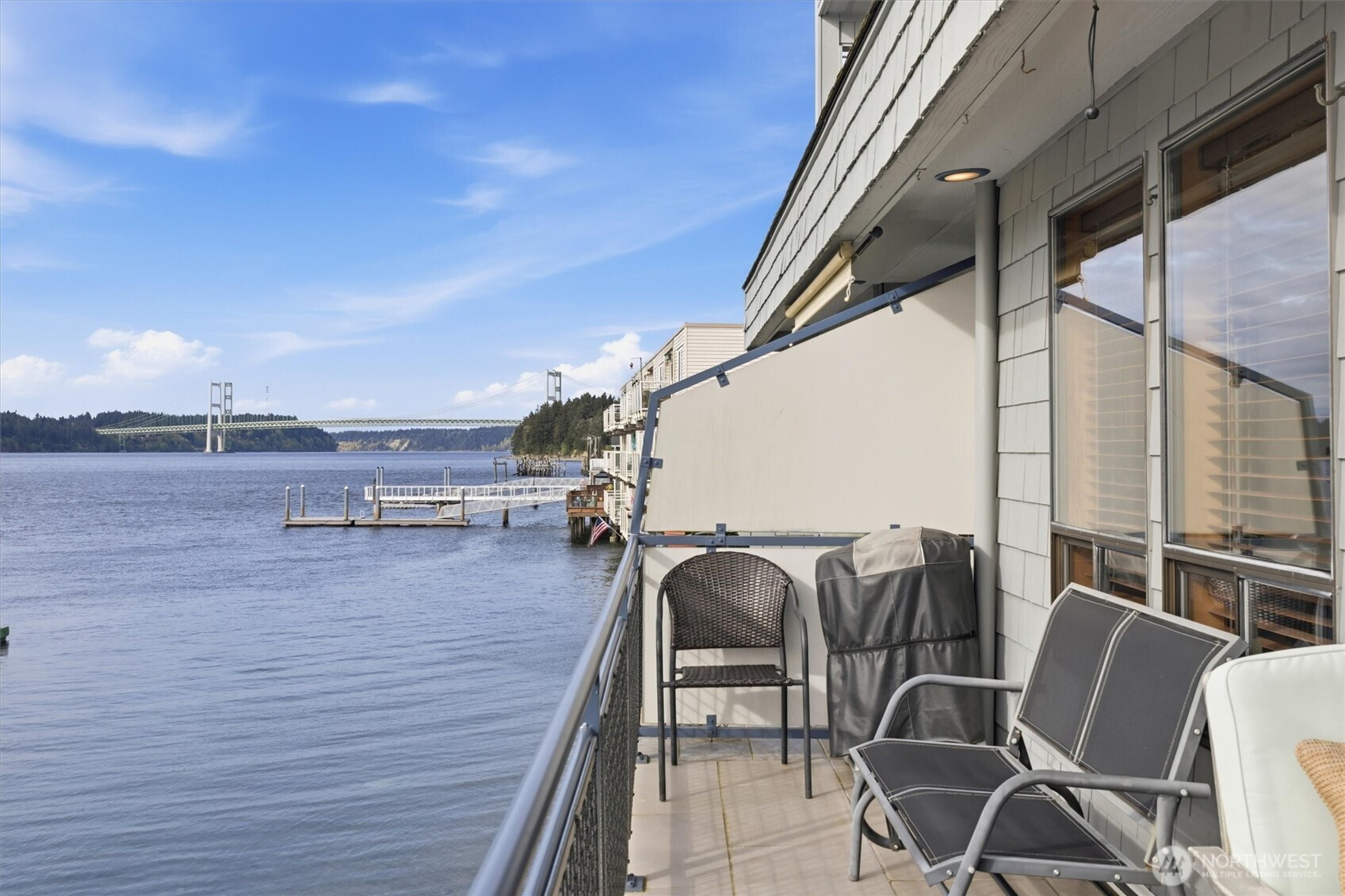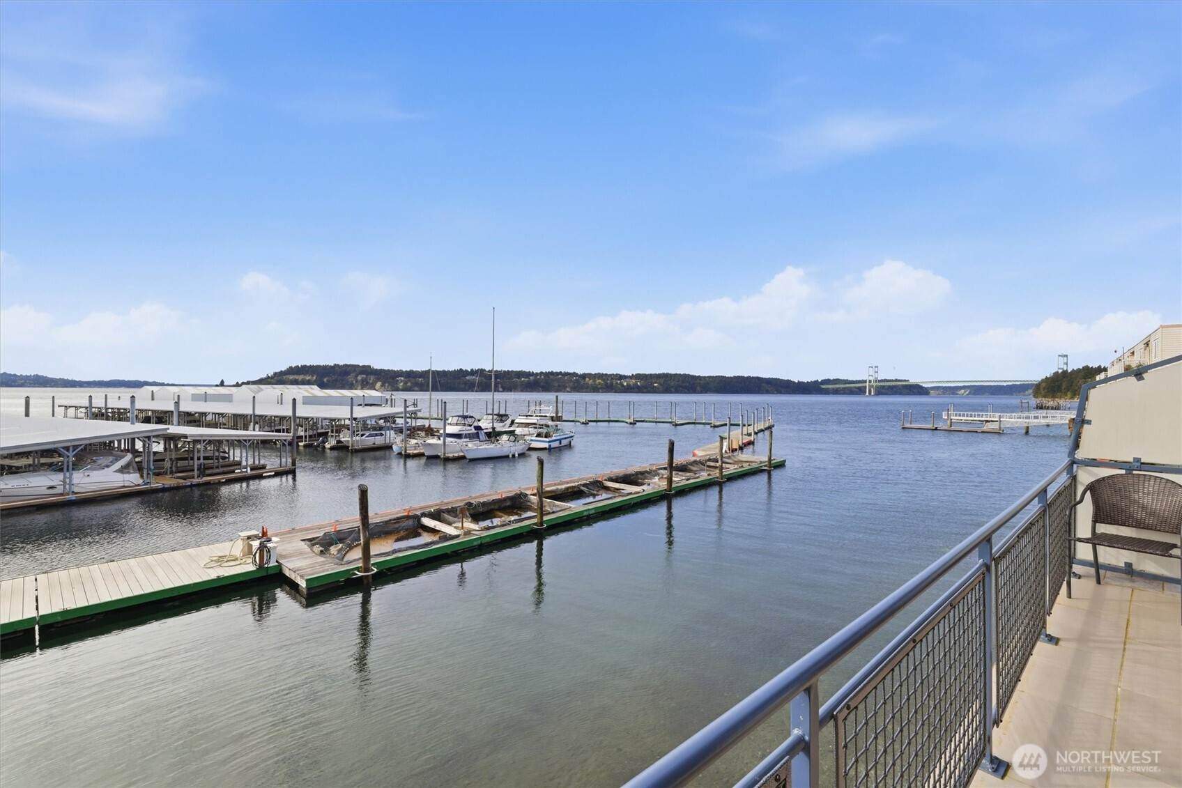 Waterfront living, elevated. This immaculately maintained townhome is set on a private road; part of an iconic and exclusive boutique community of just four residences. Designed with both comfort and sophistication in mind, the home offers panoramic water views from every level, with expansive decks that capture sweeping vistas of the Narrows, Olympic Mountains, and South Sound. A chef-inspired kitchen anchors the main level, seamlessly connecting to open living and dining spaces with sweeping, unobstructed water views. On the upper level, both bedrooms feature their own en-suite baths, creating a private retreat with walls of windows and natural light. An attached garage and remarkably low HOA dues add to the ease of ownership. Ideally located just steps from Boathouse 19, a local brewery, and the Days Island Yacht Club, this is a rare opportunity to own a million-dollar view for a fraction of the cost. A rare opportunity to secure an exceptional waterfront lifestyle. Pre-inspected and move-in ready. Truly noteworthy.