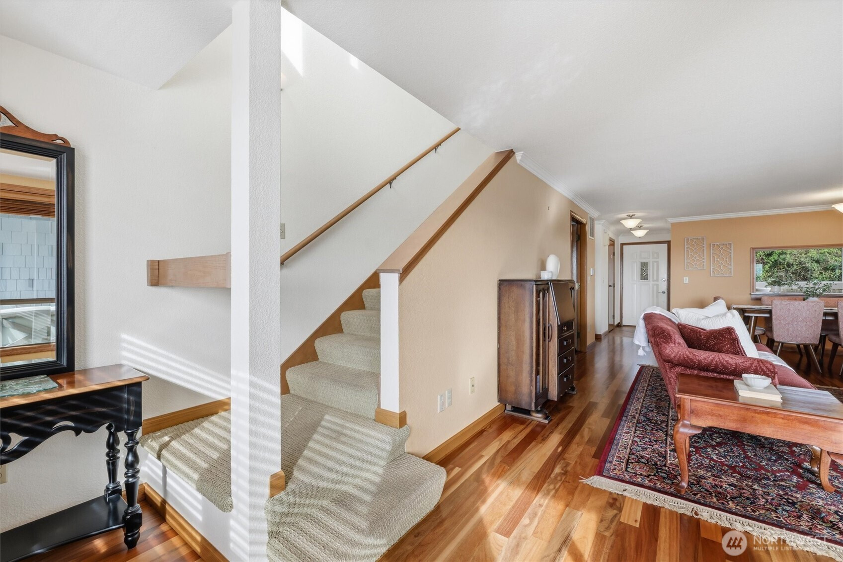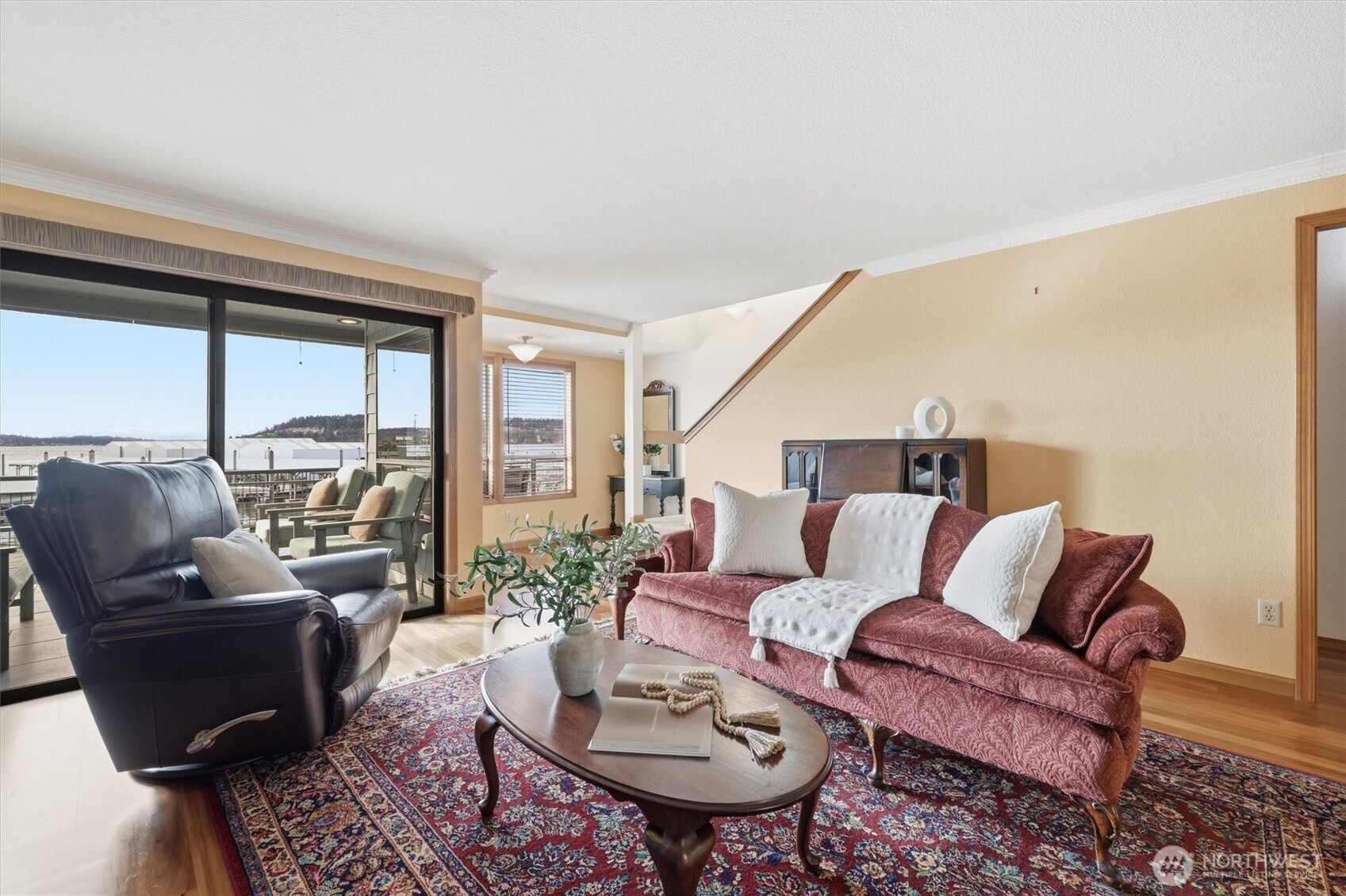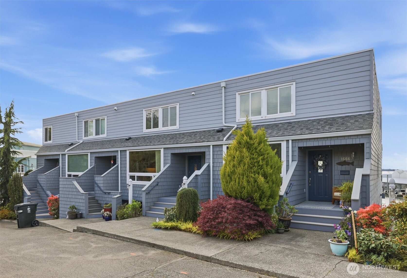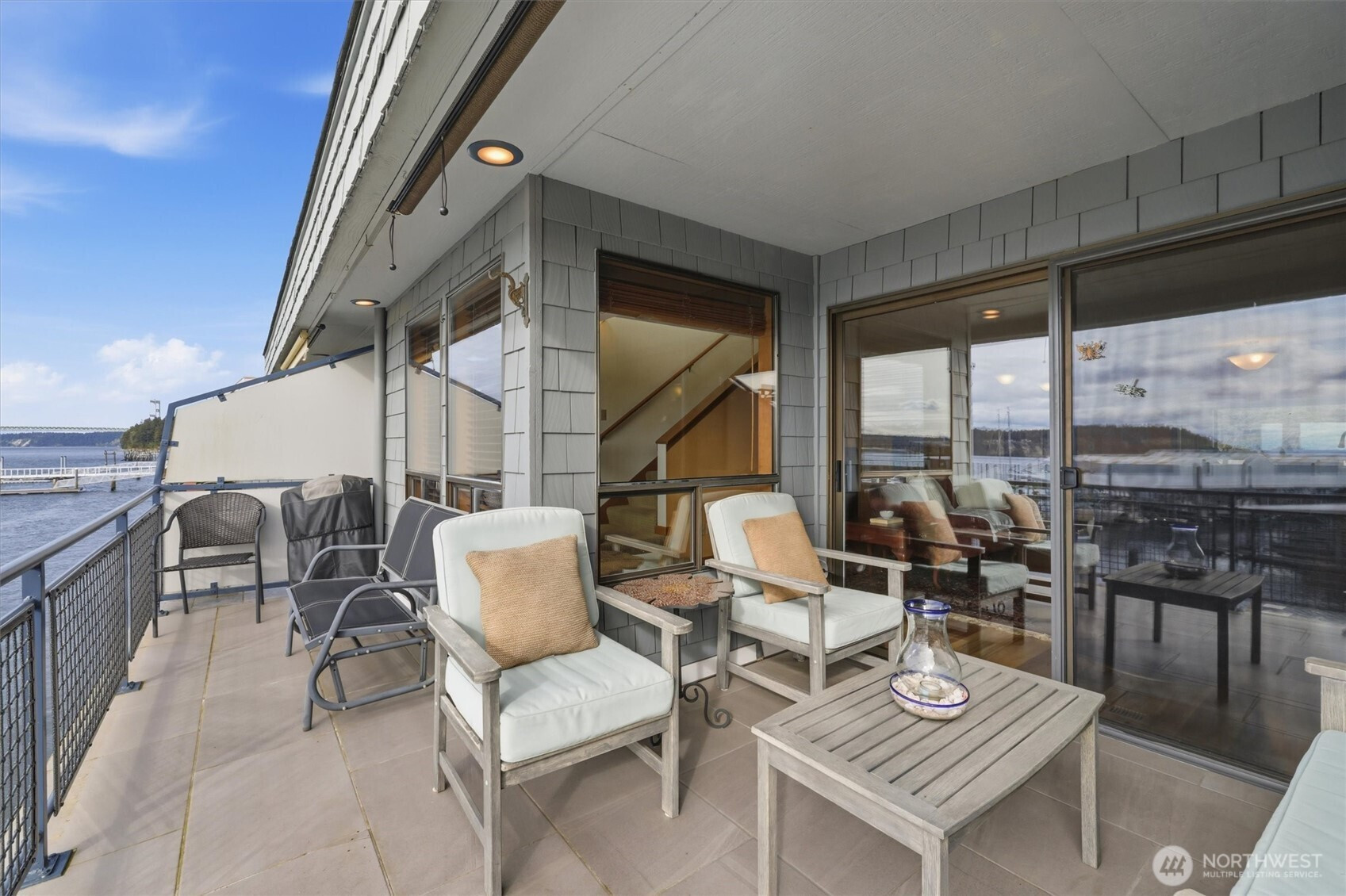 Waterfront living, elevated. This immaculately maintained townhome is set on a private road; part of an iconic and exclusive boutique community of just four residences. Designed with both comfort and sophistication in mind, the home offers panoramic water views from every level, with expansive decks that capture sweeping vistas of the Narrows, Olympic Mountains, and South Sound. A chef-inspired kitchen anchors the main level, seamlessly connecting to open living and dining spaces with sweeping, unobstructed water views. On the upper level, both bedrooms feature their own en-suite baths, creating a private retreat with walls of windows and natural light. An attached garage and remarkably low HOA dues add to the ease of ownership. Ideally located just steps from Boathouse 19, a local brewery, and the Days Island Yacht Club, this is a rare opportunity to own a million-dollar view for a fraction of the cost. A rare opportunity to secure an exceptional waterfront lifestyle. Pre-inspected and move-in ready. Truly noteworthy.