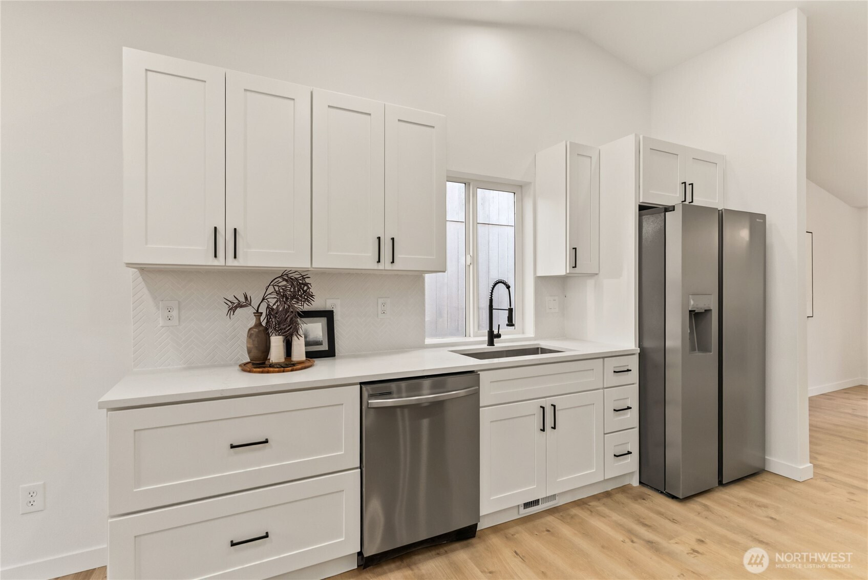 Stunning fully remodeled 5-bedroom, 3-bath home that’s an absolute must-see! This beautifully updated residence features an open concept main level with vaulted ceilings, a bright living room with gas fireplace, and a brand-new kitchen showcasing quartz countertops, full tile backsplash, and stainless steel appliances. The main floor includes two bedrooms and a spacious primary suite with a luxurious 5-piece ensuite. The lower level offers a large family room, full bath, and two additional bedrooms—perfect for guests or home office space. Enjoy the low-maintenance backyard, new roof, and modern finishes throughout. Conveniently located near schools, parks, and freeway access—this one truly has it all! Don't miss out.Wont last long.