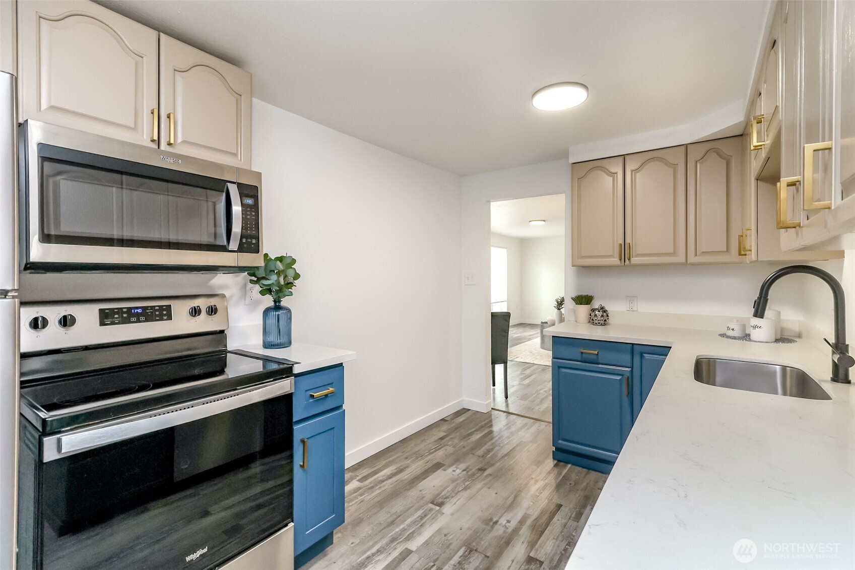 Step into this beautifully updated Spanaway home offering modern finishes & exceptional outdoor space. Located minutes from Spanaway Lake, Sprinkler Rec Center, JBLM, and local amenities, this home features 2 spacious bedrooms plus a den, new roof, new windows in whole system, luxury vinyl plank flooring, mini-split AC, and a refreshed bathroom with a walk-in tile shower. The remodeled kitchen includes quartz countertops and stainless steel appliances. Sitting on a corner lot, the fully fenced yard offers garden beds, a firepit, and plenty of room to relax or entertain. Generous off-street parking with dual driveway access provides space for RVs, boats, and more. A rare blend of modern updates and functional space. Don't miss out on this Spanaway gem that offers great use of space, comfort & convenience.