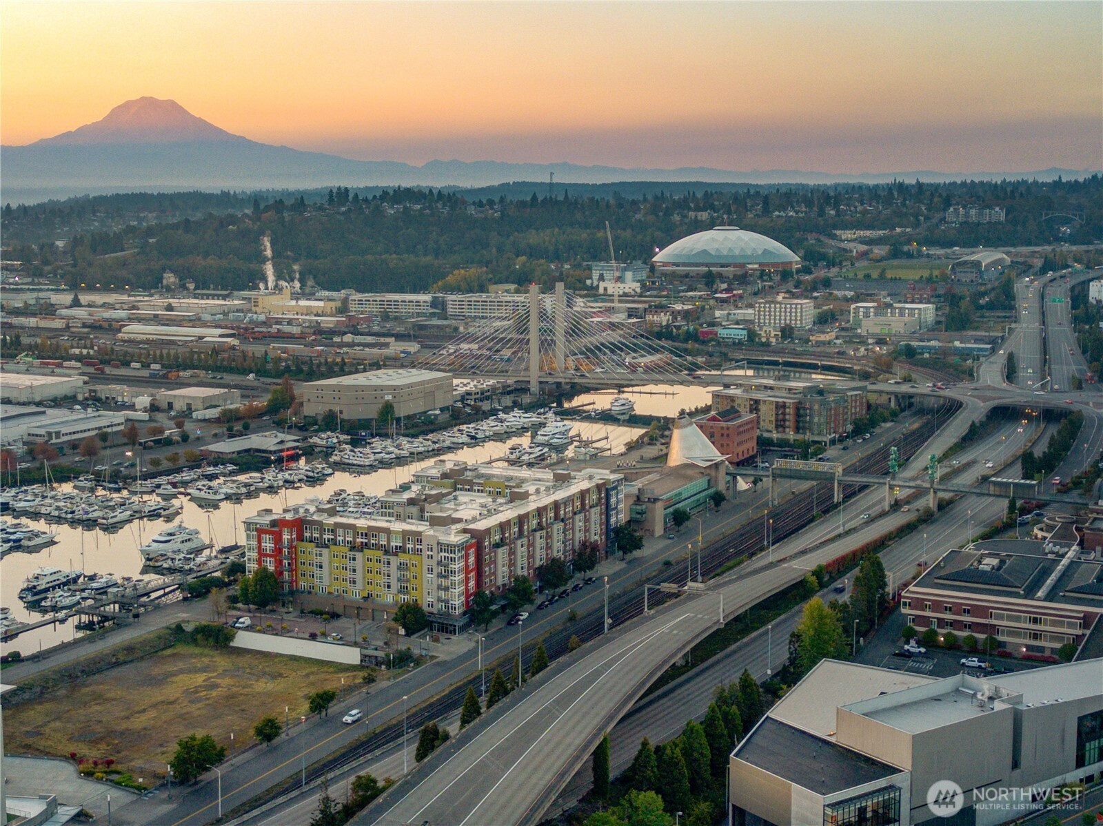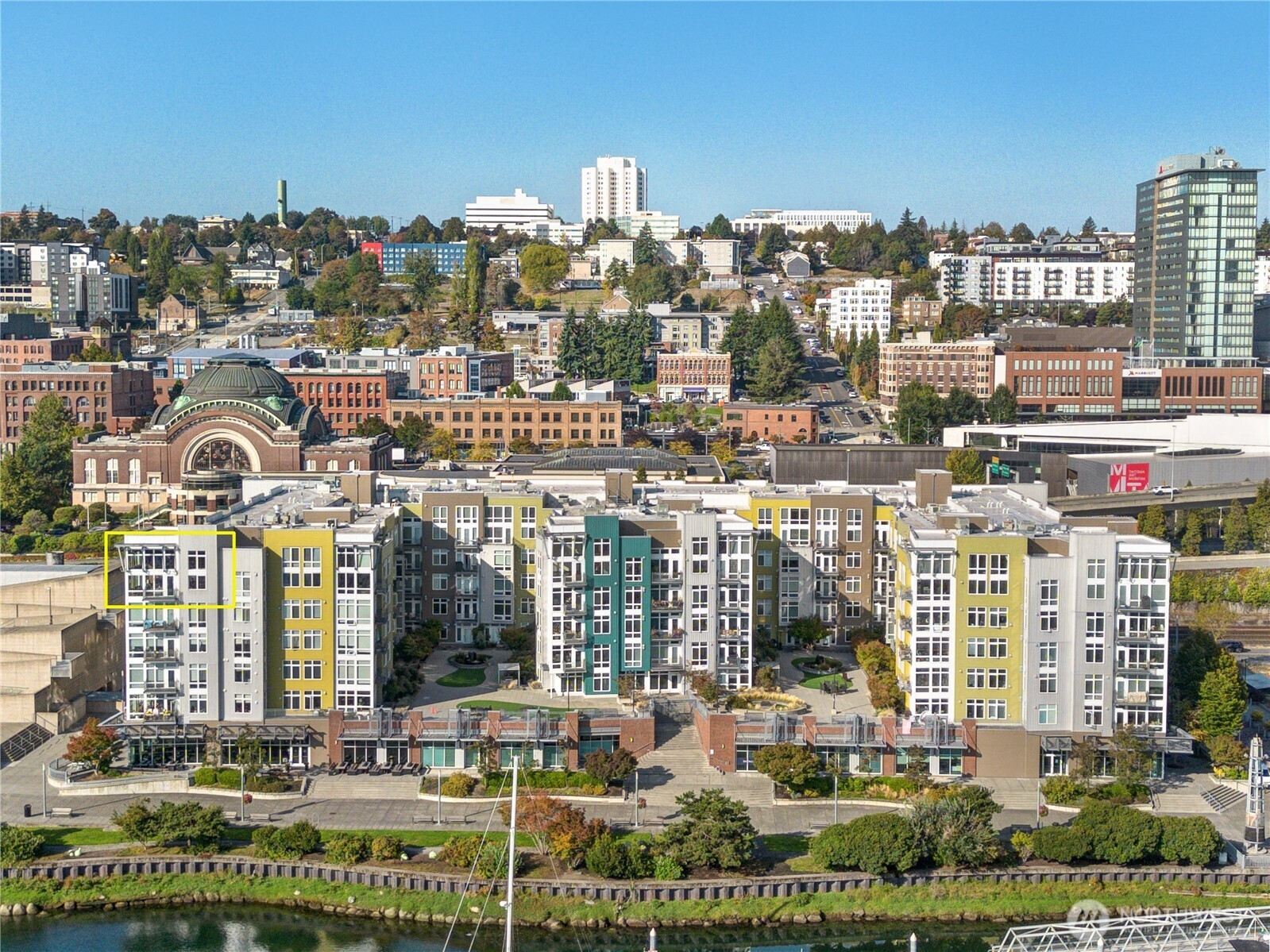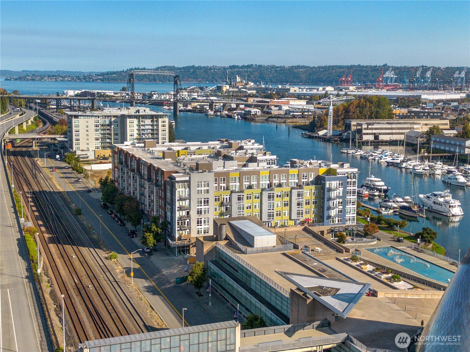 Thea's Landing in Downtown Tacoma provides a rich lifestyle of leisure, activity and inspiration. Overlooking Thea Foss Waterway: a thriving community hub with a mixture of restaurants, clubs and local businesses. This top floor condo is minutes from Tacoma’s Transit station, Museum of Glass and University of Washington. It is a premier location to experience Tacoma’s diverse community. Views of the water are seen from the balcony off the living room. The home has been well cared for and received many upgrades including a new water heater in 2019 and a new heat pump in 2022 (ideal temperature control throughout the year). Floor-to-ceiling windows are dressed with both shades and drapes so you can set the mood. One parking spot + storage options; satisfaction of style, space & simplicity are here. Enjoy onsite gym, community center, sauna and more. You can have it all, here at Theas Landing.