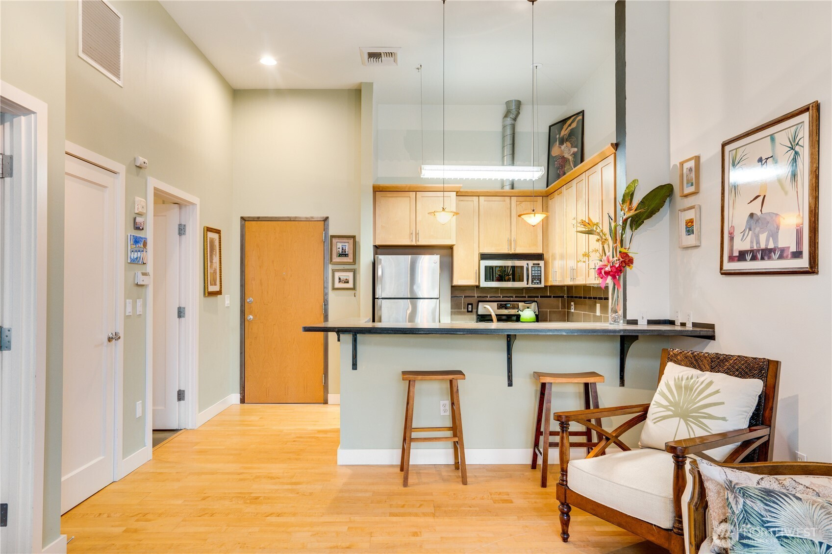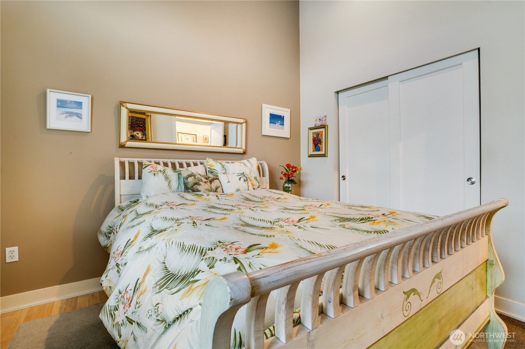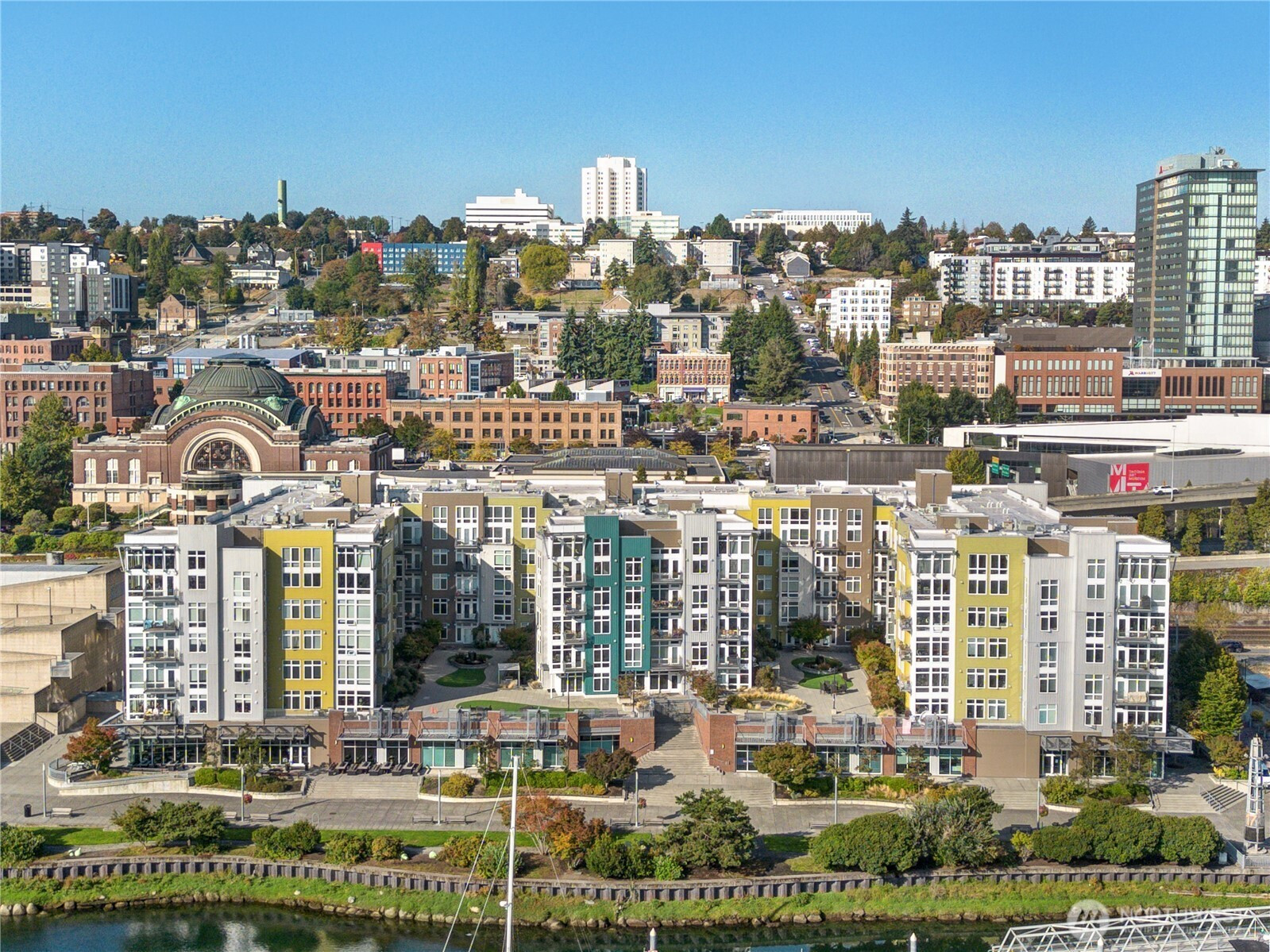 Thea's Landing in Downtown Tacoma provides a rich lifestyle of leisure, activity and inspiration. Overlooking Thea Foss Waterway: a thriving community hub with a mixture of restaurants, clubs and local businesses. This top floor condo is minutes from Tacoma’s Transit station, Museum of Glass and University of Washington. It is a premier location to experience Tacoma’s diverse community. Views of the water are seen from the balcony off the living room. The home has been well cared for and received many upgrades including a new water heater in 2019 and a new heat pump in 2022 (ideal temperature control throughout the year). Floor-to-ceiling windows are dressed with both shades and drapes so you can set the mood. One parking spot + storage options; satisfaction of style, space & simplicity are here. Enjoy onsite gym, community center, sauna and more. You can have it all, here at Theas Landing.
