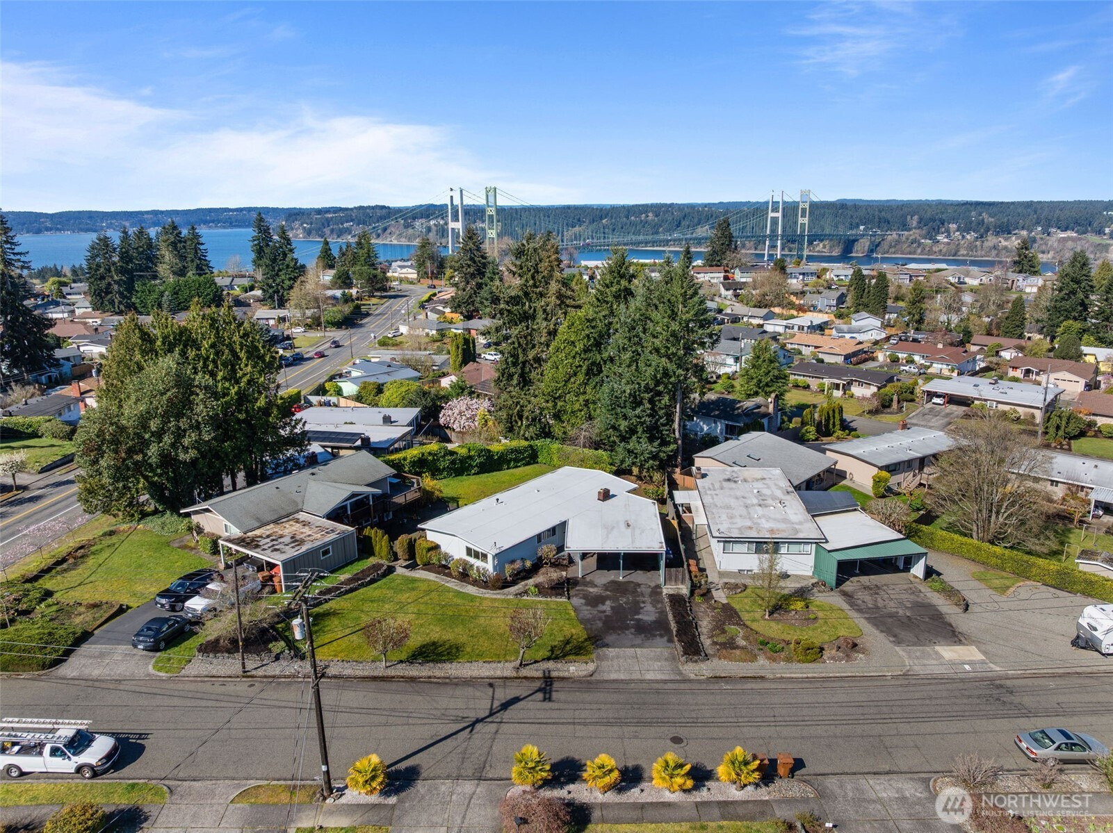 Welcome to this Mid-Century Modern home in desirable North Tacoma, offering space, character, and a slice of Puget Sound and Point Evans views from the back deck. This 4-bedroom, 1.5-bath home features a functional layout with bright living spaces, a spacious family room, and two fireplaces that add warmth and charm. The primary bedroom includes a convenient half bath, and a dedicated utility room enhances everyday functionality. Recent updates include a new roof (2024) and new furnace (2023), providing peace of mind for years to come. Outside, enjoy off-street parking and a covered carport for two vehicles. With its classic mid-century appeal, solid updates, and prime location near shopping, dining, and waterfront access, this home offers a great opportunity to personalize and build equity in one of Tacoma’s most sought-after neighborhoods.