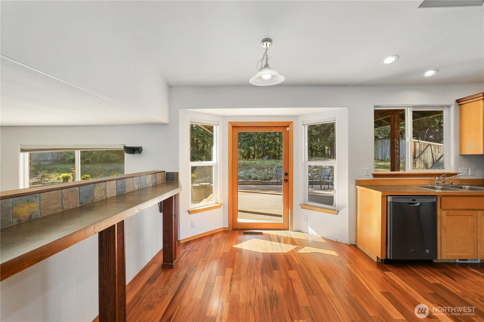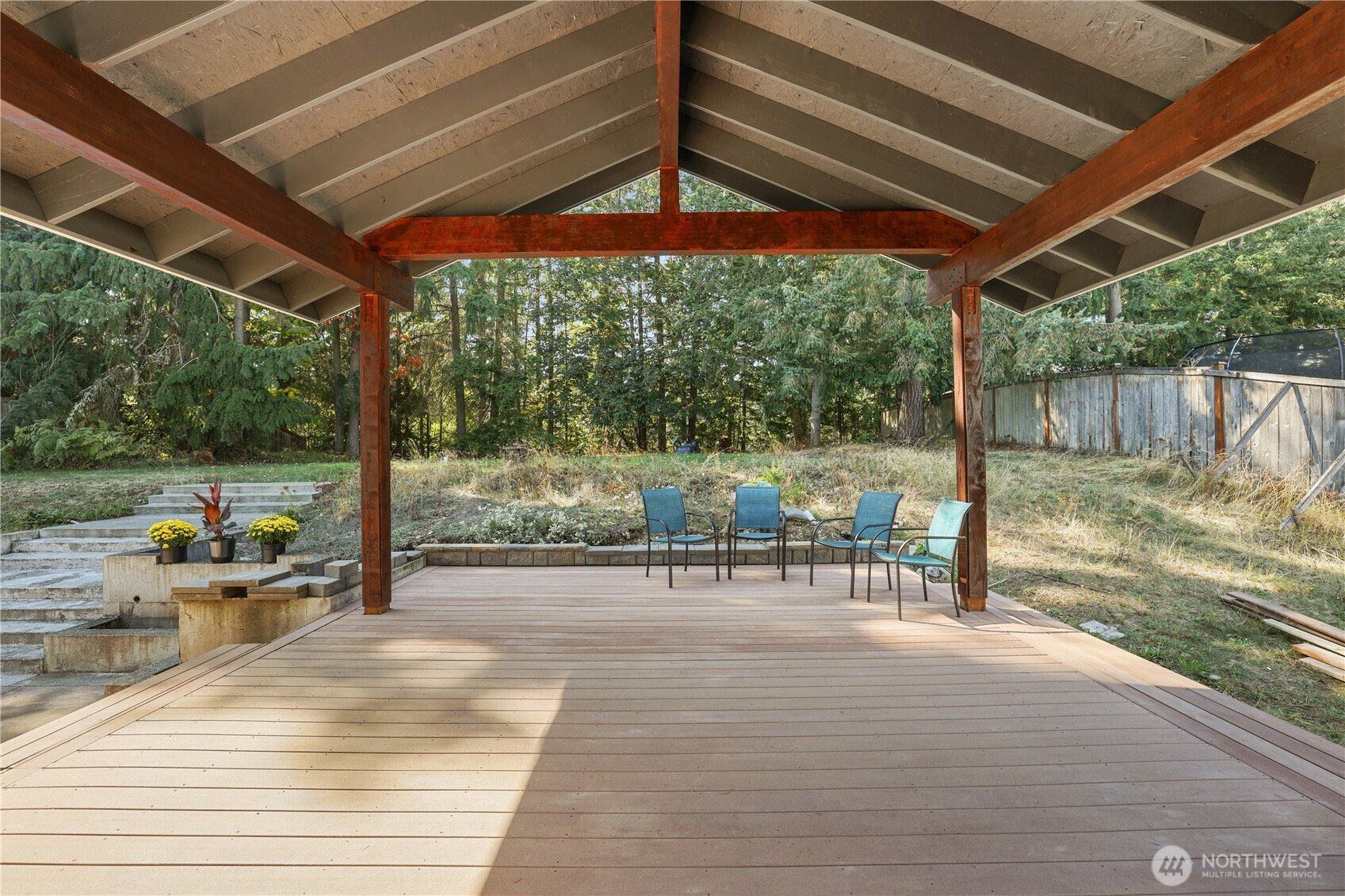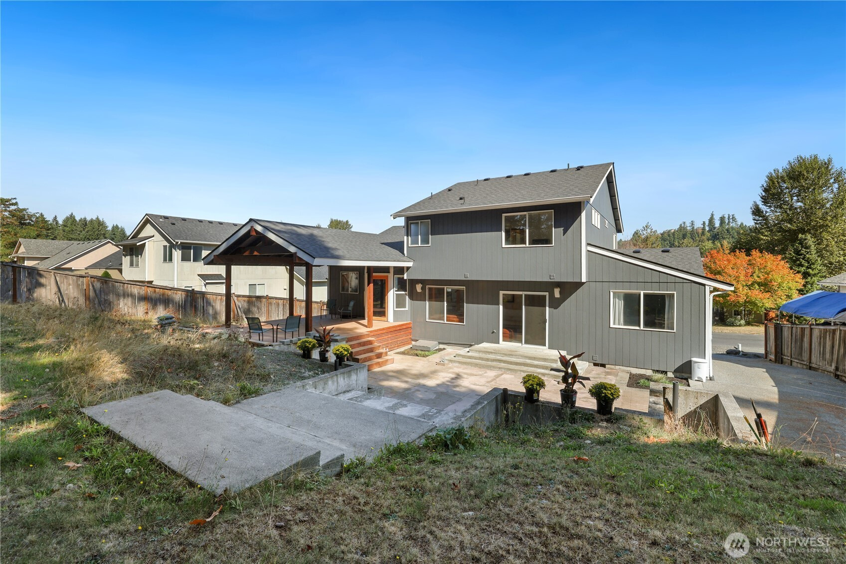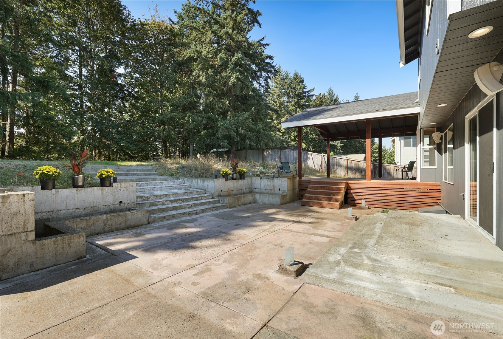 Beautiful move-in ready 4 Bedroom, 2 1/2 bath Tri level with oversized 1/3-acre lot backs to forested greenbelt, offering privacy & natural views. Brand-new roof, fresh exterior & interior paint & new carpet. 3-car garage, w/380 sq ft of extra storage space & large RV pad. Hardwood flooring leads to open kitchen with newer appliances, perfect for daily living. Downstairs is a cozy family room w/bedroom/den/office, half bath, Laundry. Upstairs is 2 bedrms, bath & Primary w/5 piece bath. Featuring in-wall prewired surround sound & sliding door that opens to oversized concrete patio + covered deck—ideal for relaxing or hosting. The home is filled w/upgrades throughout!