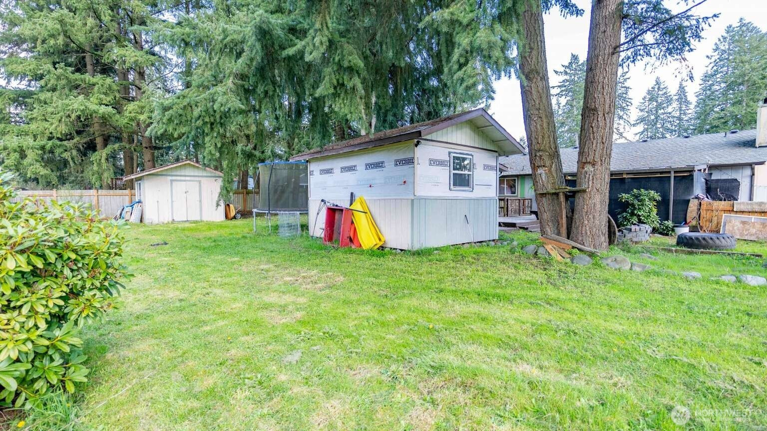 Spacious rambler on a large lot in a quiet cul-de-sac near JBLM. Cozy fireplace, ceiling fans, walk-in closets, primary suite on main, flex room & open layout. All appliances convey: washer, dryer, refrigerator & stove/oven. Private fenced backyard with mature fruit trees, deck, covered patio, hot tub hookup, RV parking & two outbuildings. No HOA. Large lot with ADU potential for added value. Close to schools, shopping & transit.