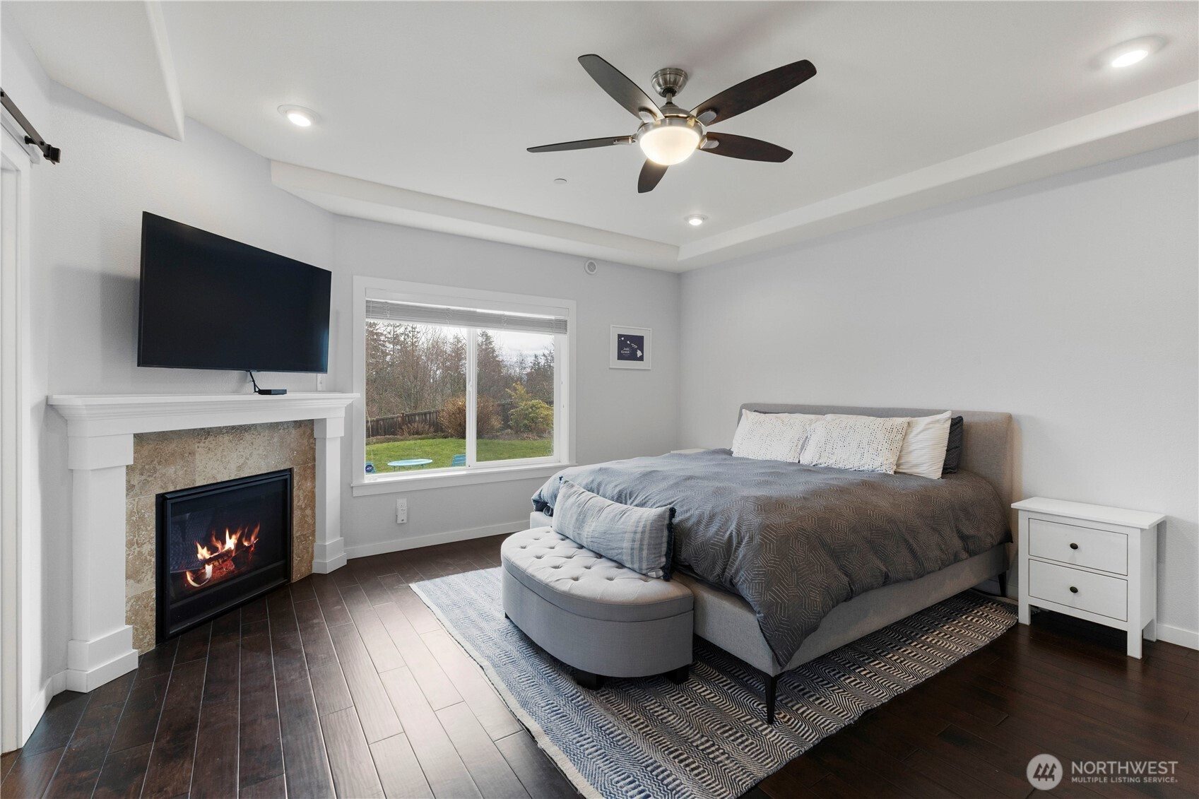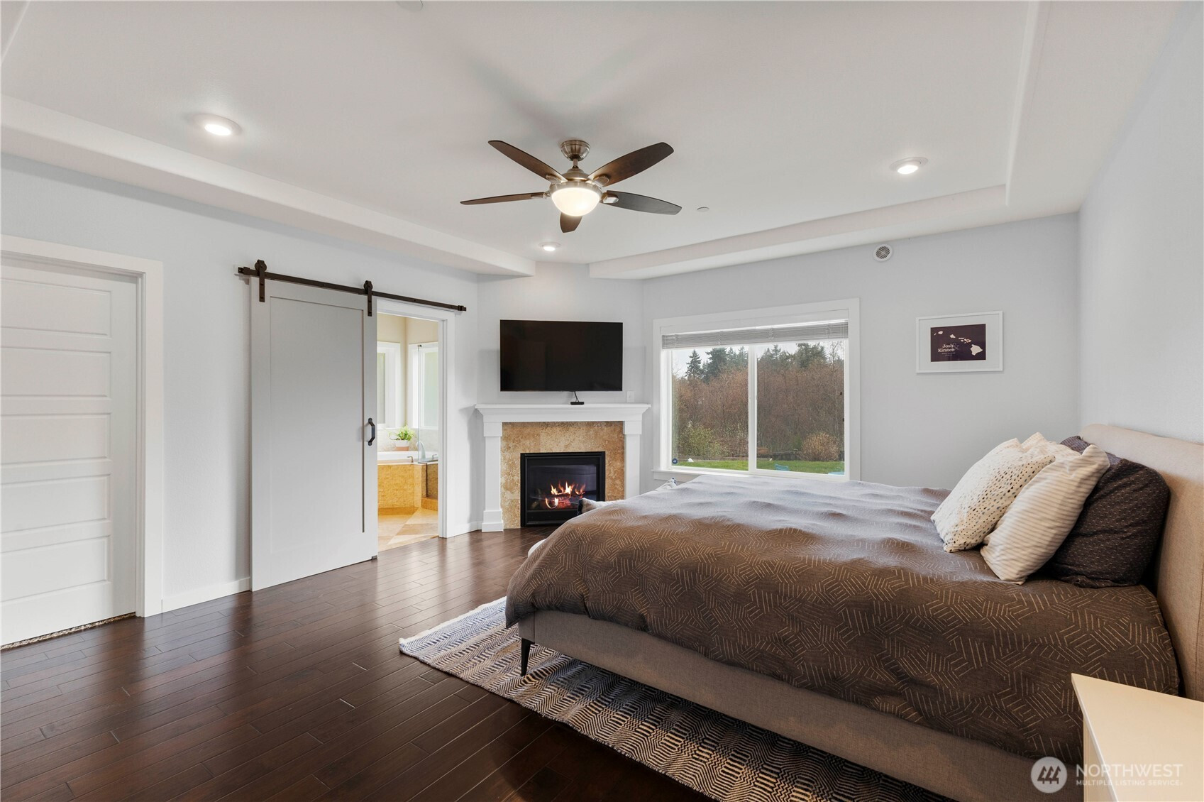 Welcome home to this beautifully maintained 4-bedroom, 2.5-bath rambler with a spacious bonus room upstairs, nestled in the gated Grandview community in desirable Lake Tapps. Located within the coveted Dieringer School District, this home offers the perfect blend of comfort, privacy, and convenience. Step inside to soaring vaulted ceilings and an inviting great room featuring newer interior paint and a cozy fireplace—perfect for relaxing evenings at home. The thoughtfully designed floor plan includes ceiling fans in every bedroom, a generous bonus room ideal for a home office, media space, or playroom, and a large utility room complete with a utility sink for added functionality. The primary suite is a true retreat, boasting newer interior paint, a soaking tub, a fireplace, two large closets and plenty of space to unwind at the end of the day. The kitchen shines with newer quartz countertops, double ovens, and a massive island offering both style and practicality for everyday living and entertaining. Outside, enjoy the private, fully fenced yard space with a covered patio designed for year-round entertaining. Permanent Govee lighting adds charm and convenience in every season, while new exterior paint enhances the home’s curb appeal. An EV hookup adds modern efficiency to this already exceptional property. With its gated setting, expansive lot, and thoughtful upgrades throughout, this Lake Tapps gem is ready to welcome you home.