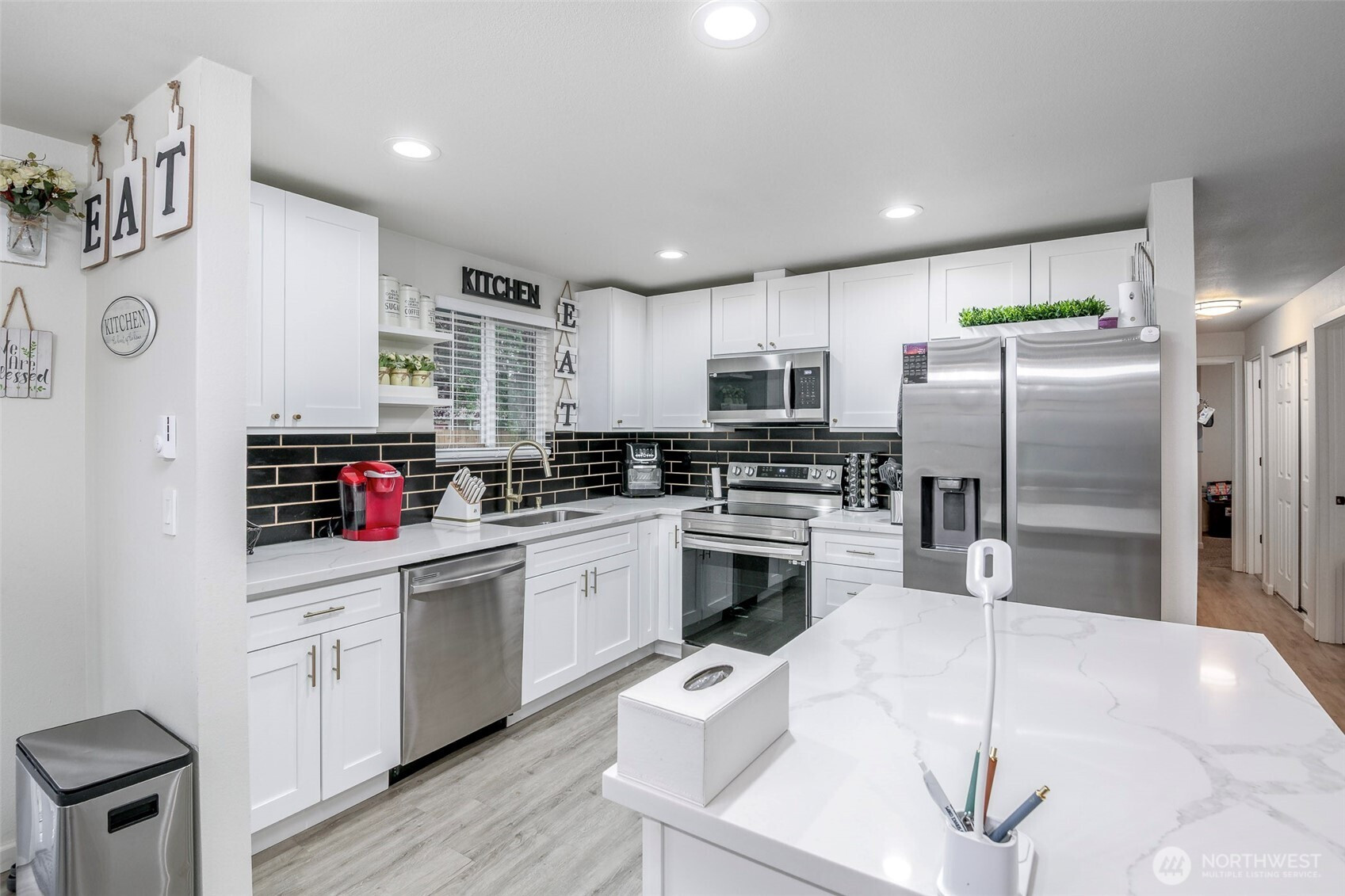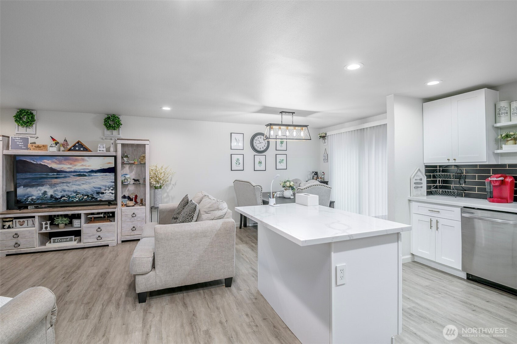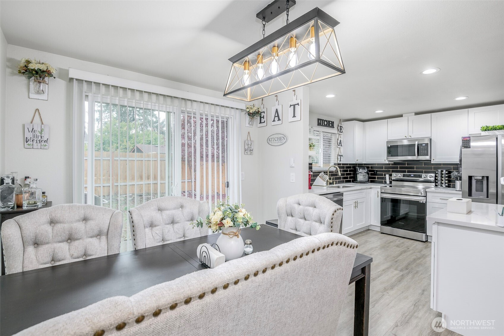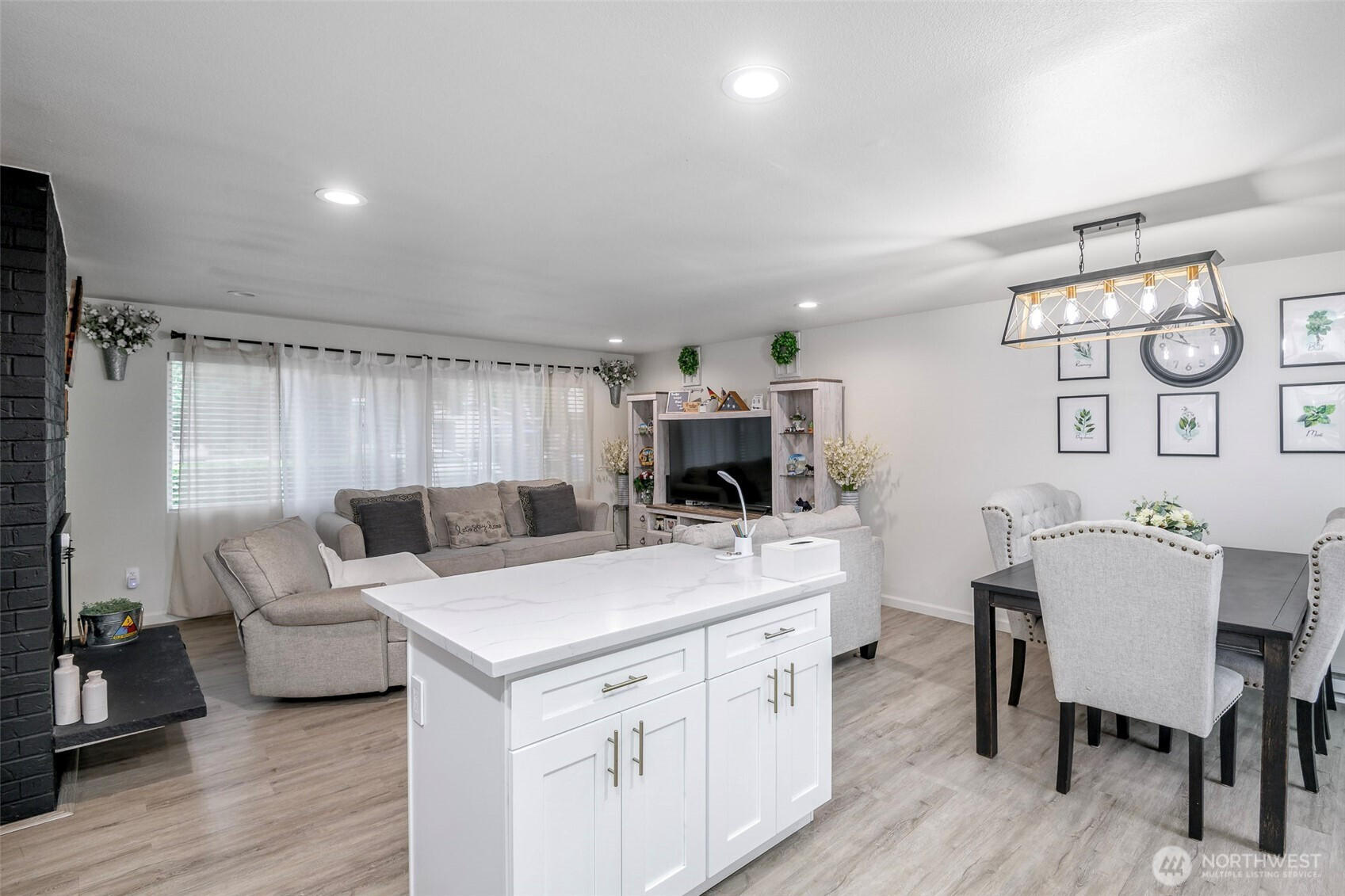 Beautifully remodeled 3 bedroom one story home! Walk inside to this light & bright open concept living with island kitchen, newer cabinets, quartz countertops, stainless steel appliances, gorgeous fireplace, newer flooring and a dining room right off the kitchen! Spacious living area for entertaining, good size secondary bedrooms, nice size primary & a beautifully updated bathroom! Outside features a large fully fenced yard, 2 car garage & RV parking! Convenient commute to JBLM, schools, parks & shopping with NO HOA! This home has it all - don't miss this one!