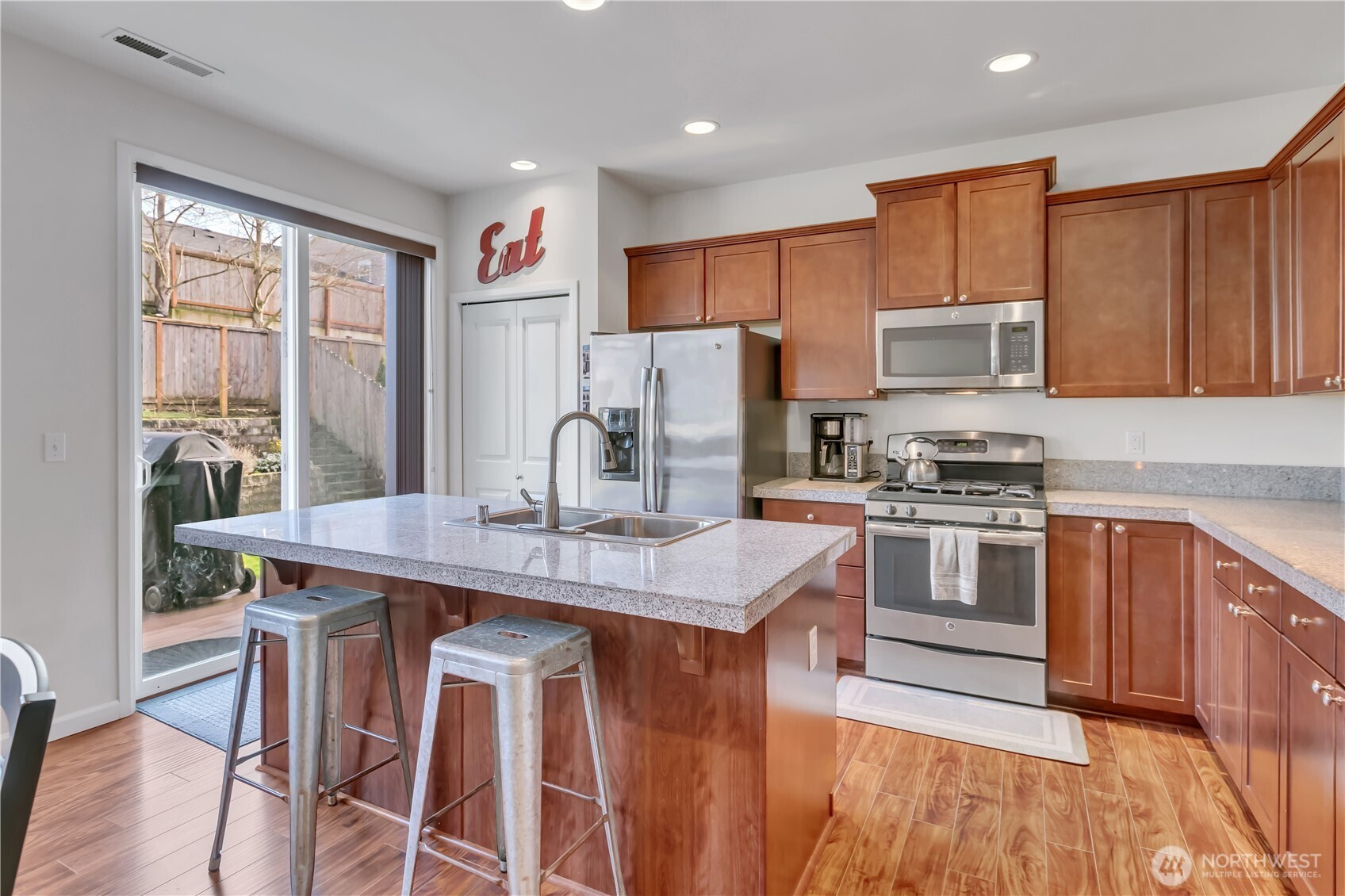 Check out this beautiful, move-in-ready home that offers plenty of space and comfort! With 4 spacious bedrooms, 2.5 bathrooms and a bonus den/office, there's room for everyone whether you're working from home, hosting guests, or just relaxing. Each bedroom is generously sized, giving everyone their own comfortable space, with plenty of room for furniture and storage. The spacious master bedroom is a true retreat, featuring a large walk in closet and private 5-piece bathroom perfect for unwinding after a long day. The open and functional layout makes the home feel bright and welcoming throughout. The kitchen is both stylish and functional, with granite counter tops, stainless steel appliances and plenty of counter and cabinet space, making cooking and entertaining easy and enjoyable. Step out back to a backyard designed for entertaining and relaxing. Enjoy the newer TimberTech deck, along with a new concrete patio and pathway that provide plenty of space for gatherings. An added retaining wall creates beautiful garden space, complete with Blueberry and Raspberry plants-perfect for anyone who enjoys fresh fruit and outdoor living. The 3 car garage gives you plenty of room for vehicles, storage or hobbies. This home is clean, well cared for, and ready for you to move right in and make it your own!