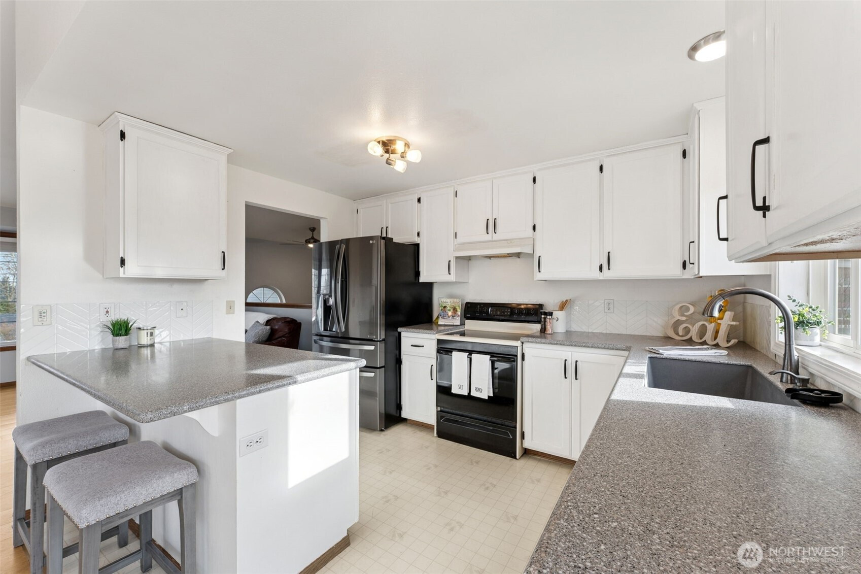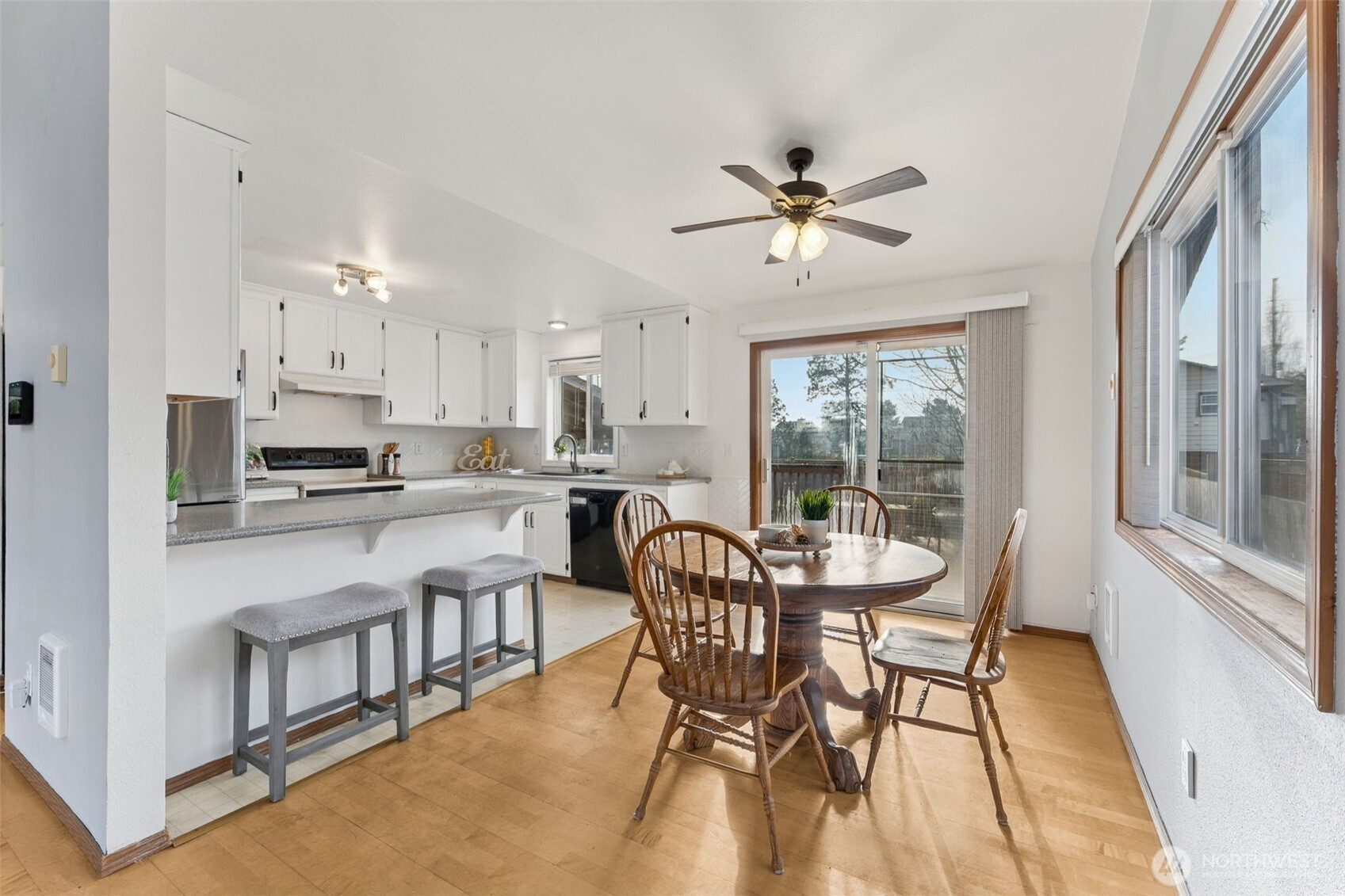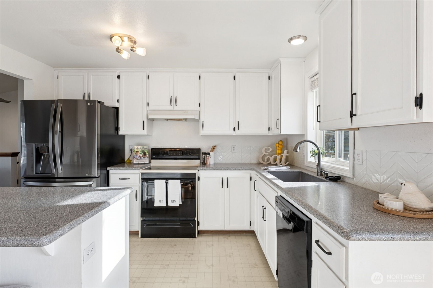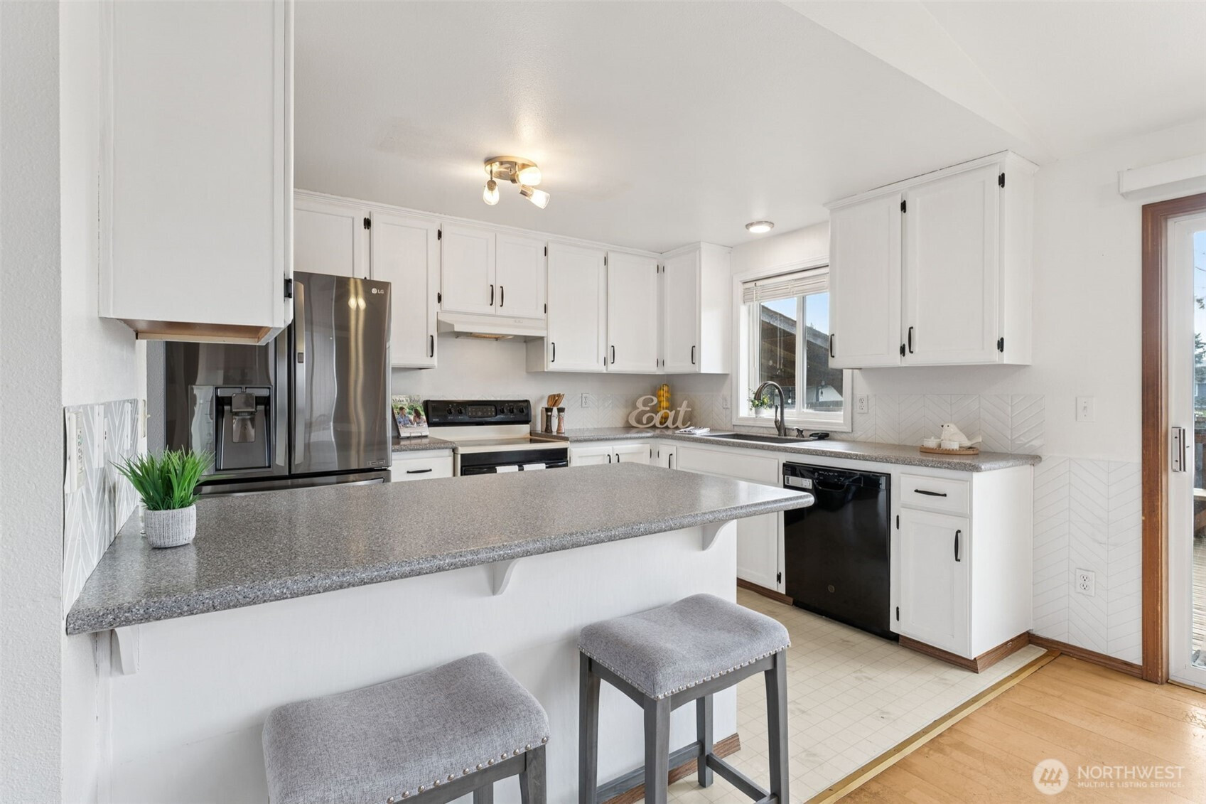 Welcome to this beautiful, light and bright, 3 bedroom, 1.75 bath home with a great split-level layout and spaces for everyday living and entertaining. Upstairs offers 2 bedrooms, a full bath, vaulted ceilings with skylights, and an inviting living room with fireplace and dining area next to an updated kitchen with ample counter space, peninsula island and bar seating. Enjoy the downstairs bonus room, great for media, gym, or extra space along with the 3rd bedroom and 3/4 bath. Mini-splits located upstairs and downstairs for your heating and cooling needs along with a built-in security system. On a clear day, enjoy the Olympic Mountain view from the living room. Enjoy year-round outdoor living with a spacious upper deck for gatherings plus a covered lower patio that’s ideal for rainy days. Fully fenced backyard with grass, flower beds and a raised garden bed for easy gardening. Large 2-car garage (washer & dryer) stay! Convenient location close to JBLM, freeway access, shopping, and restaurants.