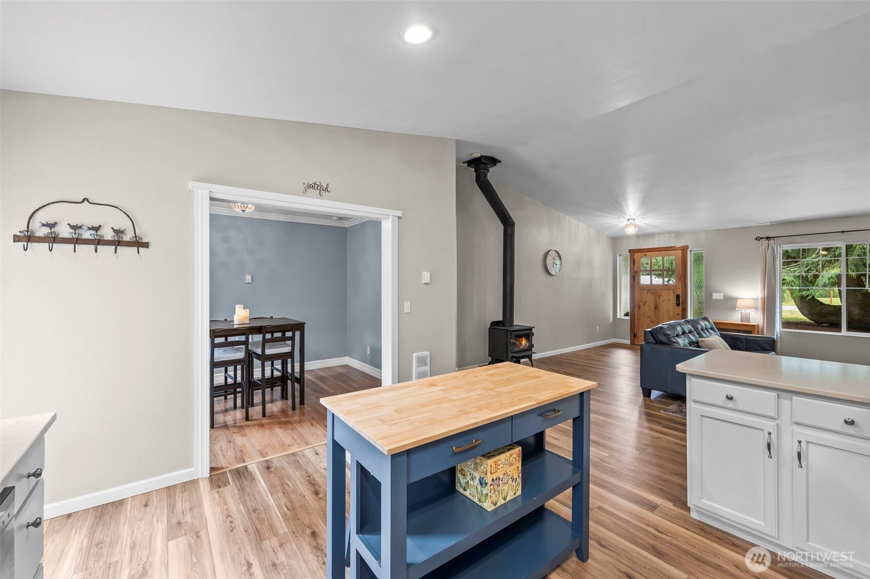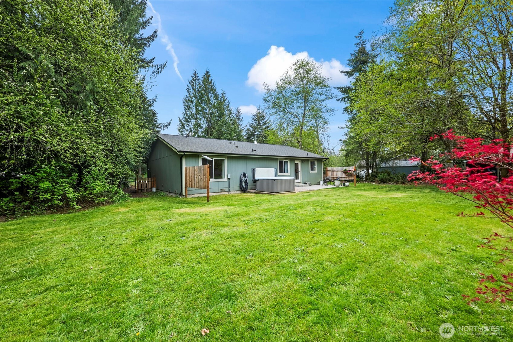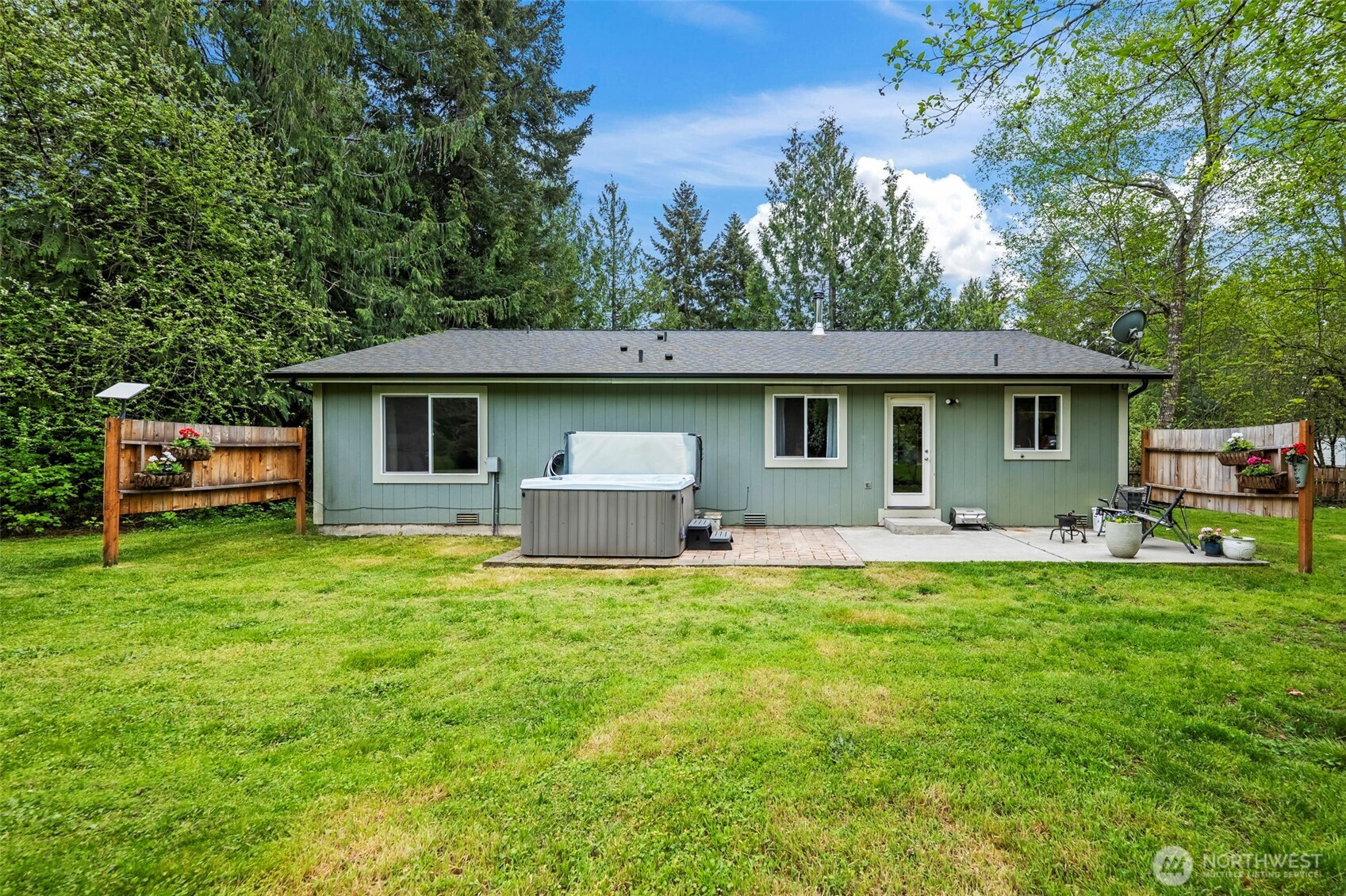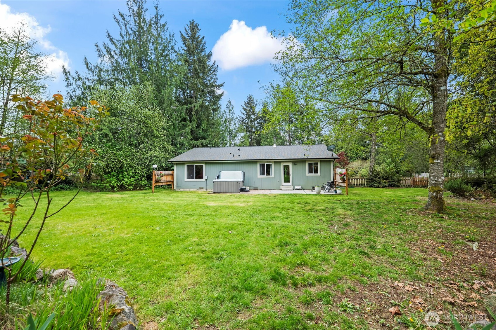 Cute as a button! This 1216 sqft rambler is turn key with room to roam on 1.3 acres! Many thoughtful updates in the last few years provide peace of mind and low maintenance home ownership! You'll love the gorgeous details like the Knotty Alder front door, the decorative light fixtures and dimmable switches. Plus the more practical updates in the last 5 years include a new roof, gutters, hot water tank, LVP flooring & carpet and Starlink that stays! When you enter the home, you're greeted by vaulted ceilings and a cozy wood stove in the living room that opens to the kitchen with this great room concept. The stainless steel appliances are like new. You'll appreciate the butcher block island and breakfast bar seating. The dining room used to be a third bedroom and could easily be converted back to a bedroom. The other 2 bedrooms are located down the hallway, with a full bath in the hall and a full ensuite off the primary bedroom, along with a walk-in closet. The hot tub is clean and ready for relaxing evenings, enjoying the peace & quiet of country living. There's a chicken coop and a barn / storage shed for whatever your heart desires. Enjoy campfires, garden areas and fruit trees (apple, plum, pear, peach, and raspberries) with a nicely treed perimeter. The yard is fully fenced and the side yard has dual gates that allow RV's or trailers to drive into the back. Plus no HOA! Whether you're interested in homesteading, a hobby farm, or just enjoying privacy, this one is for you!