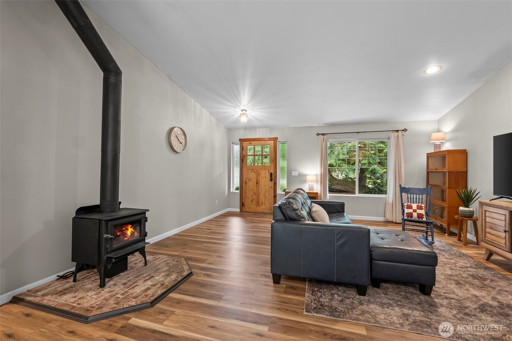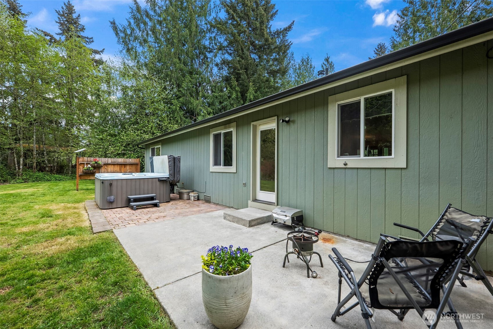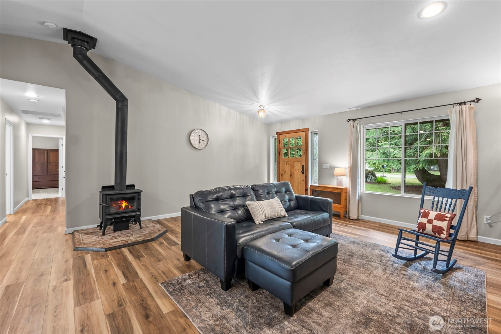 Cute as a button! This 1216 sqft rambler is turn key with room to roam on 1.3 acres! Many thoughtful updates in the last few years provide peace of mind and low maintenance home ownership! You'll love the gorgeous details like the Knotty Alder front door, the decorative light fixtures and dimmable switches. Plus the more practical updates in the last 5 years include a new roof, gutters, hot water tank, LVP flooring & carpet and Starlink that stays! When you enter the home, you're greeted by vaulted ceilings and a cozy wood stove in the living room that opens to the kitchen with this great room concept. The stainless steel appliances are like new. You'll appreciate the butcher block island and breakfast bar seating. The dining room used to be a third bedroom and could easily be converted back to a bedroom. The other 2 bedrooms are located down the hallway, with a full bath in the hall and a full ensuite off the primary bedroom, along with a walk-in closet. The hot tub is clean and ready for relaxing evenings, enjoying the peace & quiet of country living. There's a chicken coop and a barn / storage shed for whatever your heart desires. Enjoy campfires, garden areas and fruit trees (apple, plum, pear, peach, and raspberries) with a nicely treed perimeter. The yard is fully fenced and the side yard has dual gates that allow RV's or trailers to drive into the back. Plus no HOA! Whether you're interested in homesteading, a hobby farm, or just enjoying privacy, this one is for you!