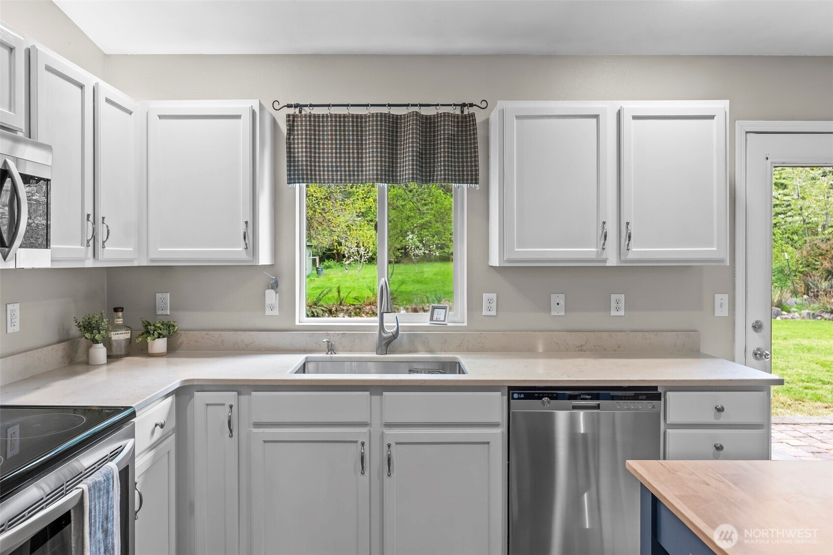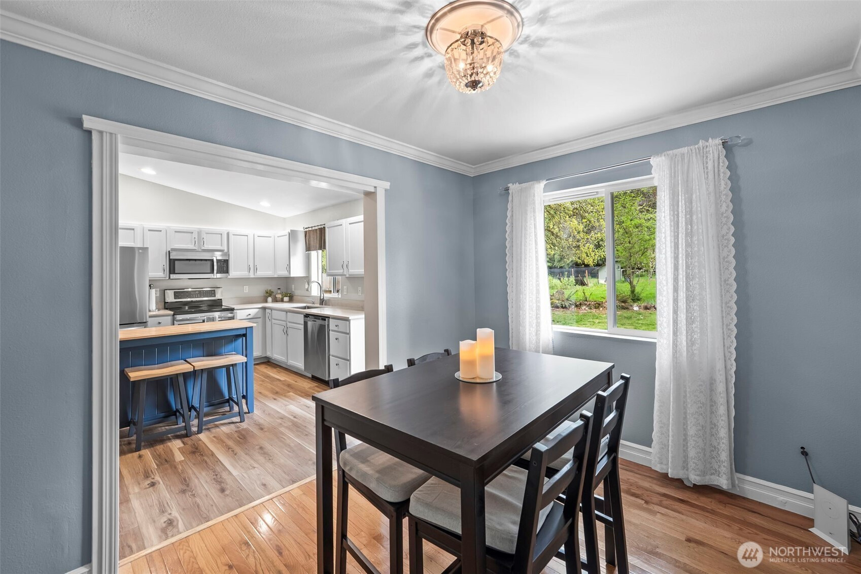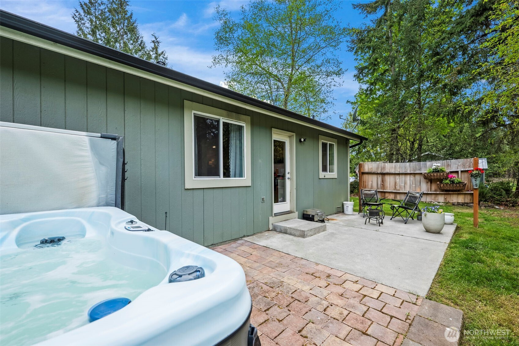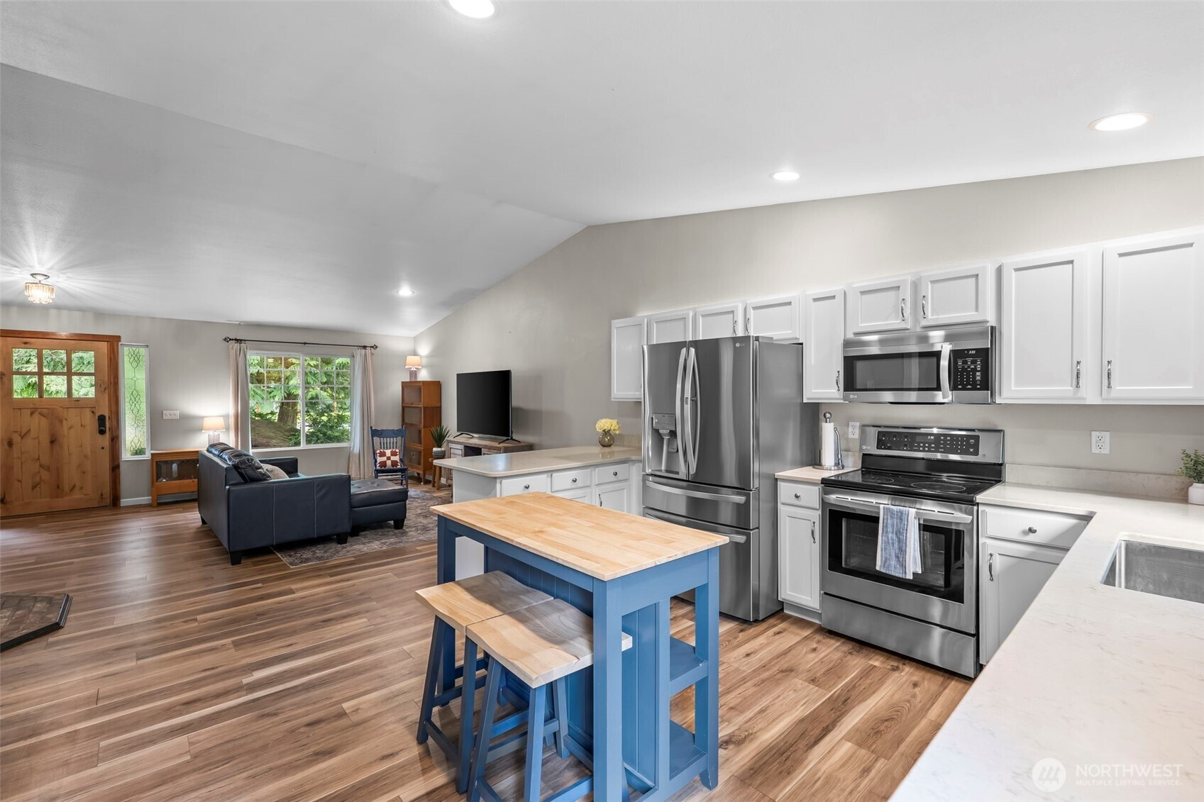 Cute as a button! This 1216 sqft rambler is turn key with room to roam on 1.3 acres! Many thoughtful updates in the last few years provide peace of mind and low maintenance home ownership! You'll love the gorgeous details like the Knotty Alder front door, the decorative light fixtures and dimmable switches. Plus the more practical updates in the last 5 years include a new roof, gutters, hot water tank, LVP flooring & carpet and Starlink that stays! When you enter the home, you're greeted by vaulted ceilings and a cozy wood stove in the living room that opens to the kitchen with this great room concept. The stainless steel appliances are like new. You'll appreciate the butcher block island and breakfast bar seating. The dining room used to be a third bedroom and could easily be converted back to a bedroom. The other 2 bedrooms are located down the hallway, with a full bath in the hall and a full ensuite off the primary bedroom, along with a walk-in closet. The hot tub is clean and ready for relaxing evenings, enjoying the peace & quiet of country living. There's a chicken coop and a barn / storage shed for whatever your heart desires. Enjoy campfires, garden areas and fruit trees (apple, plum, pear, peach, and raspberries) with a nicely treed perimeter. The yard is fully fenced and the side yard has dual gates that allow RV's or trailers to drive into the back. Plus no HOA! Whether you're interested in homesteading, a hobby farm, or just enjoying privacy, this one is for you!