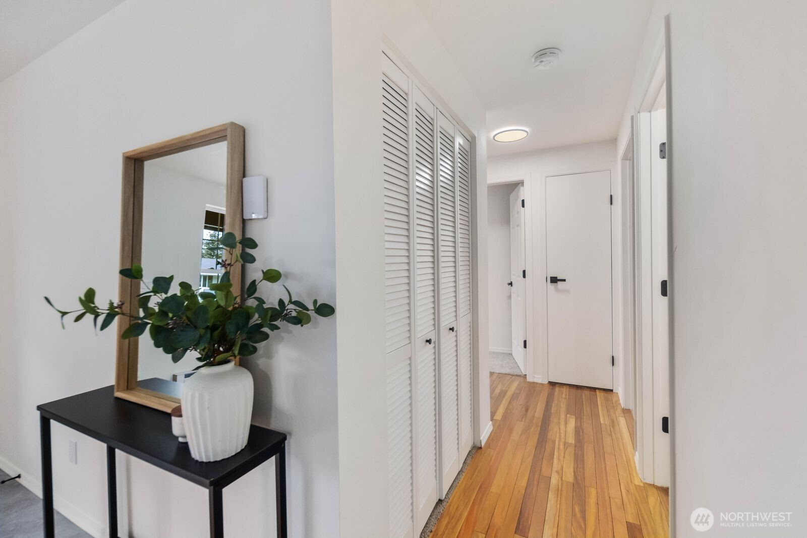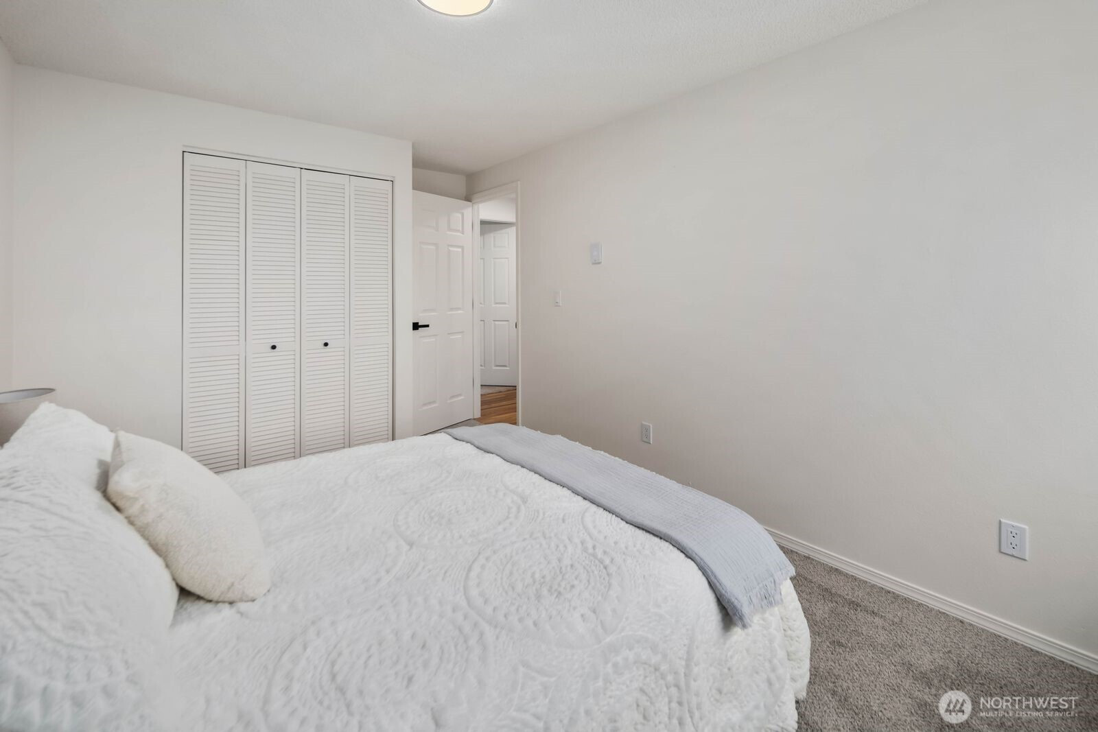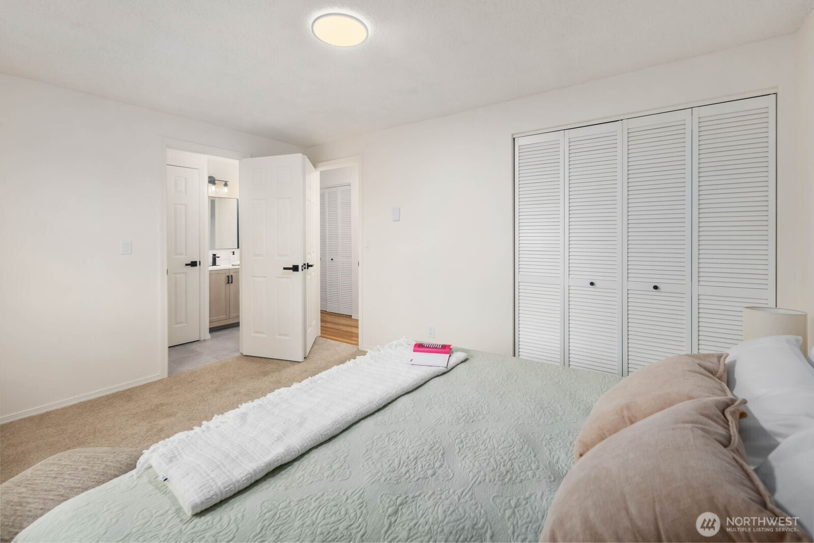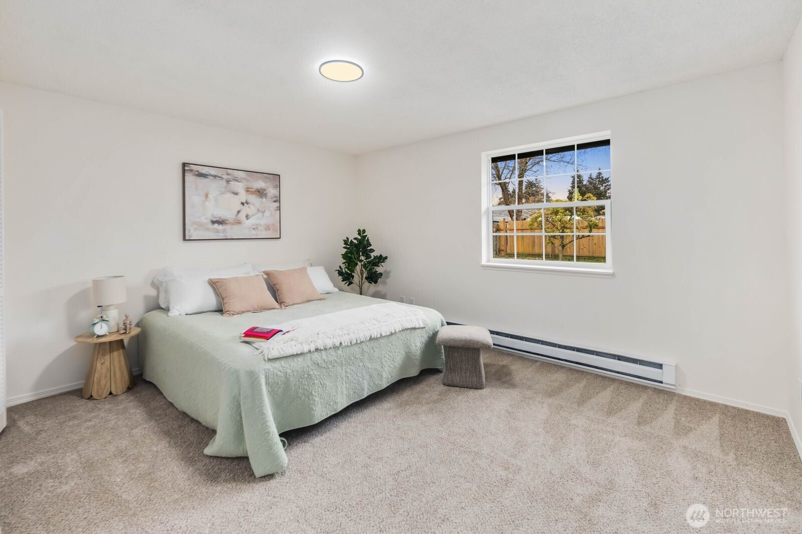 Fully updated and move-in ready, this sharp Spanaway home delivers modern design at an accessible price point. The striking charcoal exterior with warm wood entry detail makes a strong first impression, set on a 7,500 sq ft lot with a spacious yard and a dedicated fire pit area perfect for outdoor entertaining. Inside, the open concept layout flows seamlessly from the living area into a fully renovated kitchen featuring two-tone cabinetry, dark countertops, subway tile backsplash, and stainless appliances. The full bathroom connects directly to the primary bedroom, offering an en suite feel with updated wood-tone vanity, matte black fixtures, and clean white finishes. Three comfortable bedrooms with fresh carpet complete the accommodations. At 1,016 square feet, the layout is efficient and well-executed, with quality finishes throughout that punch well above the price. Easy access to Joint Base Lewis-McChord, shopping, and South Sound commute routes. A turnkey opportunity in Spanaway that shows exceptionally well.