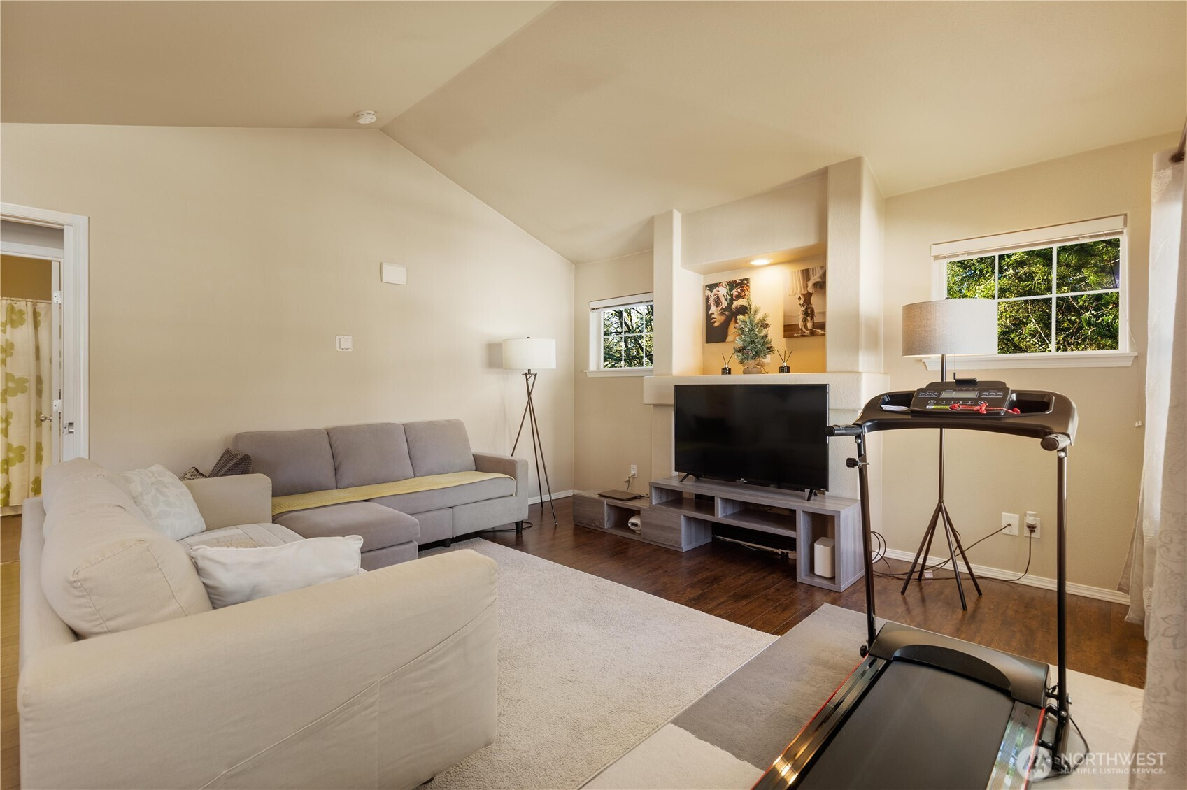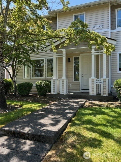 Ideally located in one of the most walkable and convenient areas of the community, this bright and inviting home offers exceptional privacy and comfort. With its own private entrance and durable composition roof, the home features two bedrooms and two bathrooms. A unique layout allows the interior door to be closed, creating two private primary-style suites—perfect for flexible living arrangements. The spacious oversized garage is located below the home, eliminating any concern about noise from below. Additional side outdoor space provides a private retreat, enhancing both privacy and usability. The primary suite easily accommodates a king-sized bedroom set and includes a walk-in closet. Bright, cozy, and meticulously maintained, this home is just a short walk from the town center, scenic trails, Clock Tower Park, playgrounds, and local schools When the center door is closed, the layout functions as two primary suites.