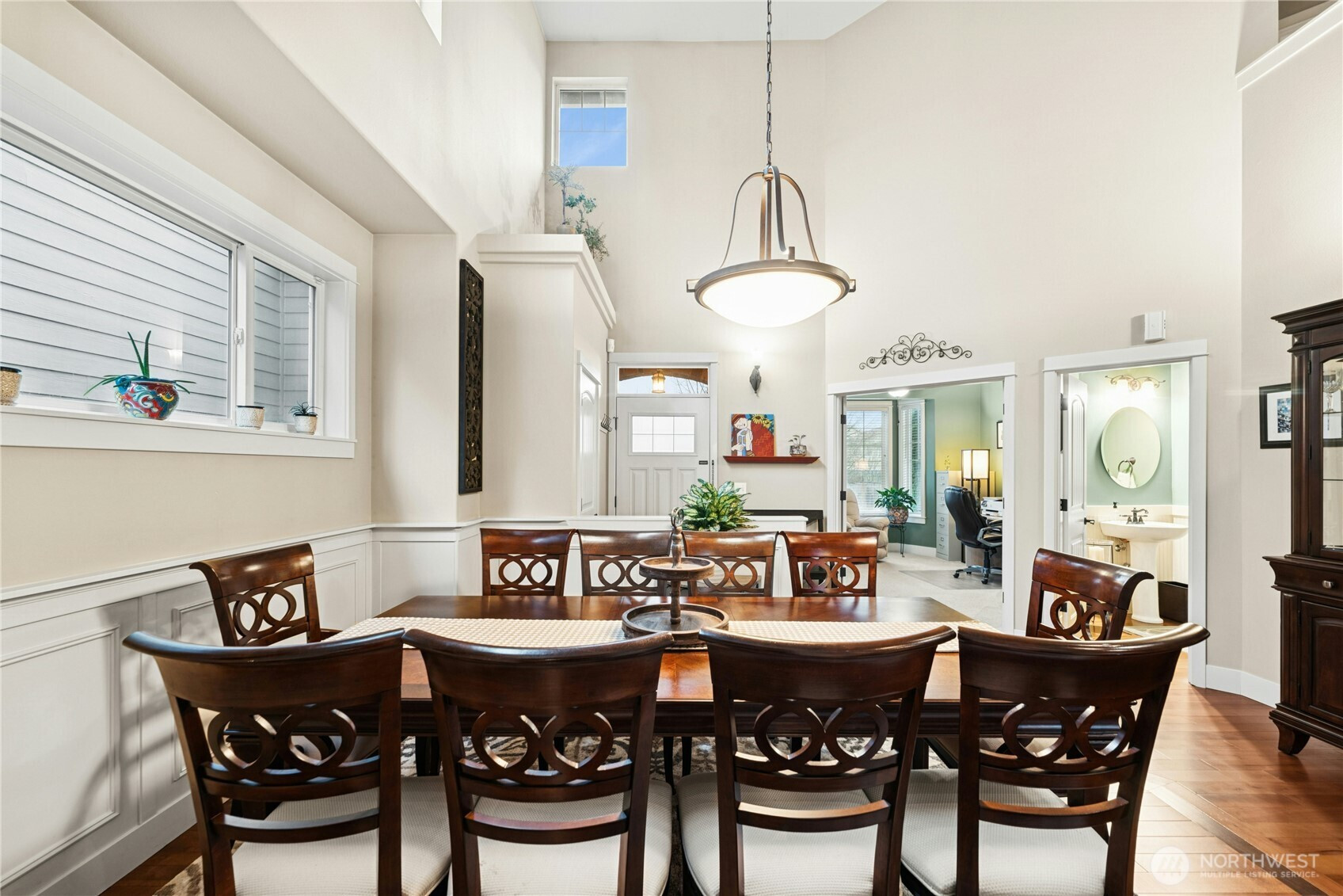 Impeccably crafted and lovingly maintained, this stunning retreat in Puyallup’s desirable Rebecca Ridge neighborhood offers an exceptional blend of sophistication, comfort, and serene living. Brand new roof — installed for complete peace of mind and years of worry-free enjoyment. Step inside to find gleaming hardwood floors, dramatic high ceilings, and an abundance of windows that flood every room with warm natural light, creating an airy, welcoming atmosphere. At the heart of the expansive open-concept great room, a cozy fireplace anchors the space—perfect for intimate evenings or effortless hosting of friends. With generous accommodations including 5 spacious bedrooms plus a dedicated home office, there’s plenty of room for everyone to live, work, and relax in style. Step outside to discover a large, covered patio for year-round enjoyment that leads to a level, beautifully landscaped, fully-fenced backyard — an ideal private oasis for outdoor entertaining, gardening, play, or simply unwinding in your own peaceful retreat. The location shines with easy access to nearby schools, parks, recreational trails, and a host of local amenities — delivering seamless convenience and a true sense of vibrant community. Your peaceful, elevated lifestyle awaits in one of Puyallup’s most desirable enclaves.