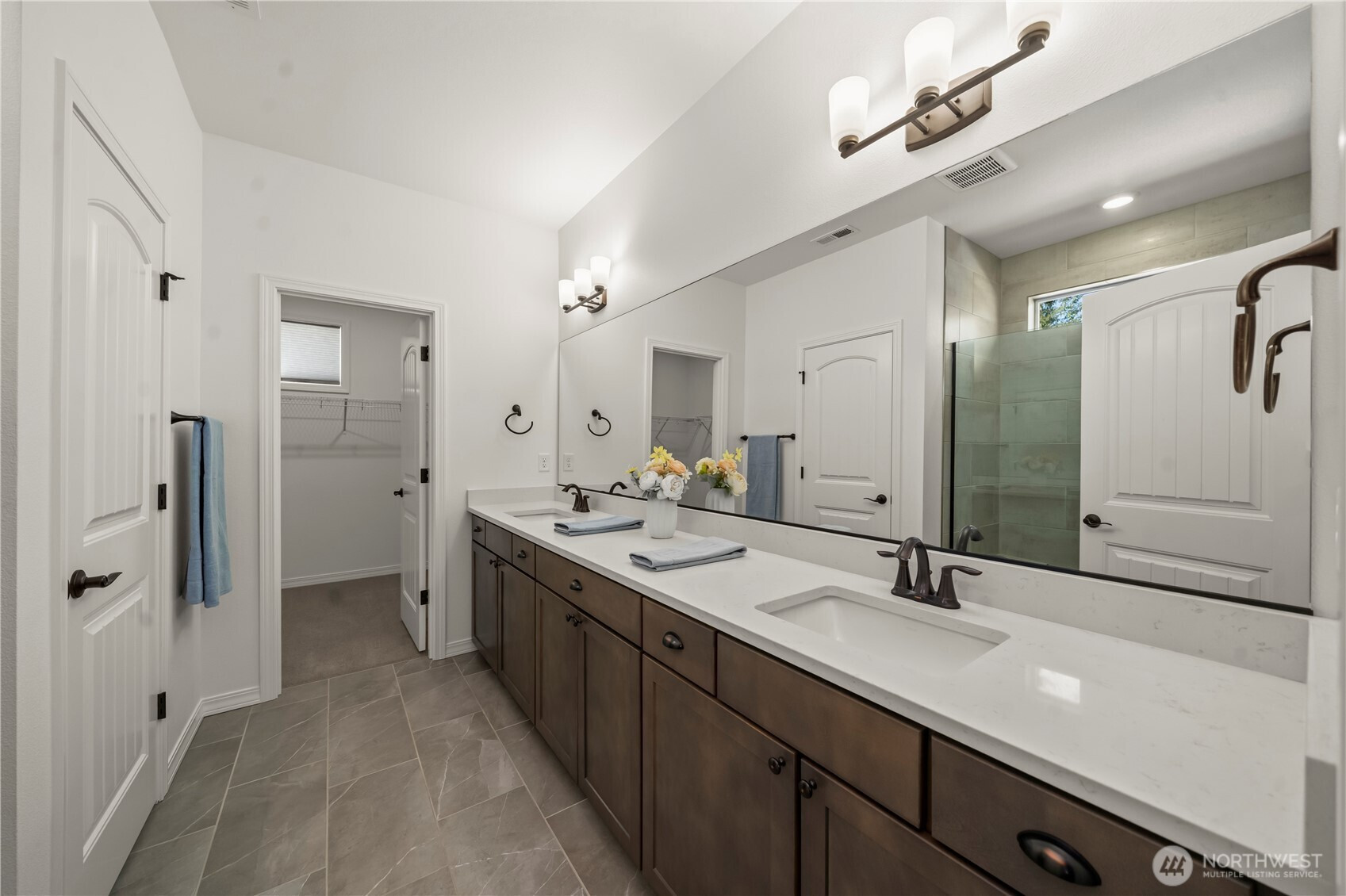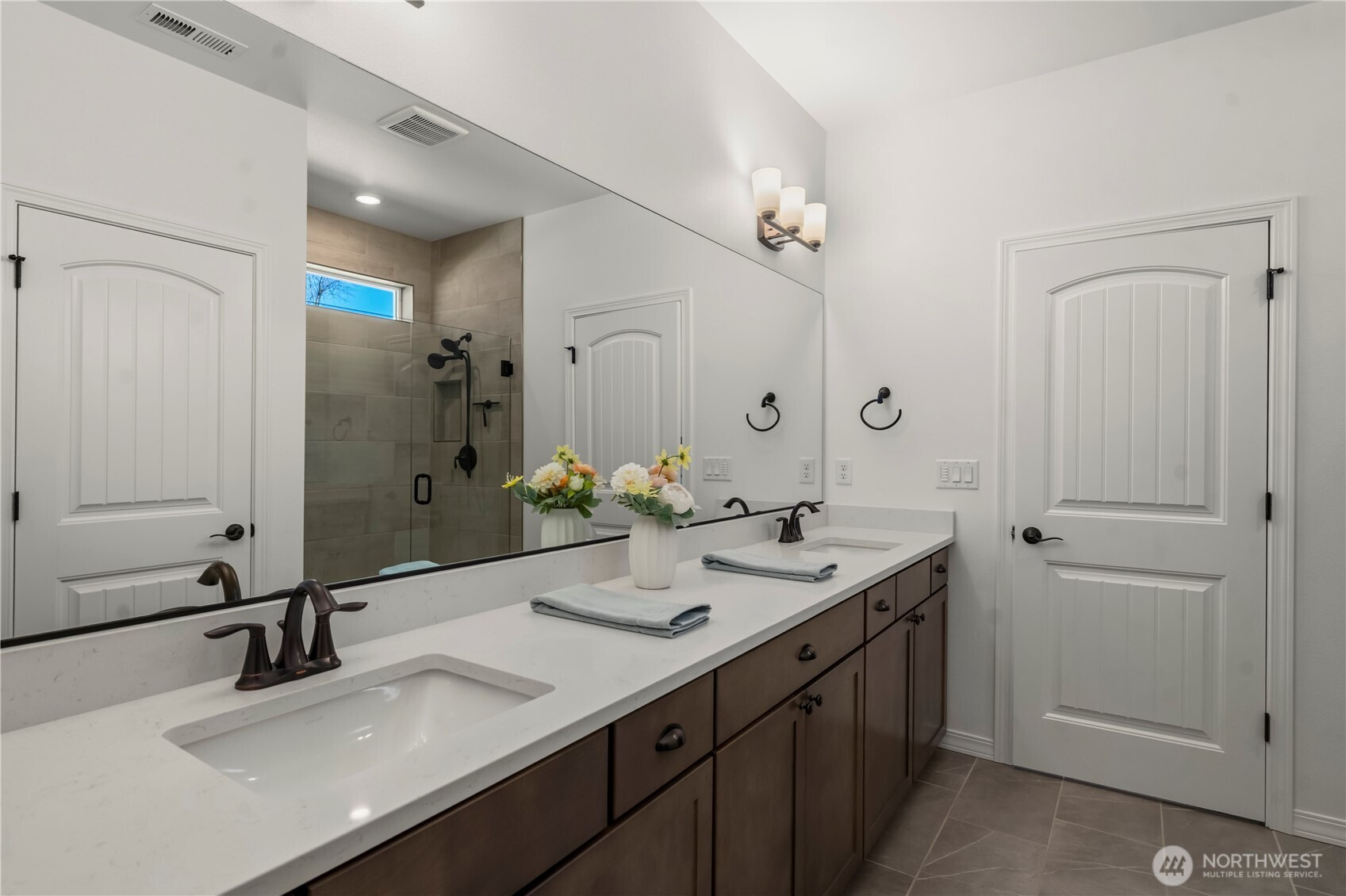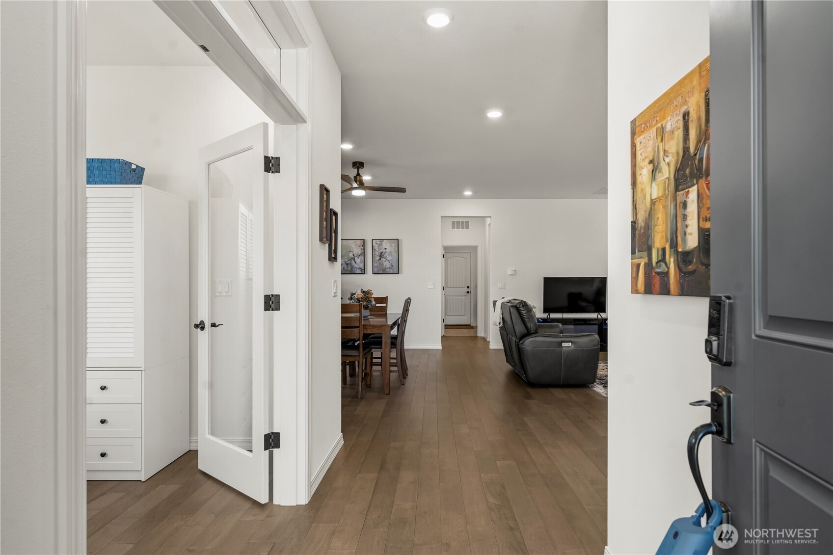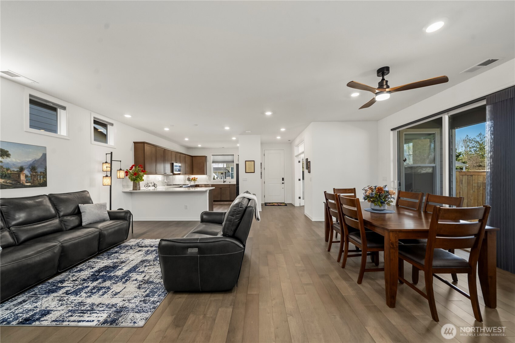 Resort 55+ living at Trilogy at Tehaleh! This better-than-new residence is ideally positioned on a premium corner lot with serene views of a protected natural preserve. Showcasing over $100,000 in Shea & owner upgrades, this home is a masterclass in 'Classic Chic' design. Beautiful, engineered hardwood flooring flows seamlessly throughout. The stunning kitchen features premium quartz counters, full-height backsplash, soft-close cabinetry, crown molding, & under-lighting. High-performance GE appliances are anchored by a Samsung Smart Refrigerator with Beverage Center, with the seating bar providing a natural social hub. The open-concept design offers a spacious great room and dining area. In addition to a convenient powder room, the primary suite is a true retreat with a private entrance to a spa-inspired ensuite featuring quartz counters, double sinks, a frameless glass shower & designer tile. The laundry/mudroom includes a Samsung washer & dryer with smart storage. And let’s not forget the versatile second bedroom/den with French doors, perfect for a guest suite or home office. Step outside to your private oasis & enjoy a glimpse of Mt. Rainier & the beautiful outdoors from your composite deck, featuring river rock beds, a paver sidewalk, & a soothing water fountain. With HOA-maintained yard care doing the heavy lifting, you’re free to relax and enjoy the 40 miles of trails, parks, & your private Seven Summits Club—the ultimate lock-and-leave luxury lifestyle.