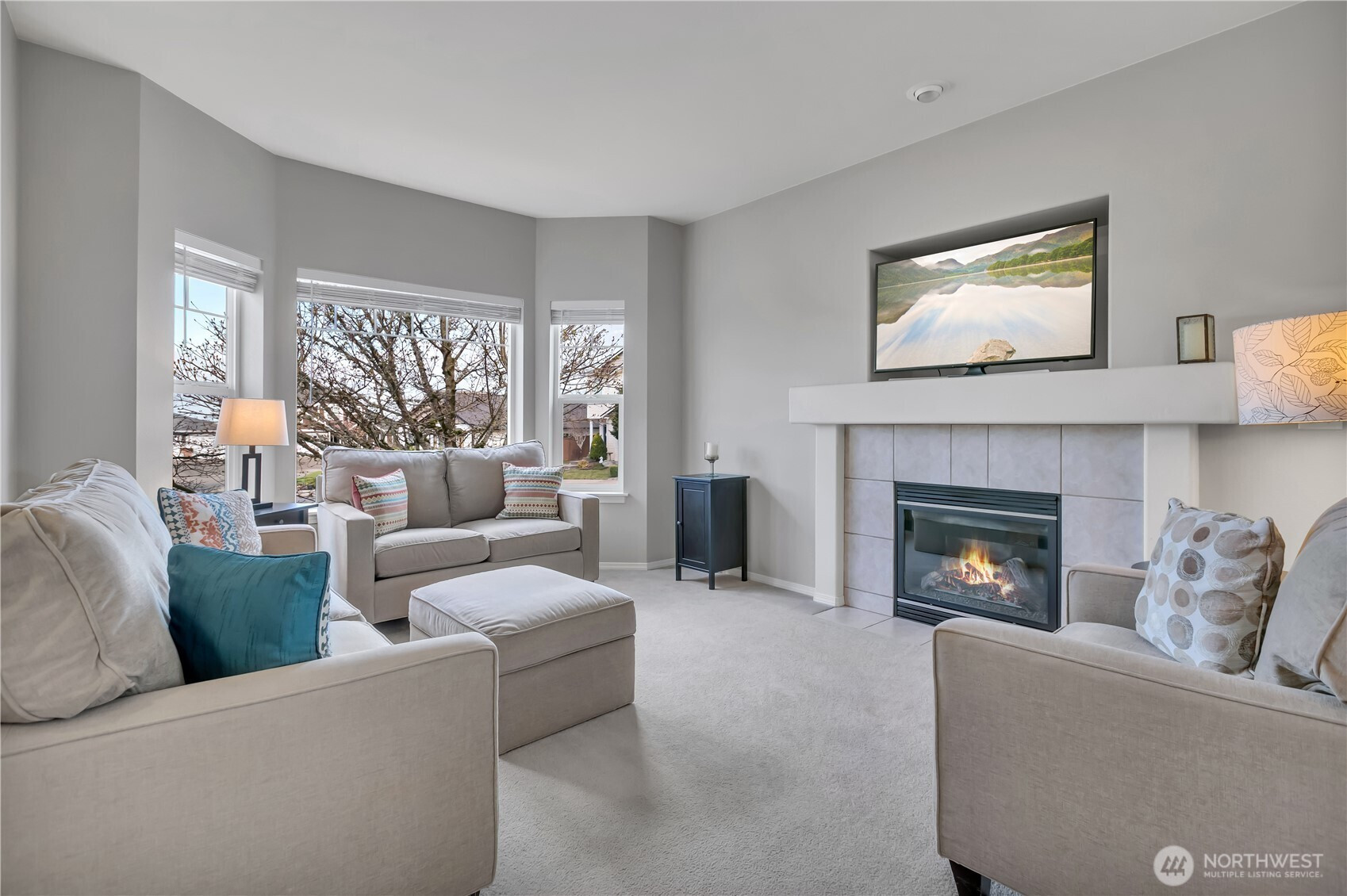 Welcome home to this beautiful residence that shines with pride of ownership, located in the desirable Panorama Heights neighborhood of Sky Island. This well-maintained 3-bed, 2.5-bath home offers 1,677SF finished living space PLUS an upstairs 200SF unfinished bonus room—bringing the total to just under 2,000SF & offering instant equity potential. Open, light-filled kitchen features eating area & sliding glass door leading out to the side yard, perfect for indoor-outdoor living. It comes fully equipped with new GE gas range & microwave, Bosch dishwasher, GE side-by-side refrigerator & new garbage disposal. Formal dining area flows seamlessly into the beautiful living room, complete with cozy gas fireplace. Upstairs, you will find the primary suite with full bath, 2 additional good-sized bedrooms, a full hall bath, laundry room with washer/dryer included & an open loft area at the top of the stairs. Major systems have been recently serviced, including the heat pump/furnace & water heater, offering peace of mind to the next owner. Fenced side yard features new sod, while the front yard showcases low-maintenance rock landscaping with pavers along the side. The property also includes a 2-car garage accessed off the alley, & additional designated off-alley parking. Conveniently located near schools, shopping & nearby park— and just minutes to all the amenities Bonney Lake has to offer—this home blends functionality & opportunity in a highly sought-after community.