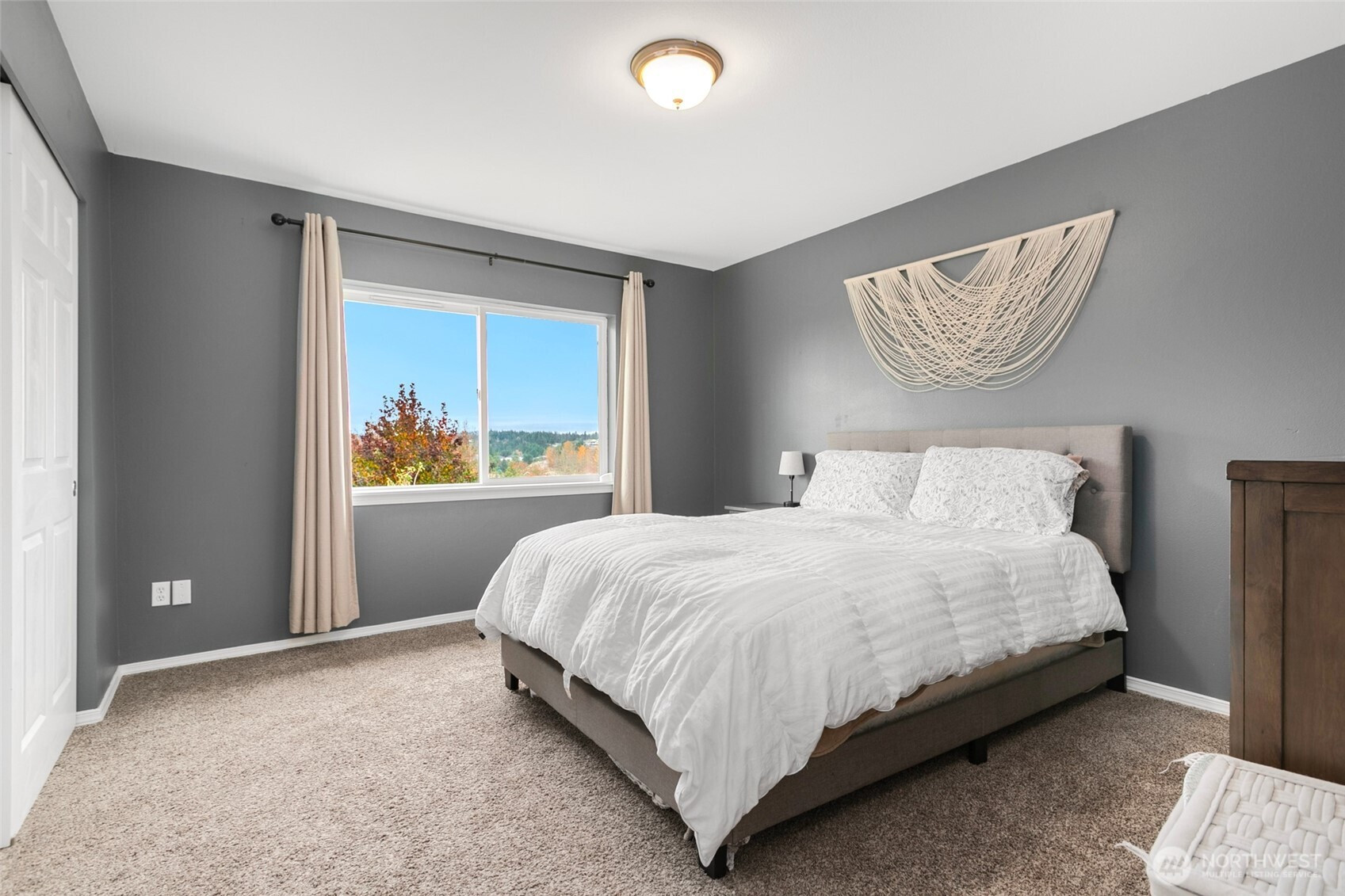 Striking NW Contemporary style 5 bedroom/2.5 bath home in the sought-after Panorama Heights. The gourmet kitchen is a cook's delight w/custom maple cabinetry, walk-in pantry, & huge eating bar. Spacious primary bedroom complete w/5-piece spa like bath w/soaking tub, 4-foot tile shower, & walk-in closet. The additional upper-level bedrooms are generously sized w/territorial views, deep closets, & full bath. Added bonus of loft area/rec room on the upper level. Luxury appointed finishes include wainscoting, rounded corners, crisp white millwork, custom blinds, & sprinkler system. The fully fenced backyard is a private oasis w/easy to maintain landscaping. Conveniently located near award-winning schools, Bonney Lake Park & Ride, and Hwy 410.