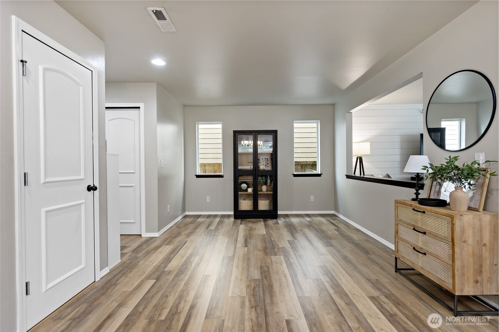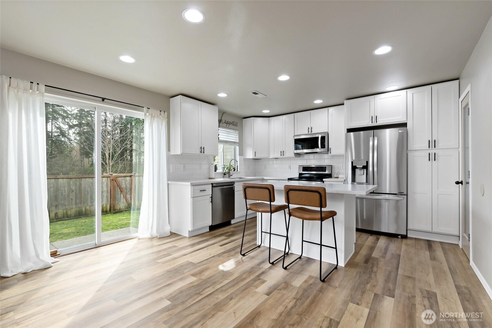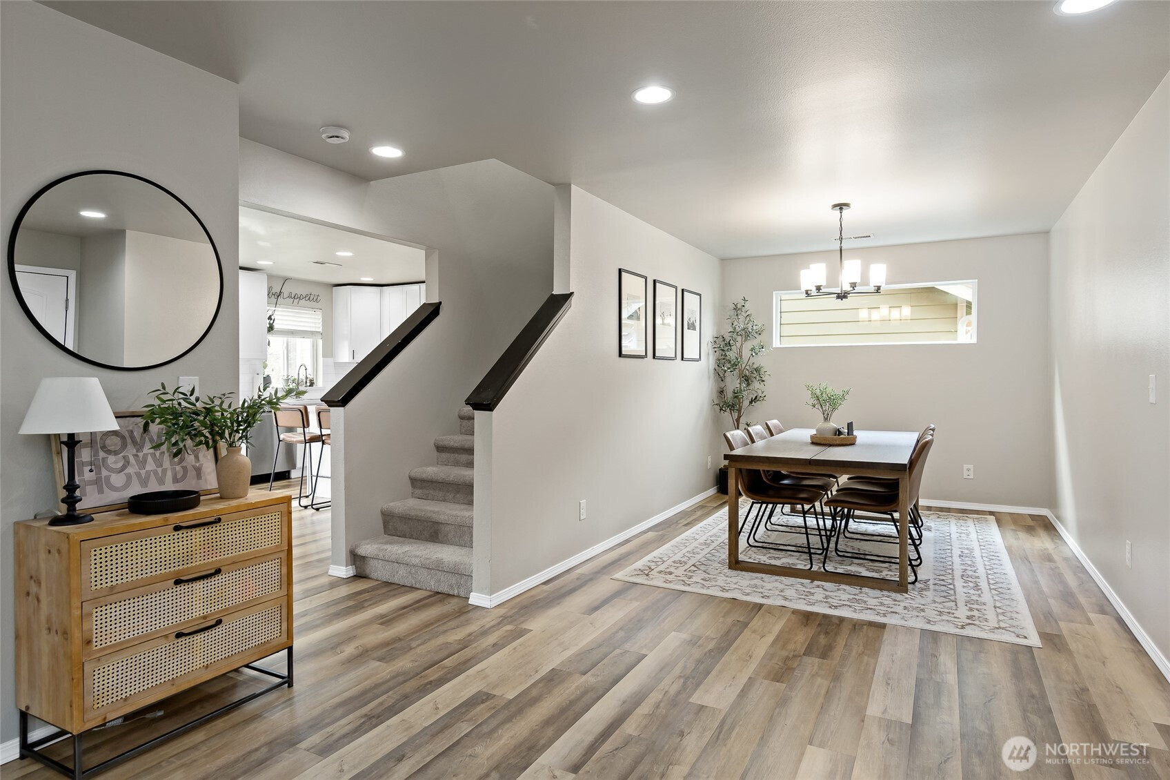 Bright and fresh move in ready home. Large entry way opens to a designated living space and formal dining room. Kitchen boasts a walk in pantry, solid surface countertops and large island, perfect for cooks and hosts alike. Half bath convienently located on the first floor. Upstairs you'll find the large primary with attached bathroom and walk-in closet. Three additional bedrooms, a hall bathroom and the laundry room also on the upper level. Fully fenced back yard with oversized patio perfect for relaxing or grilling. Groceries, shopping and dining nearby!