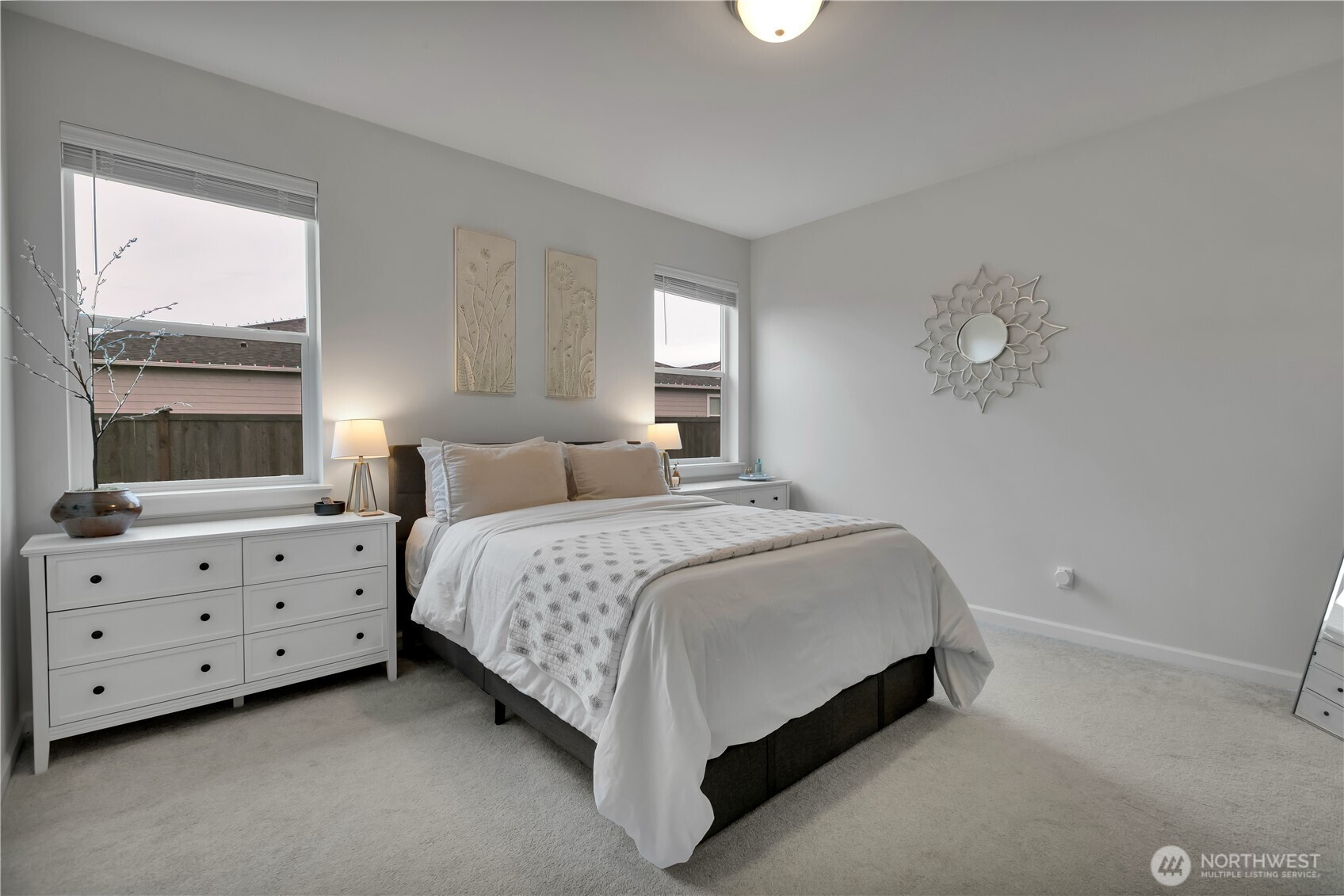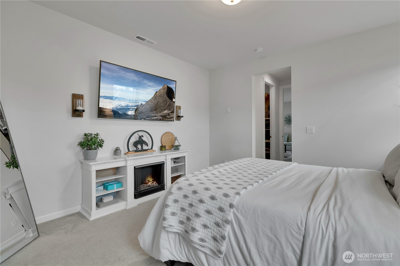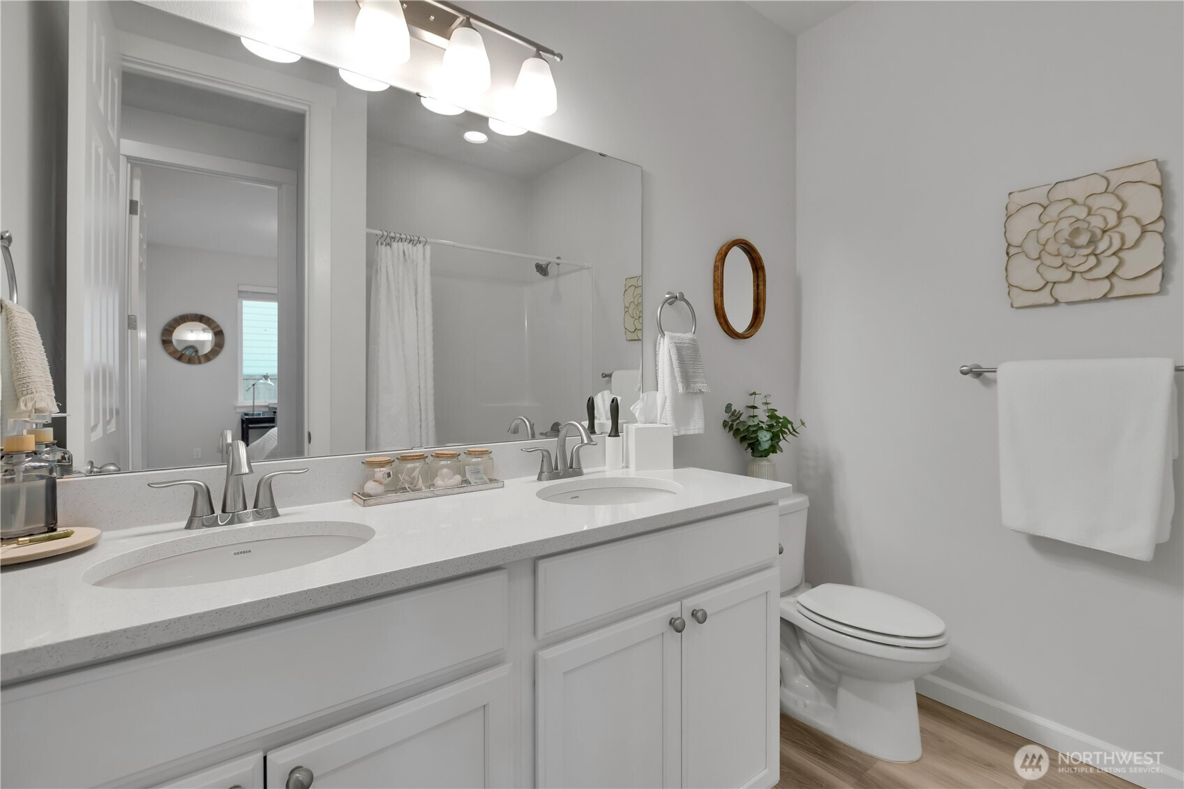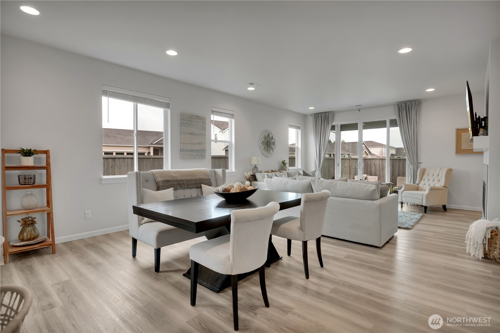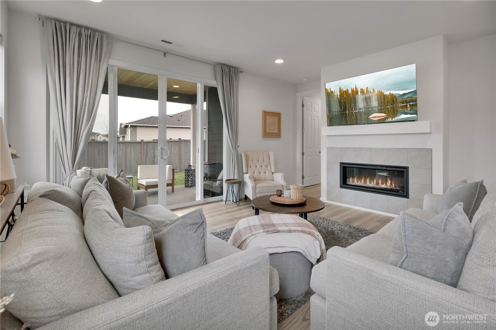 BEAUTIFUL 4 bedroom Puyallup rambler on a large corner lot with a 3 car garage! Fantastic open floor plan offers a spacious living room w/cozy gas fireplace, dining room & kitchen with quartz counters, tile backsplash, white cabinetry, island that has seating, pendant lights, light LVP flooring, stainless steel appliances including a counter-depth fridge, a pantry, & lots of windows for natural light. Nicely sized primary suite with walk in closet & bath with a walk-in shower. Three more bedrooms & a full bath for guests. Laundry room with washer & dryer that stay. Covered front entry & back porch, fully fenced private yard! (surrounded by mostly ramblers) Sunrise community offers parks, trails, dog parks, a splash pad, & zipline!