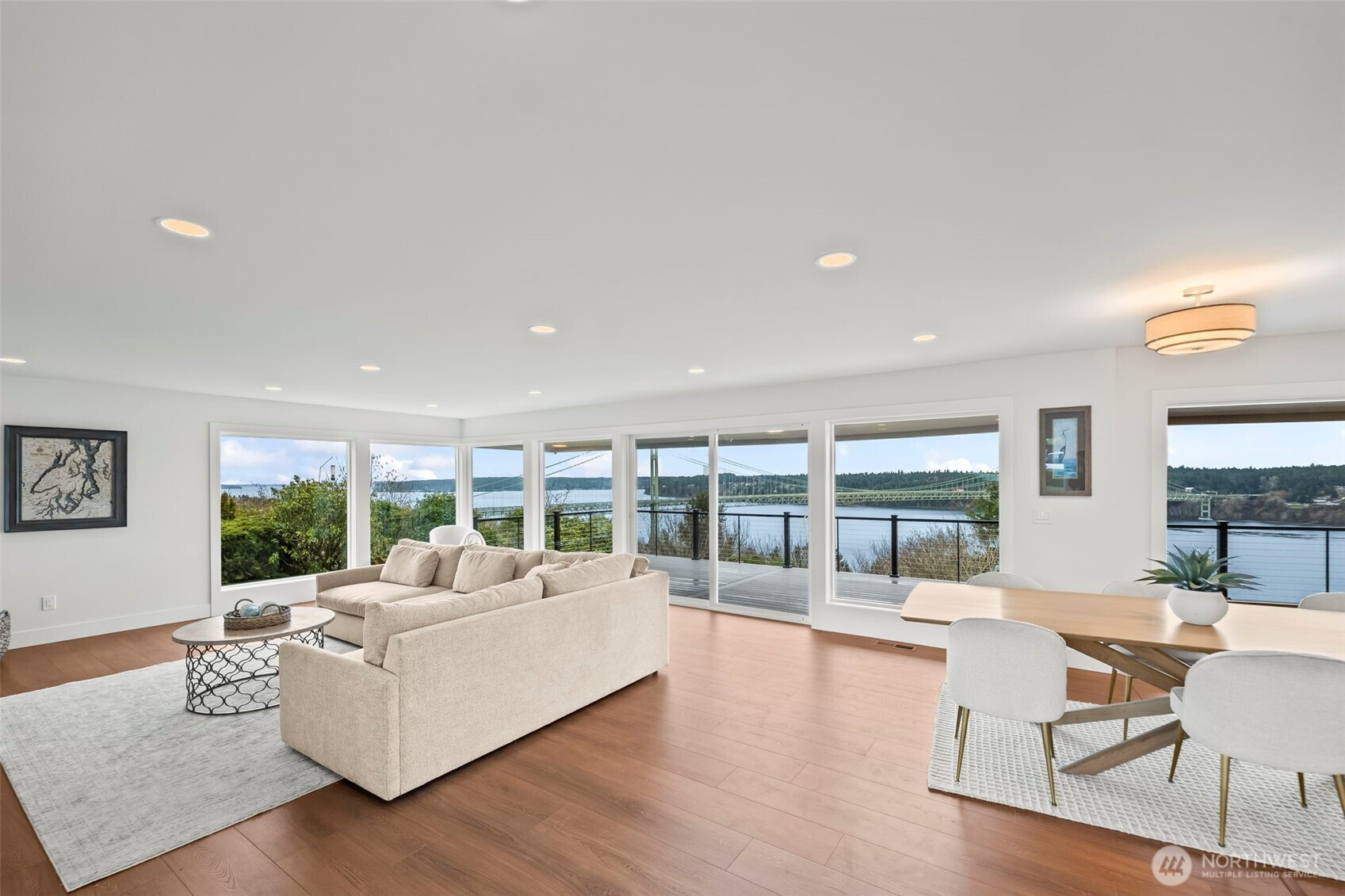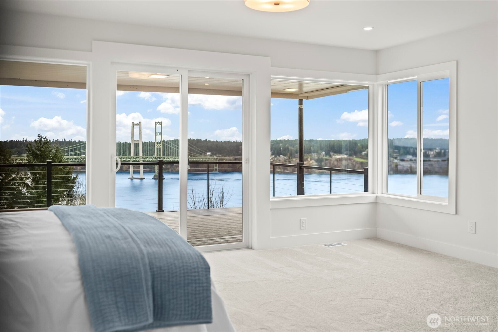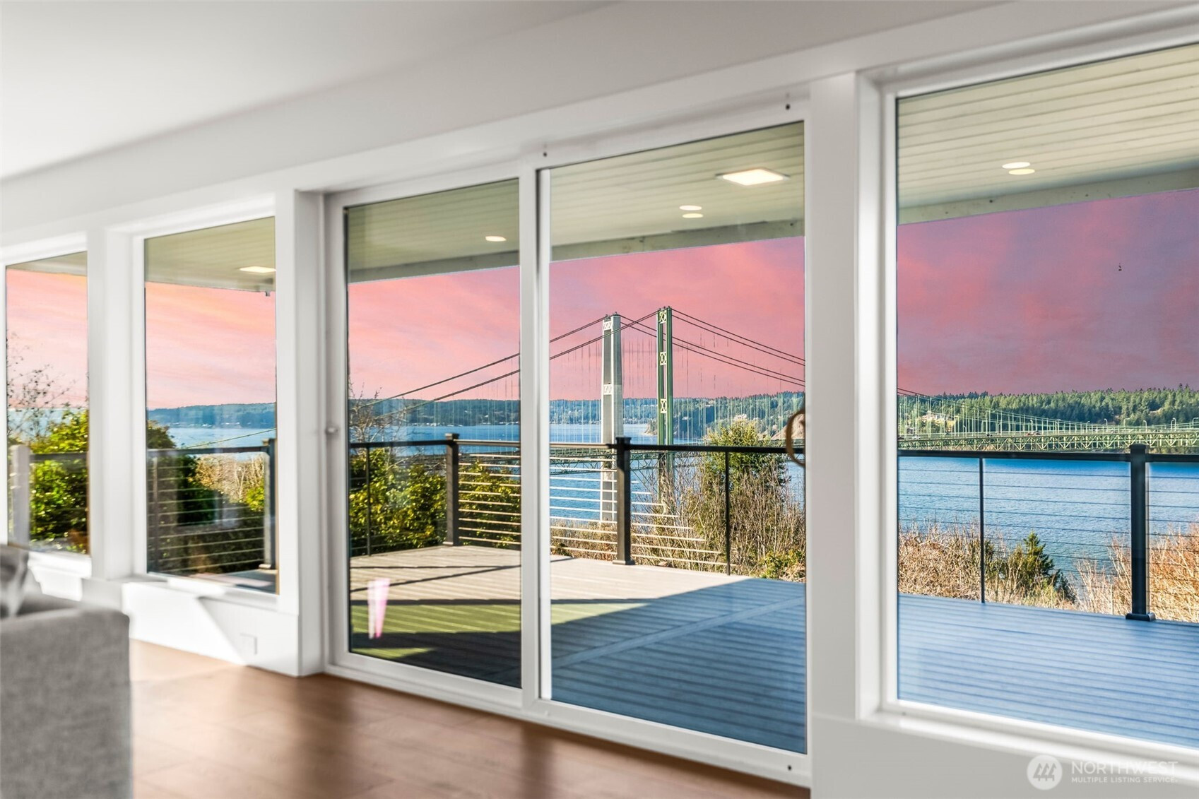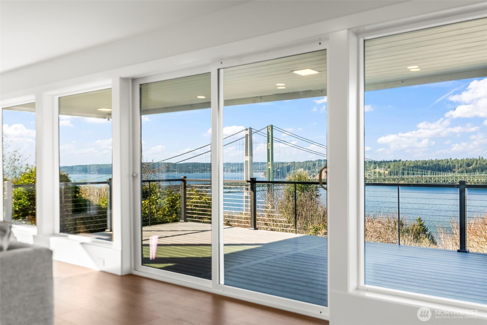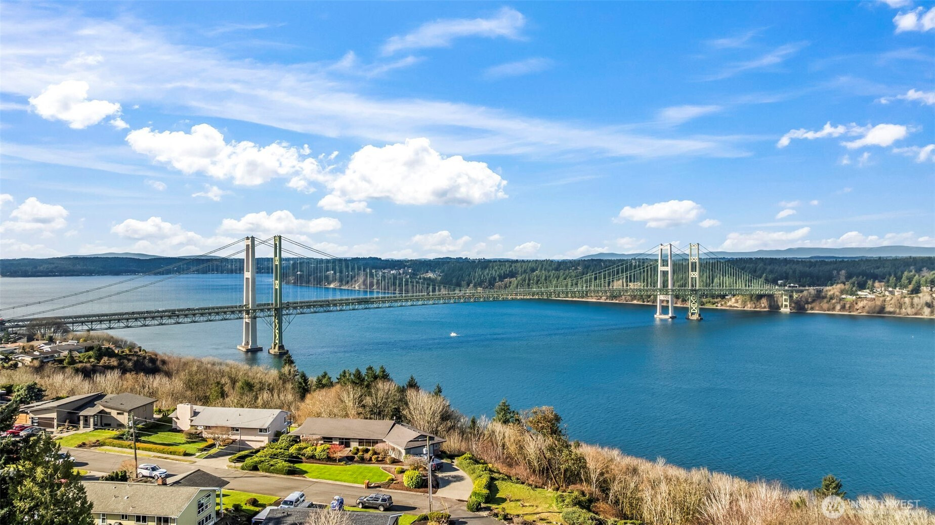 Enjoy unobstructed, front-row views of the water, Narrows Bridge, and Cascade Mountains from this exceptional 3-bedroom, 3-bath home. The sweeping panoramic scenery takes center stage- offering breathtaking sunrises, sunsets, and sparkling evening lights. The open-concept living space flows effortlessly to an expansive view deck, creating the perfect setting for elevated entertaining or peaceful evenings overlooking the Sound. A spacious chef’s kitchen features custom cabinetry, abundant storage, quartz countertops, and elegant wine fridge. The primary suite offers a custom bath and shower, generous walk-in closet, and private access to the deck with stunning views. The expansive lower level provides additional entertaining space, fireplace, full laundry room, and flexible living quarters ideal for guests or multi-generational living. Privately situated on a quiet dead-end street, yet less than a mile from freeway access—this home offers the perfect blend of luxury, privacy, and unmatched Tacoma views.