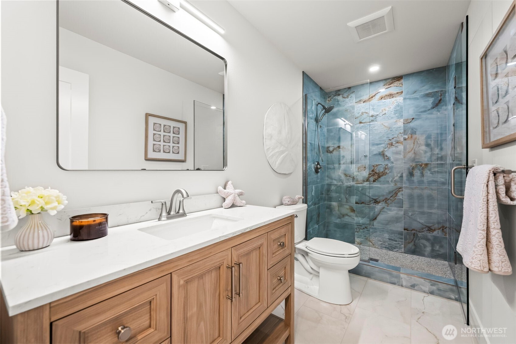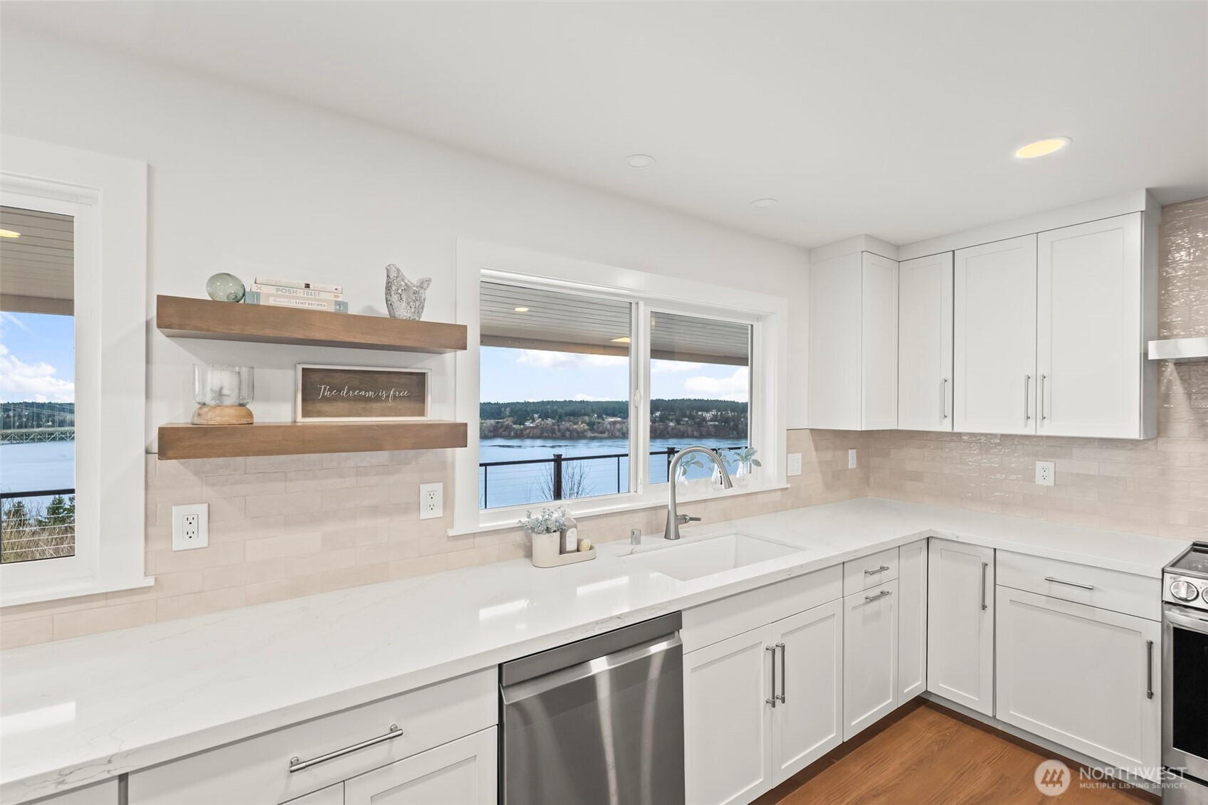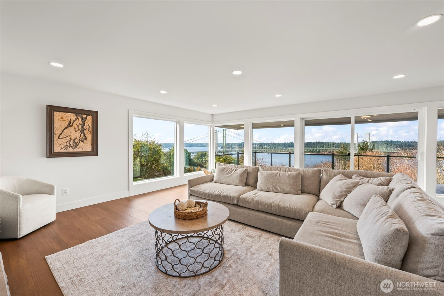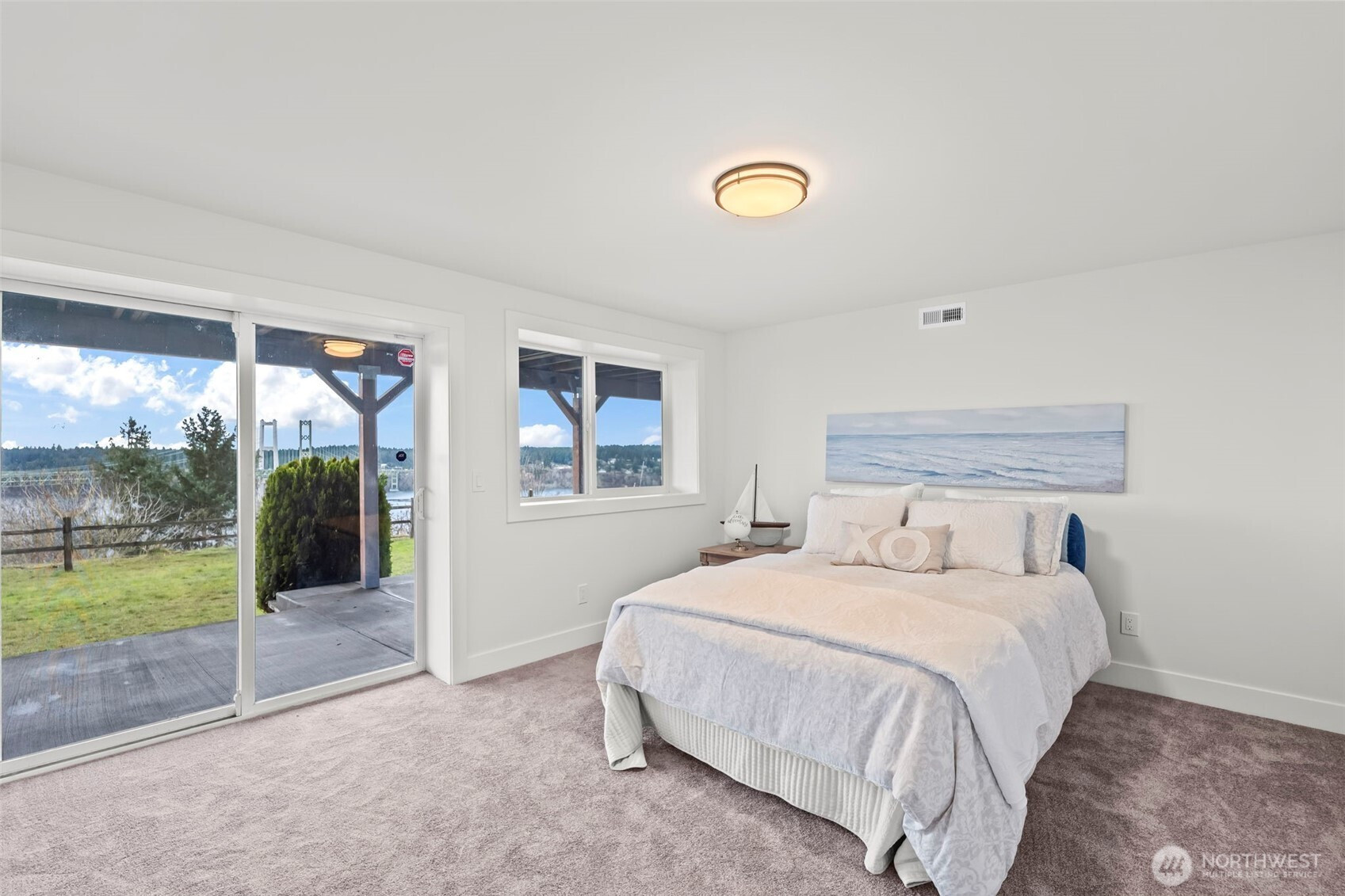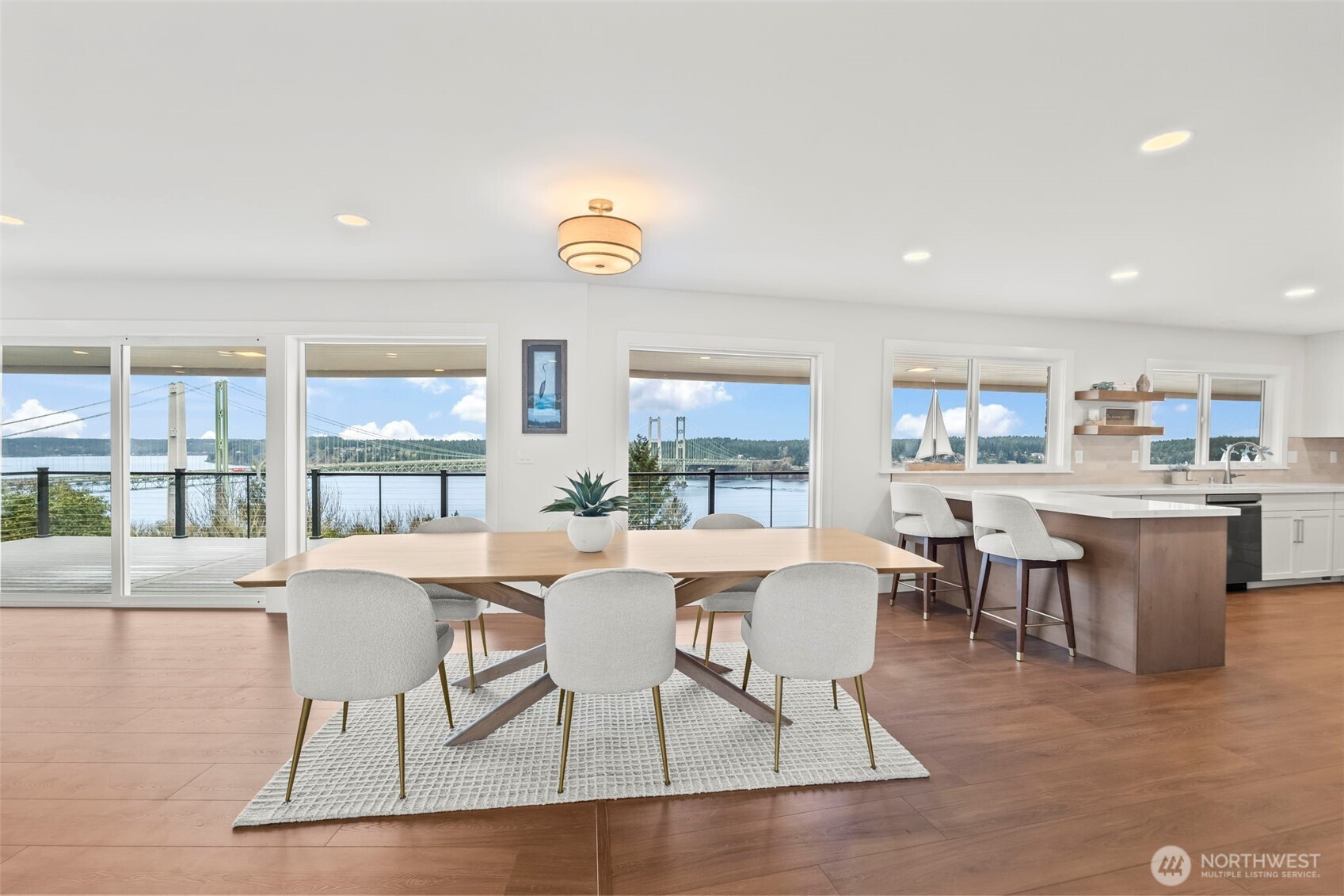 Enjoy unobstructed, front-row views of the water, Narrows Bridge, and Cascade Mountains from this exceptional 3-bedroom, 3-bath home. The sweeping panoramic scenery takes center stage- offering breathtaking sunrises, sunsets, and sparkling evening lights. The open-concept living space flows effortlessly to an expansive view deck, creating the perfect setting for elevated entertaining or peaceful evenings overlooking the Sound. A spacious chef’s kitchen features custom cabinetry, abundant storage, quartz countertops, and elegant wine fridge. The primary suite offers a custom bath and shower, generous walk-in closet, and private access to the deck with stunning views. The expansive lower level provides additional entertaining space, fireplace, full laundry room, and flexible living quarters ideal for guests or multi-generational living. Privately situated on a quiet dead-end street, yet less than a mile from freeway access—this home offers the perfect blend of luxury, privacy, and unmatched Tacoma views.