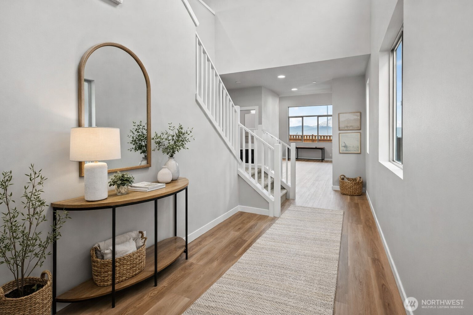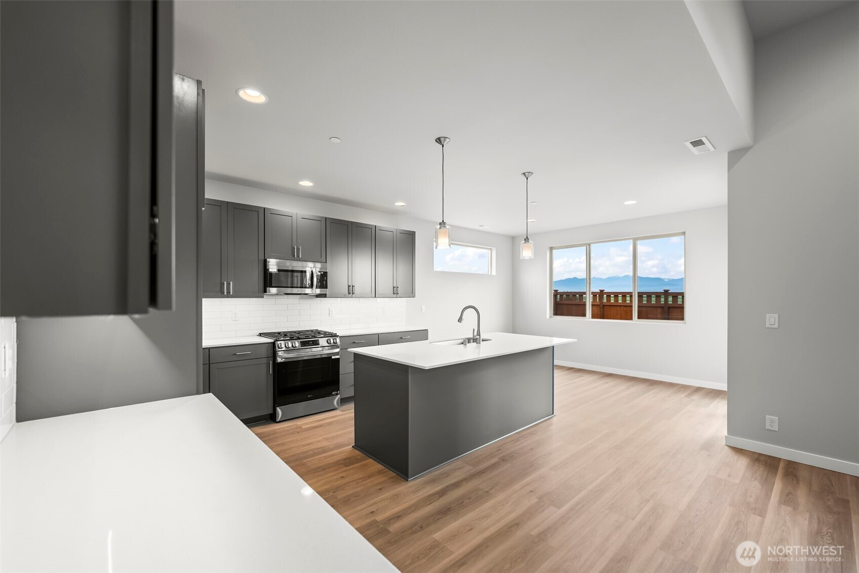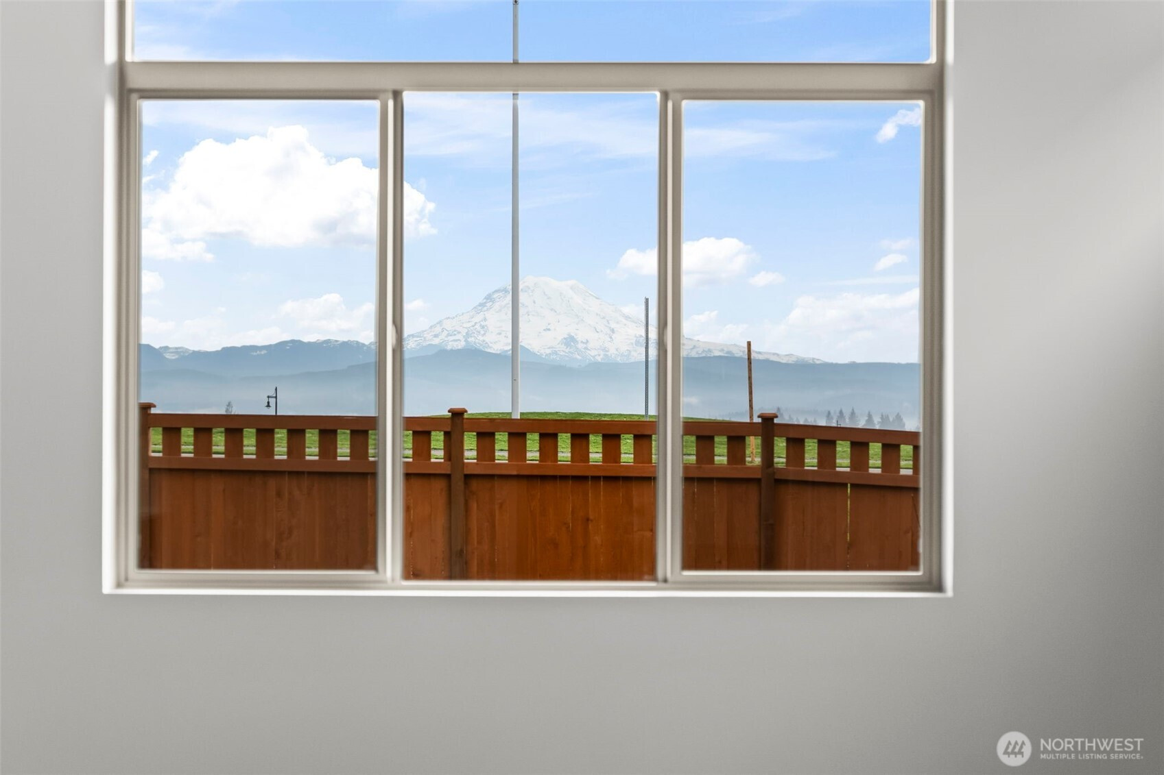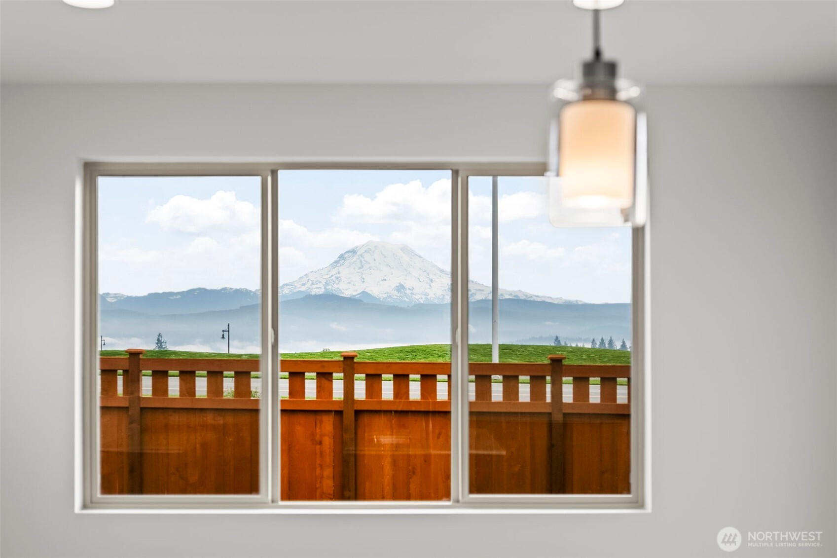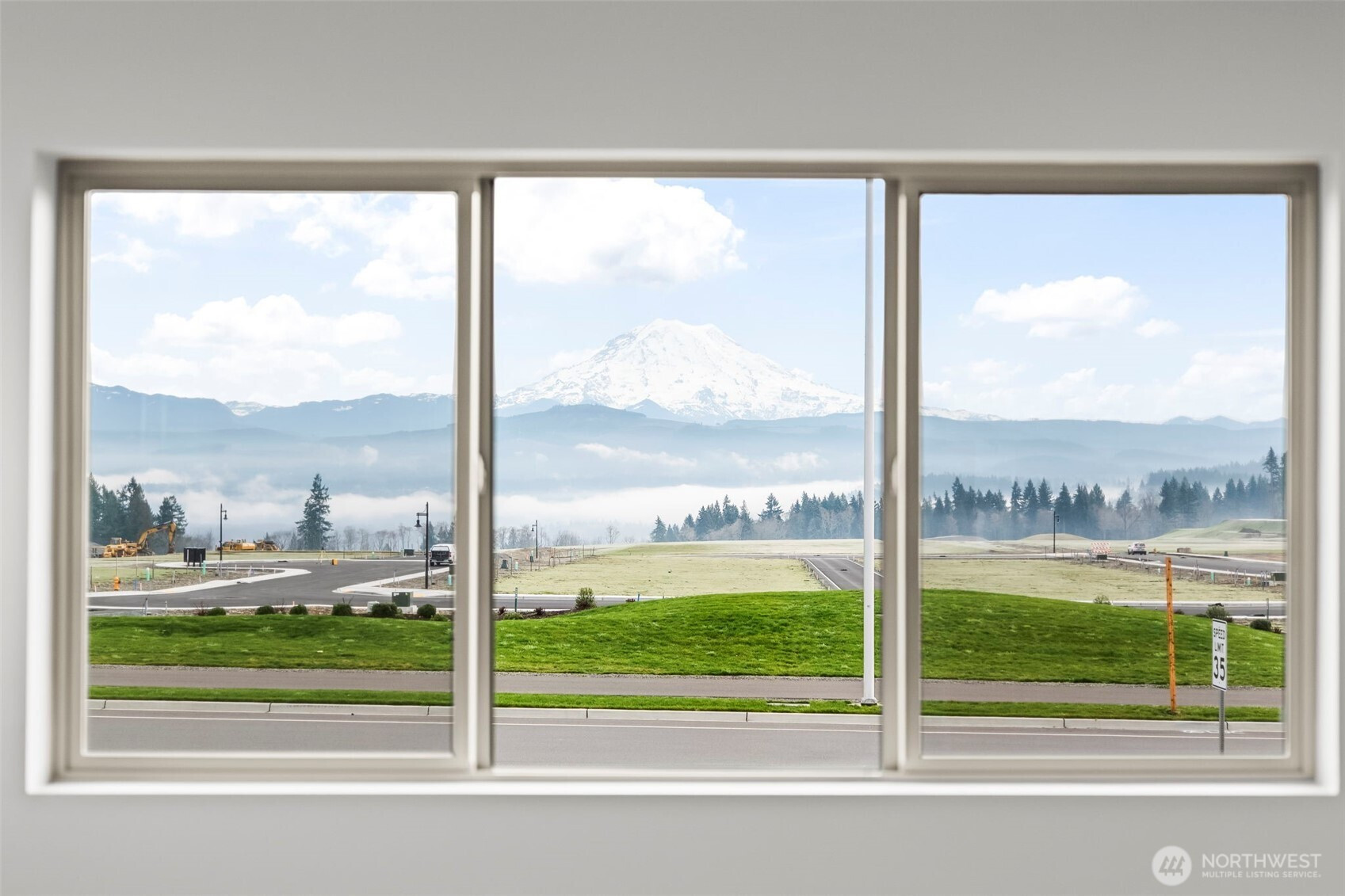 Welcome to the Junco Plan by Conner Homes - where sweeping Mt. Rainier views greet you at the door and extend throughout the main living areas. This thoughtfully designed 4-bedroom, 2.75-bath home offers a desirable main-level bedroom with a ¾ bath—ideal for guests, multi-generational living, or a private home office. Open-concept great room showcases soaring 12-foot ceilings, expansive windows framing the mountain & floor-to-ceiling tile linear electric fireplace. The kitchen features stainless steel appliances including a 5-burner gas range, quartz counters, full-height tile backsplash, under-cabinet lighting, and a spacious walk-in pantry. Upstairs, an oversized loft provides flexible space for recreation or relaxing. The primary suite is a true retreat with unobstructed Mt. Rainier views, offering peaceful mornings and unforgettable sunsets. The attached bath includes dual undermount sinks, a freestanding soaking tub, tile shower & walk-in closet. Residents enjoy access to the newly completed clubhouse with fitness center, pools, hot tub, and 24+ acres of parks & walking trails. Experience the Conner Difference—exceptional move-in-ready homes with impeccable craftsmanship, designer finishes, and premier view locations within the Taragon master-planned community. Locally owned and operated, Conner Homes has been building quality homes in the Pacific Northwest for over 65 years.