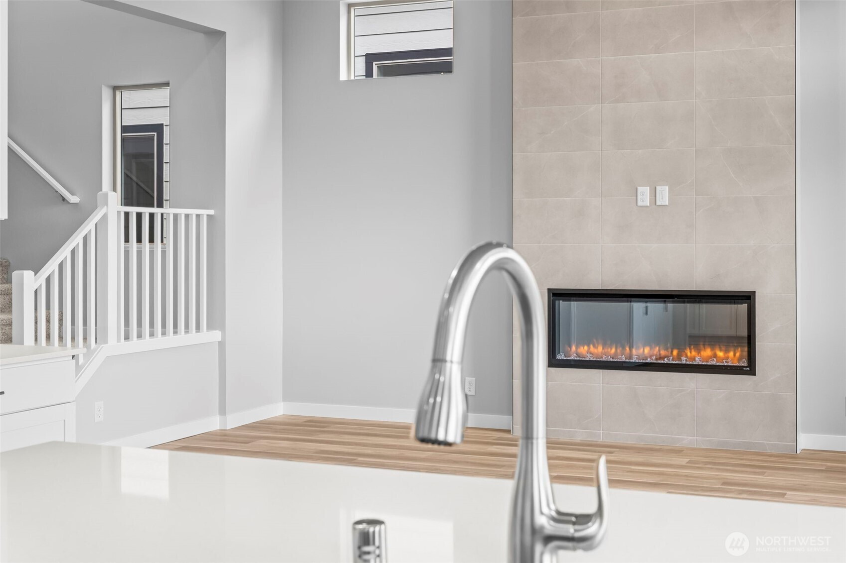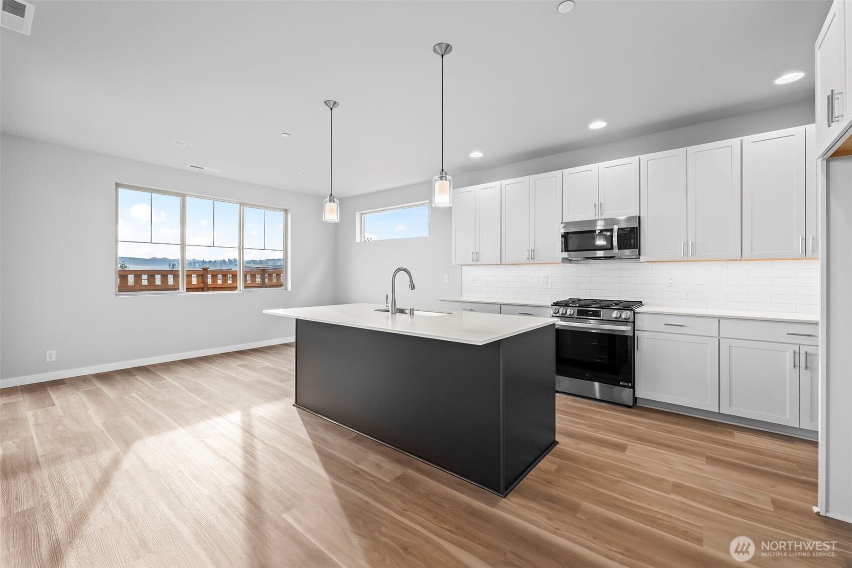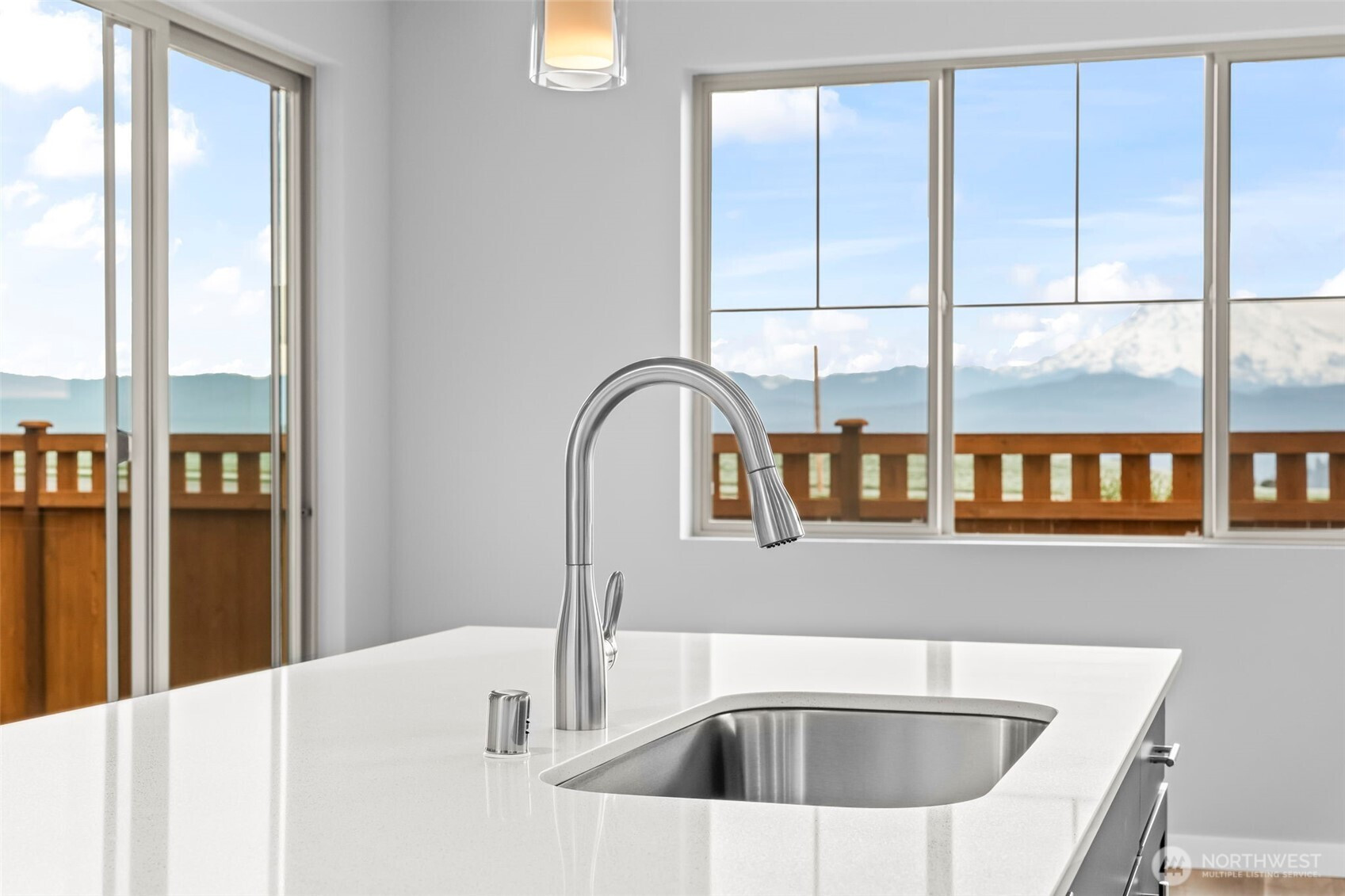 Iconic Mt. Rainier views and breathtaking sunsets truly set this home apart. Conner Homes presents the Falcon - A thoughtfully designed multigenerational floor plan offering exceptional flexibility. Main level guest suite with separate entry, washer & dryer hookups & attached 3/4 Bath with kitchenette including sink, microwave/convection oven & sink. The main living area of the home offers the perfect office alcove with windows for a light and bright work area. In the heart of the home you will be greeted by soaring 12 ft ceilings and floor to ceiling tile linear electric fireplace. Kitchen boast white shaker style cabinets with dark accent island. Quartz Counters w/ full height tile backsplash & 5 Burner gas range w/ large single bowl undermount farm sink. Large walk-in pantry with shelving & outlet plus under cabinet lighting. Upstairs offers a large loft with the primary on onside and additional bedrooms on the other. Primary suite offers vaulting ceilings, walk-in closet & 5 PC bath with tile floors and free standing soaking tub and Mt Rainier is front and center from the large primary window. Additional 2 bedrooms and full bath and laundry room with ample storage. Fully fenced and professionally landscaped. This home is minutes to the brand-new uplands clubhouse. Included with your HOA dues this clubhouse offers a gym, pools, hot tub and places to gather including large fire pit & meditation pond + over 24 acres of walking trails & parks!