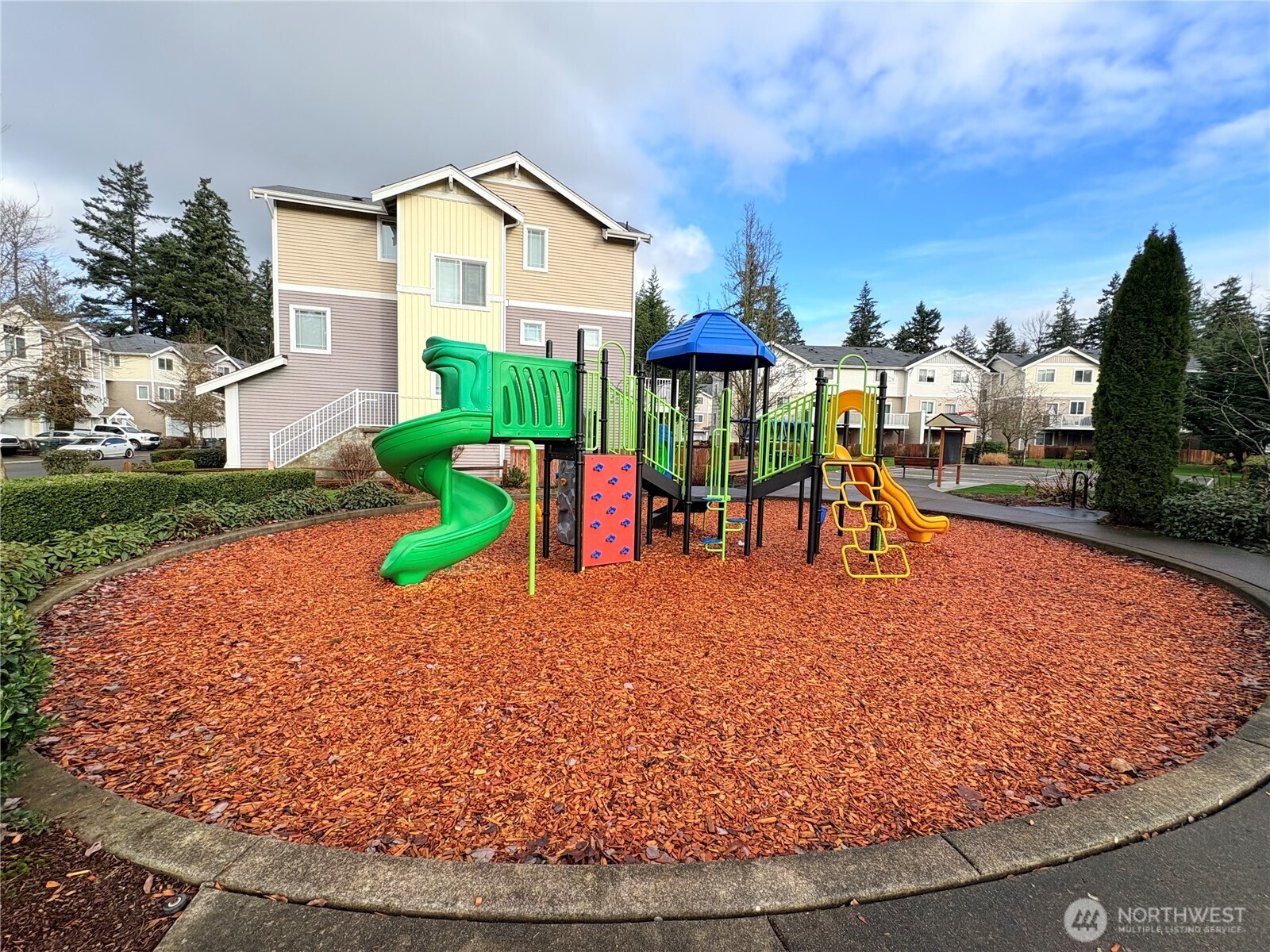 Potential for a third room or office! This charming end-unit townhome is located in front of a playground and next to a dog park in a small neighborhood. The open-floor concept is perfect for entertaining friends with quick access to shopping, dining and entertainment options, you'll love this home. It also features a huge garage with plenty of space for parking and storage. New roof will be installed in February, paid for already. Low HOA dues covers roof and green common area maintenance.
