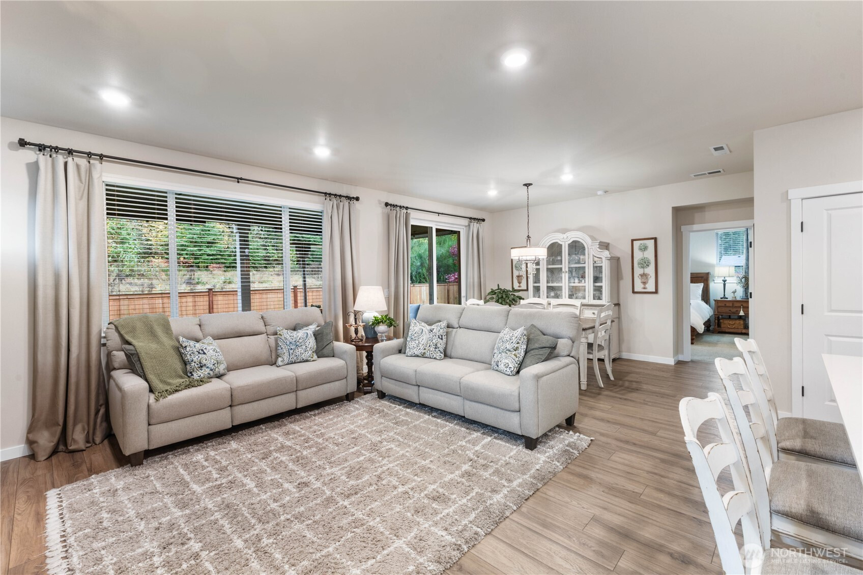 Welcome to this beautiful 2020 rambler nestled in the peaceful Falling Water community just minutes from Bonney Lake. This thoughtfully designed 1,874 sq. ft. home sits on a 6,000 sq. ft. lot backing to a serene greenbelt, offering privacy and natural beauty. The open-concept layout features 3 bedrooms plus a dedicated office, perfect for today’s lifestyle. The kitchen offers quartz countertops, stainless steel appliances, a gas range, and a walk-in pantry. The private primary suite includes a luxurious 5-piece bath with soaking tub and generous walk-in closet. Out back, enjoy relaxing or entertaining under the large covered patio. Move-in ready and impeccably maintained — this home offers peaceful living with modern comfort and style.