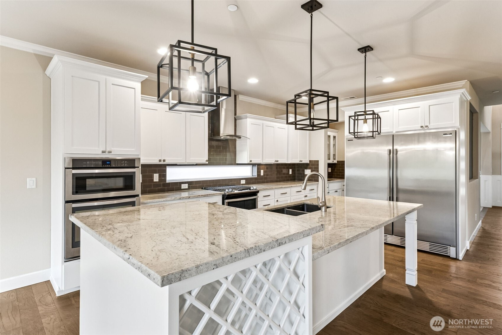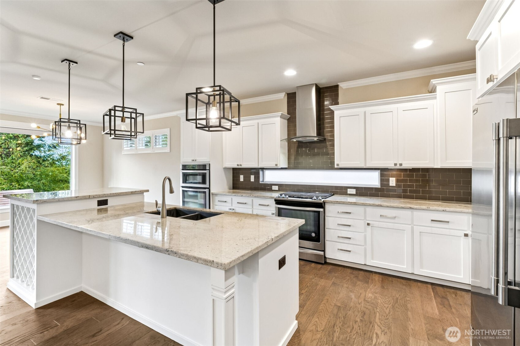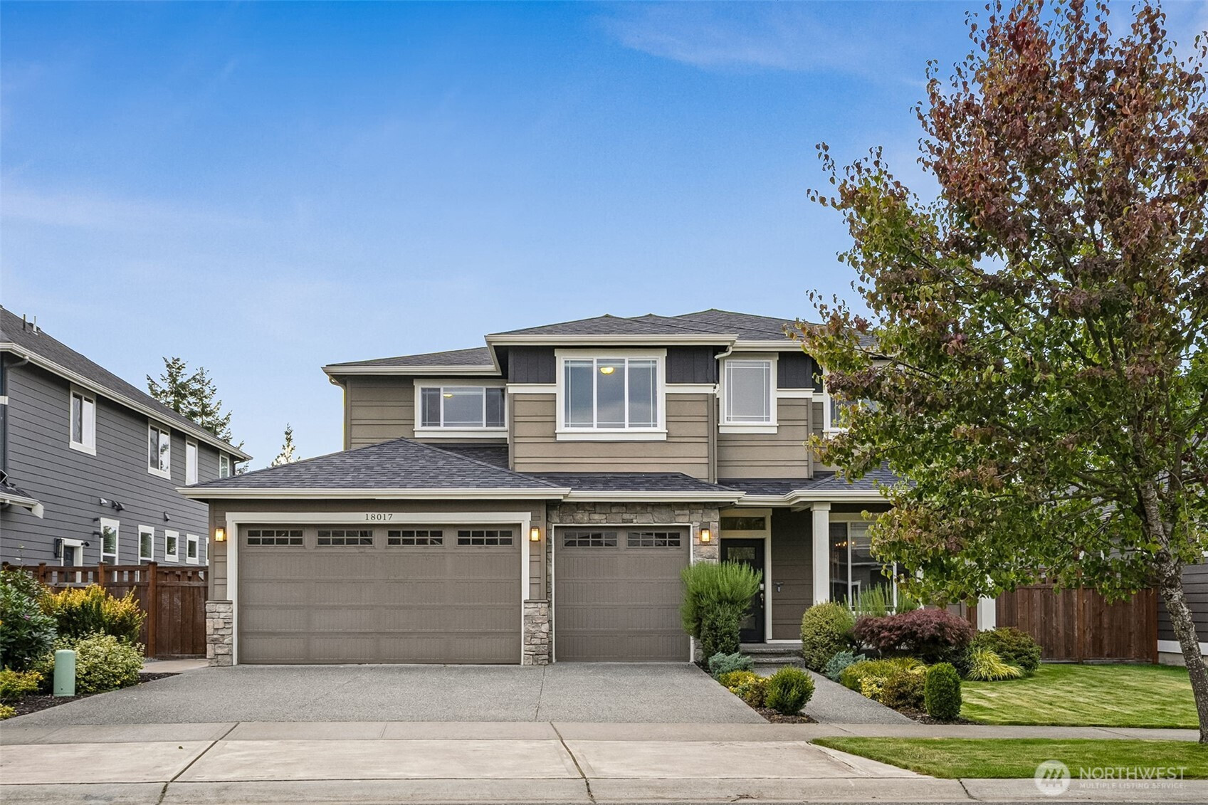(503) 893-8874Beautifully maintained home in the SBLSD, backing to a greenbelt w/a lg yard & tons of extras! Enjoy freshly painted cabinetry throughout the kitchen, baths, and living room built-ins. The main level features a bedroom next to a ¾ bath, mudroom entry from the 3-car garage, and a stunning covered patio with remote blinds and outdoor TV. The daylight basement offers a full suite with bedroom, bath, kitchenette, large living area, and theatre/multi-use room. Front and back sprinklers, concrete patio, shed, garden beds, EV charger, swing set & more complete this remarkable home. All of this, in beautiful Tehaleh, close to schools, dining, parks, and over 30 miles of trails!