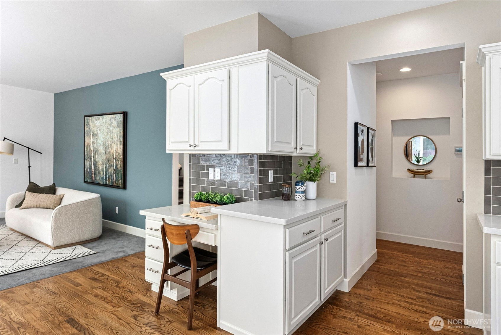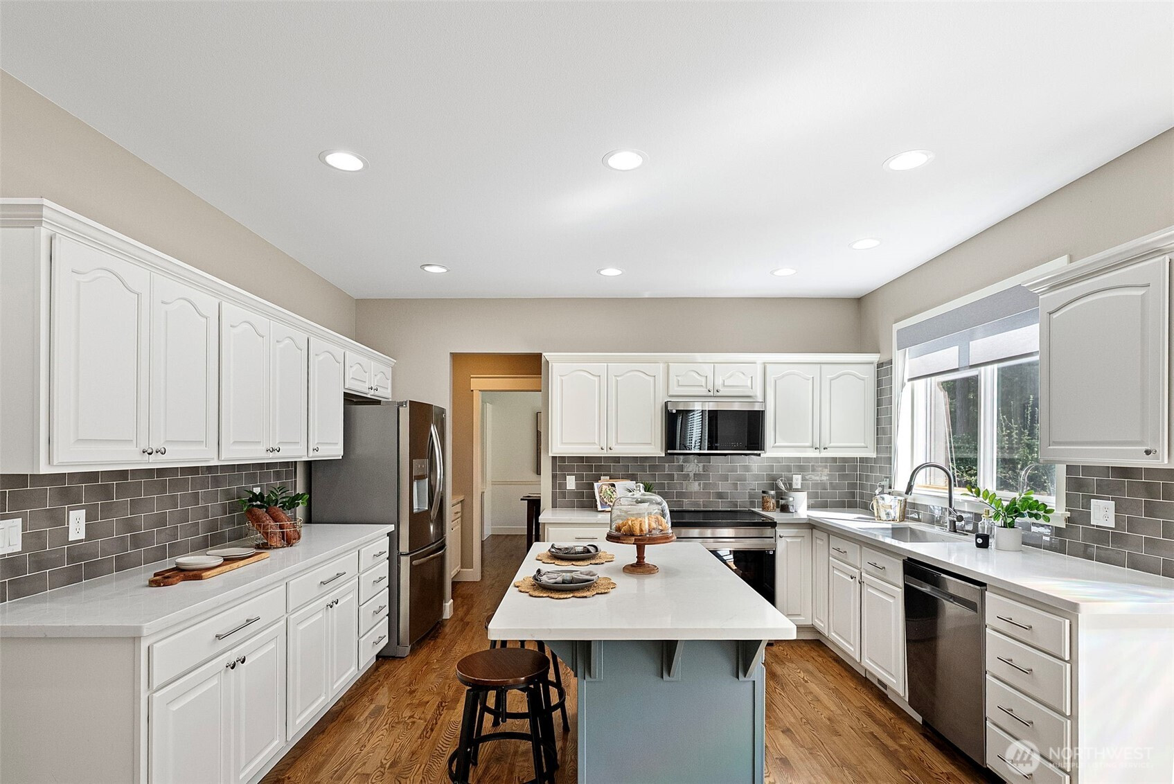 Would you like a home upgraded with high-quality healthy choices, a quick commute, minutes to uptown? Near $200k invested in 2024-25 enhance this well-designed home in lovely Southport, featuring a dreamy white kitchen, spacious laundry and pantry, cocktail bar, and hardwood floors. Design features: Stunning gas fireplace in the grand entry. Dual staircases with large walk-in storage closets under each. Built-in desks and large linen closets on each floor. Huge primary and 2nd bedroom, each with a wall of windows and greenbelt view on 2 sides! Fully fenced .37ac level yard, flowering trees, apples, blueberries, bunnies, and private Cushman Trail access. Some of the thoughtful updates include a new high-efficiency HP; fresh paint; luxury 100% wool carpet (soy pad) and natural, antimicrobial floating-plank Marmoleum in key areas (cork pad) - all fire/stain resistant, non-toxic, high-performance materials with many health benefits compared to synthetics. New microwave, induction range, electric kitchen shade, and 3 ultra quiet ceiling fans. An intimate dining room was created with French doors, custom cabinets, and a glass pocket door to the bar. The primary bath has a generous linen closet and is now open and spacious with new fixtures, flooring, built-in medicine cabinet, glass pocket door (14.5’closet!), and custom cabinetry with roll-out shelves. Beautiful shake roof certified to 2030. Dream Garage shelving; quiet bay door openers. Responsive HOA; two parks! Come and see!