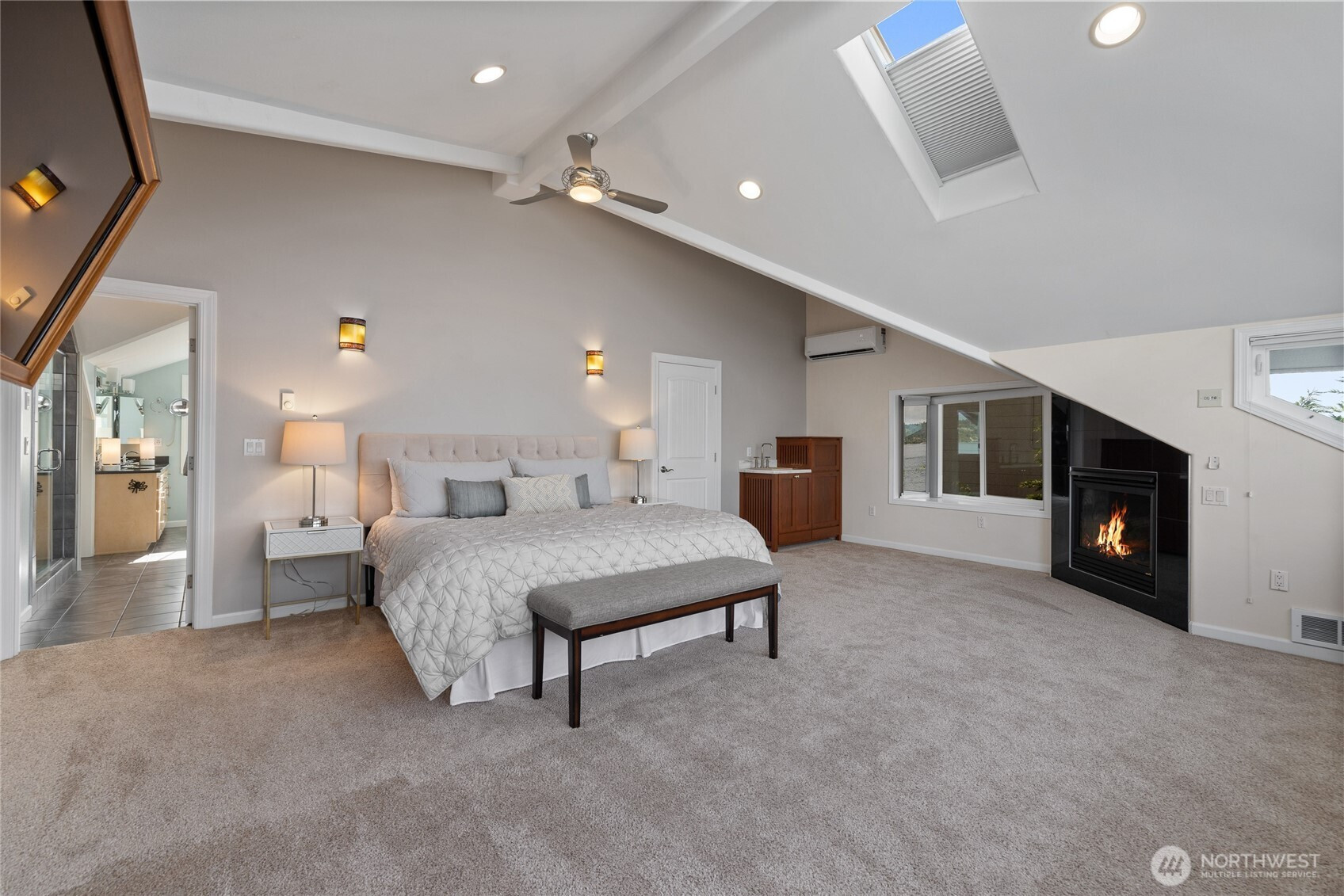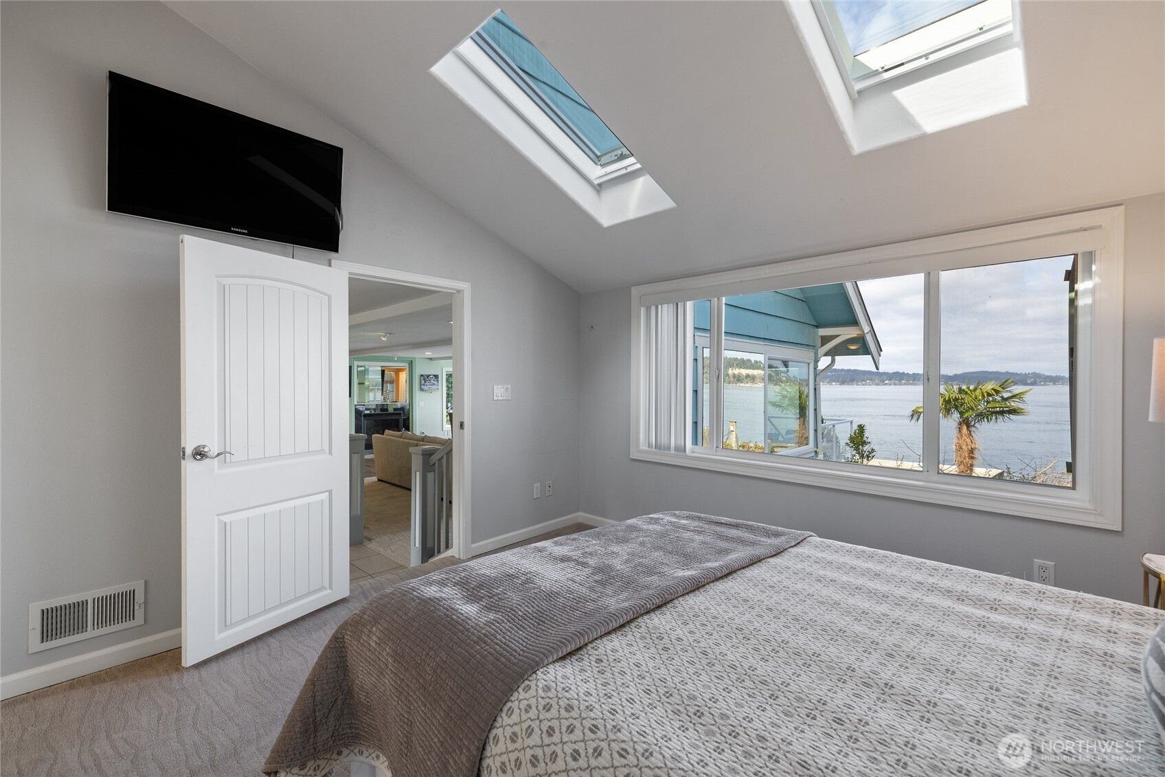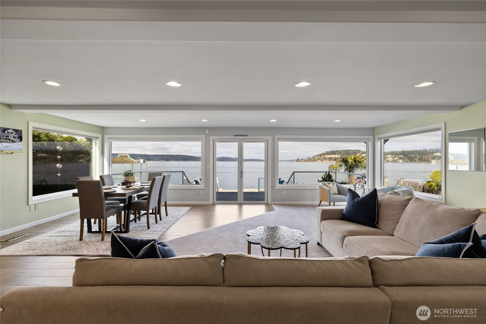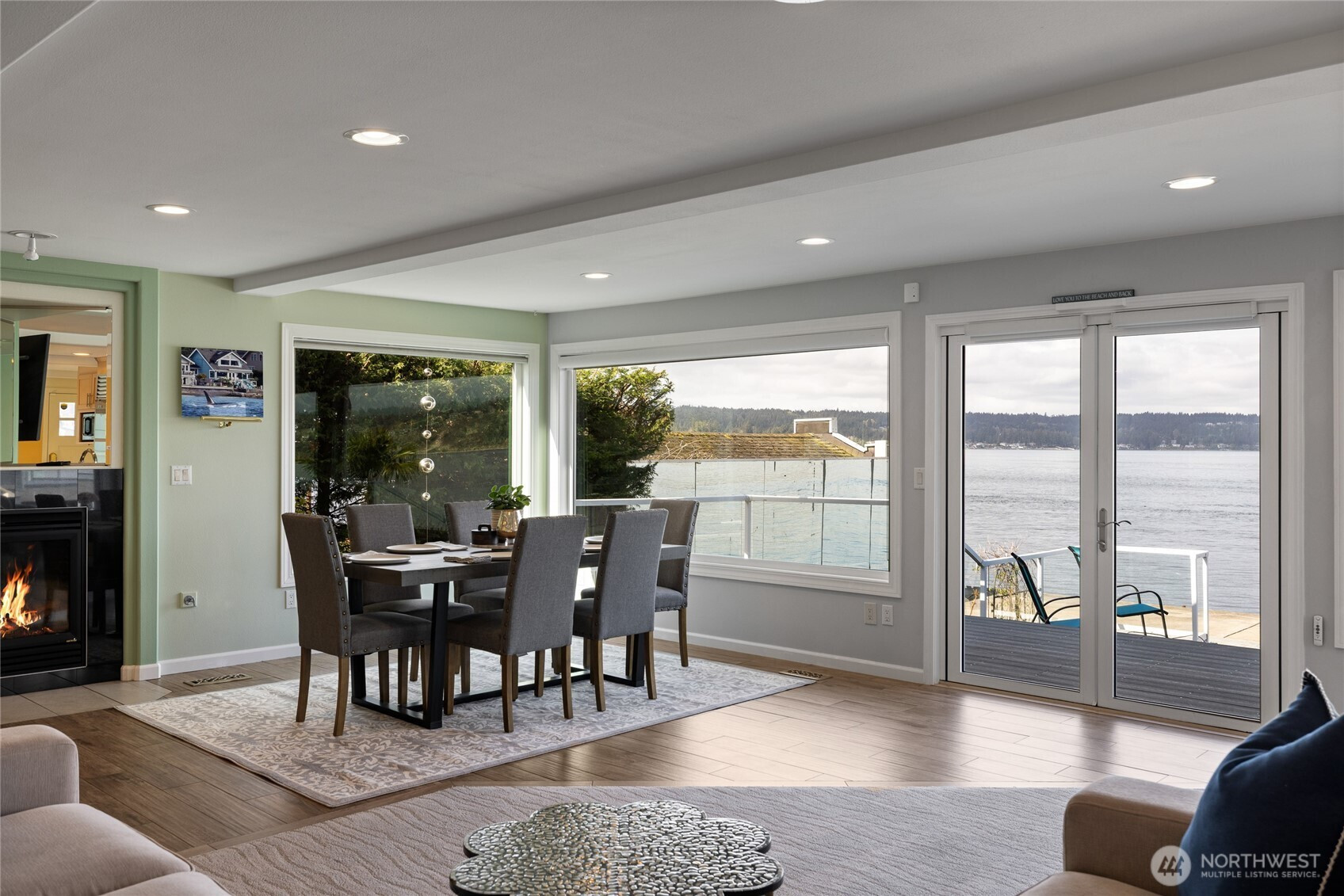 Custom remodeled, three-bedroom waterfront home on coveted Day Island! The main floor features a chef’s kitchen equipped with a Wolf range and Sub-Zero fridge, a walk-in pantry, and expansive views of the Sound and Olympics. The space flows into a dining area and a spacious living room that opens onto a multi-level composite deck. The main level also includes a Junior Suite with vaulted ceilings and a full bathroom, a cozy sitting room, and a powder room. Upstairs, the primary suite provides spectacular views, a walk-in closet, and a full bathroom. A third bedroom with marina views completes the upper floor. The outdoor living space is nicely landscaped and features an expansive patio leading to 60 feet of low-bank saltwater beach with private tideland rights. A detached two-car garage features power for EV chargers powered by rooftop solar panels.This property offers a peaceful escape with the convenience of city amenities & an award-winning school district.