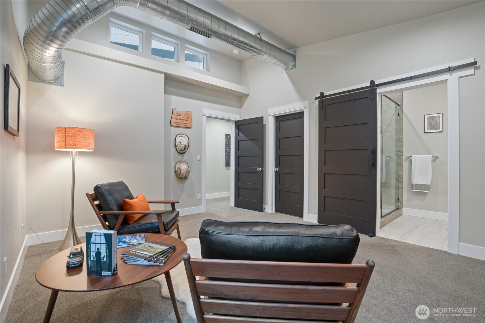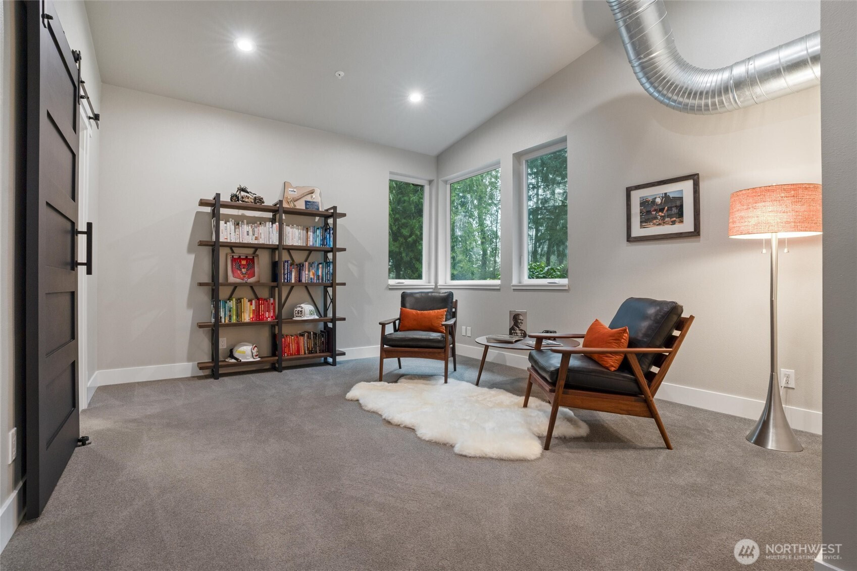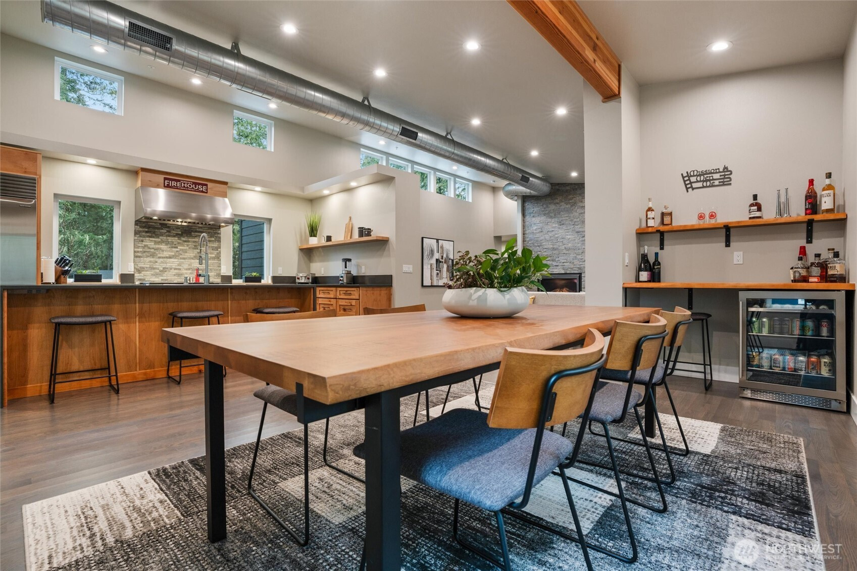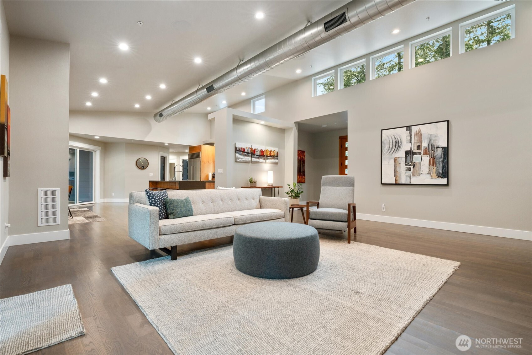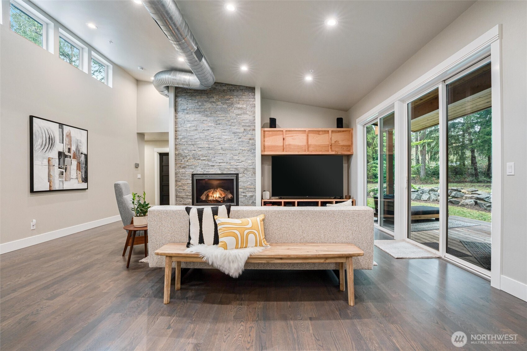 Custom architect-designed modern retreat on gated acreage in Longbranch. Designed by Mascord Design of Portland , this home blends modern, industrial, and rustic elements with exceptional privacy and livability—ideal for anyone seeking refined space in a peaceful Pacific Northwest setting. Features 3 private ensuites, with the primary suite thoughtfully separated to create a true owner’s retreat. Interior highlights include exposed spiral HVAC ducting, true white oak floors, solid hickory cabinetry, Wolf & Sub-Zero appliances, quartz countertops, and a striking stone fireplace. The open, flowing layout delivers elevated living designed for comfort, entertaining, and working from home. Exterior architecture showcases multi-textured cement siding with cedar accents, cedar tongue-and-groove soffits, and a standing seam metal roof. An oversized 1,100 sq ft three-car garage provides exceptional flexibility for storage, workshop space, or recreation. Gated entry, circular gravel driveway, stamped concrete apron, and a serene wooded setting complete the arrival experience. The acreage includes multiple architecturally cohesive outbuildings, including a large covered storage/shop for RVs, vans, equipment, or recreational toys, plus a separate well/pump structure with its own 200-AMP electrical service. Located approximately 25 minutes from town, this property offers a rare balance of seclusion, modern luxury, and accessibility. A unique opportunity to own a luxury home on acreage.