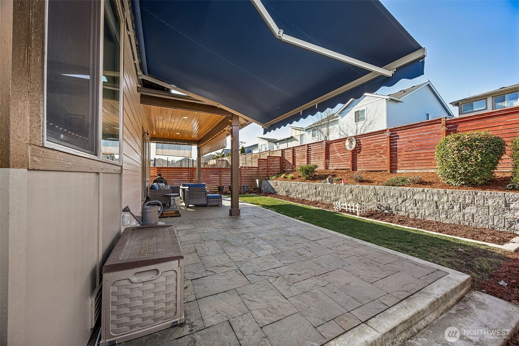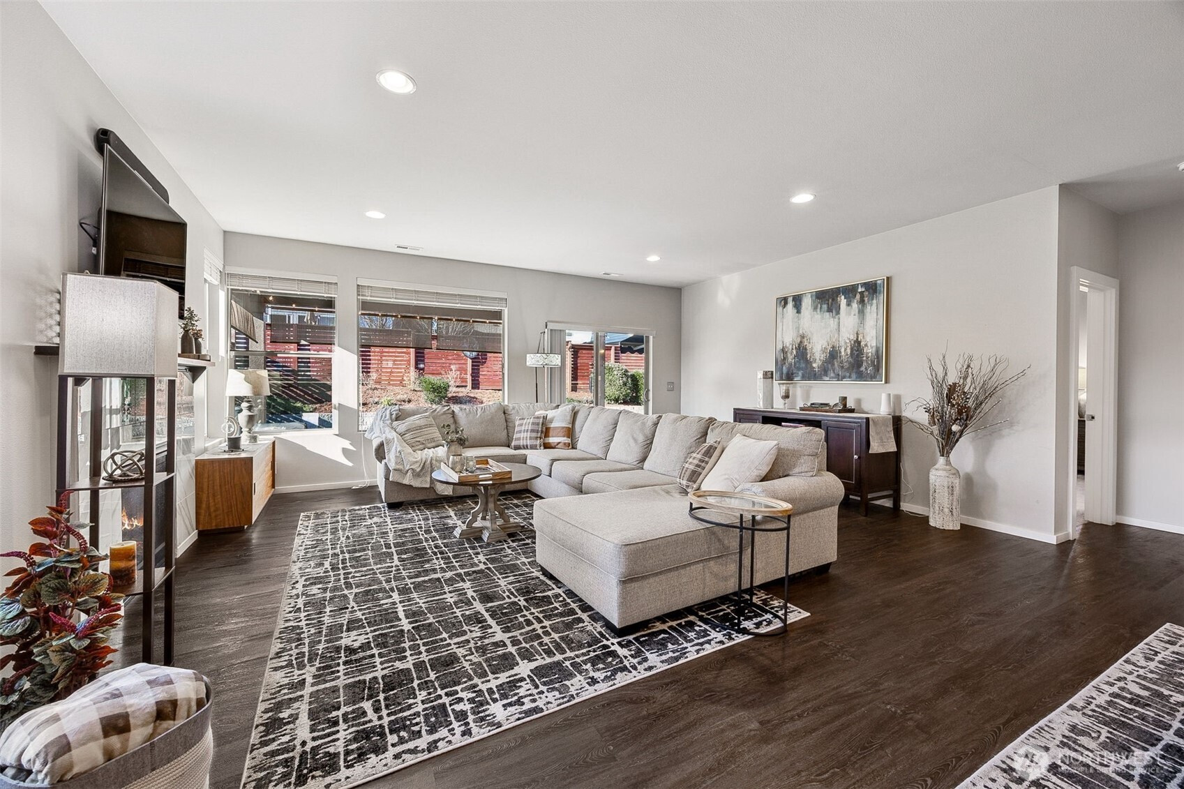 Embrace the PNW Lifestyle in this beautifully maintained home nestled in the heart of Tehaleh. Step inside to an inviting open-concept layout that seamlessly blends living, dining, & kitchen spaces, flooded with natural light & enhanced by recessed lighting throughout. The chef's kitchen is a standout, featuring an oversized island, abundant cabinet space, quartz countertops, & stainless steel appliances along with a walk-in pantry. Living room boasts a cozy gas fireplace with a custom tile surround—perfect for relaxing evenings. Primary en-suite on the main floor, complete with a spacious walk-in closet outfitted with a custom shelving system. Additional main-level highlights include a versatile office/den, laundry room, & powder room. Upstairs find two generous bedrooms, a full bath with dual sinks, & an open loft/bonus room ideal for a play area, home gym, or media space. Fresh interior & exterior paint, a tankless water heater for efficiency & Heat Pump for AC. Step outside to your private oasis: a beautifully landscaped backyard with terraced garden spaces, added pavers, a covered back porch, a remote-controlled awning for shaded relaxation. All this in Tehaleh—a nature-inspired community offering over 40 miles of scenic trails, 16+ parks, fishing ponds, & schools. Enjoy breathtaking views of Mount Rainier as your daily backdrop, with endless opportunities for hiking, biking, & outdoor adventure just steps from your door. This is more than a home—it's a lifestyle.
