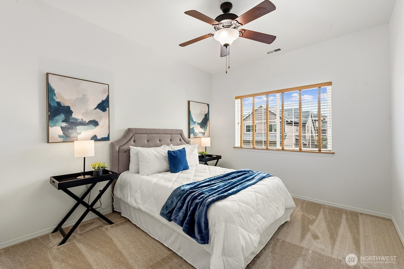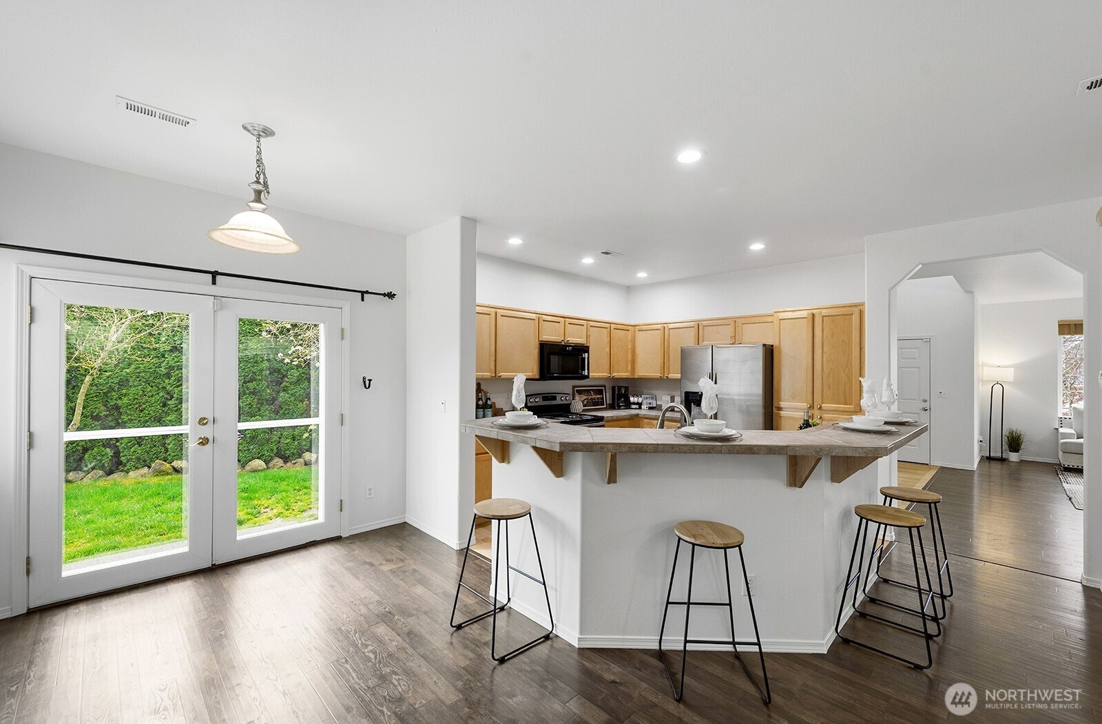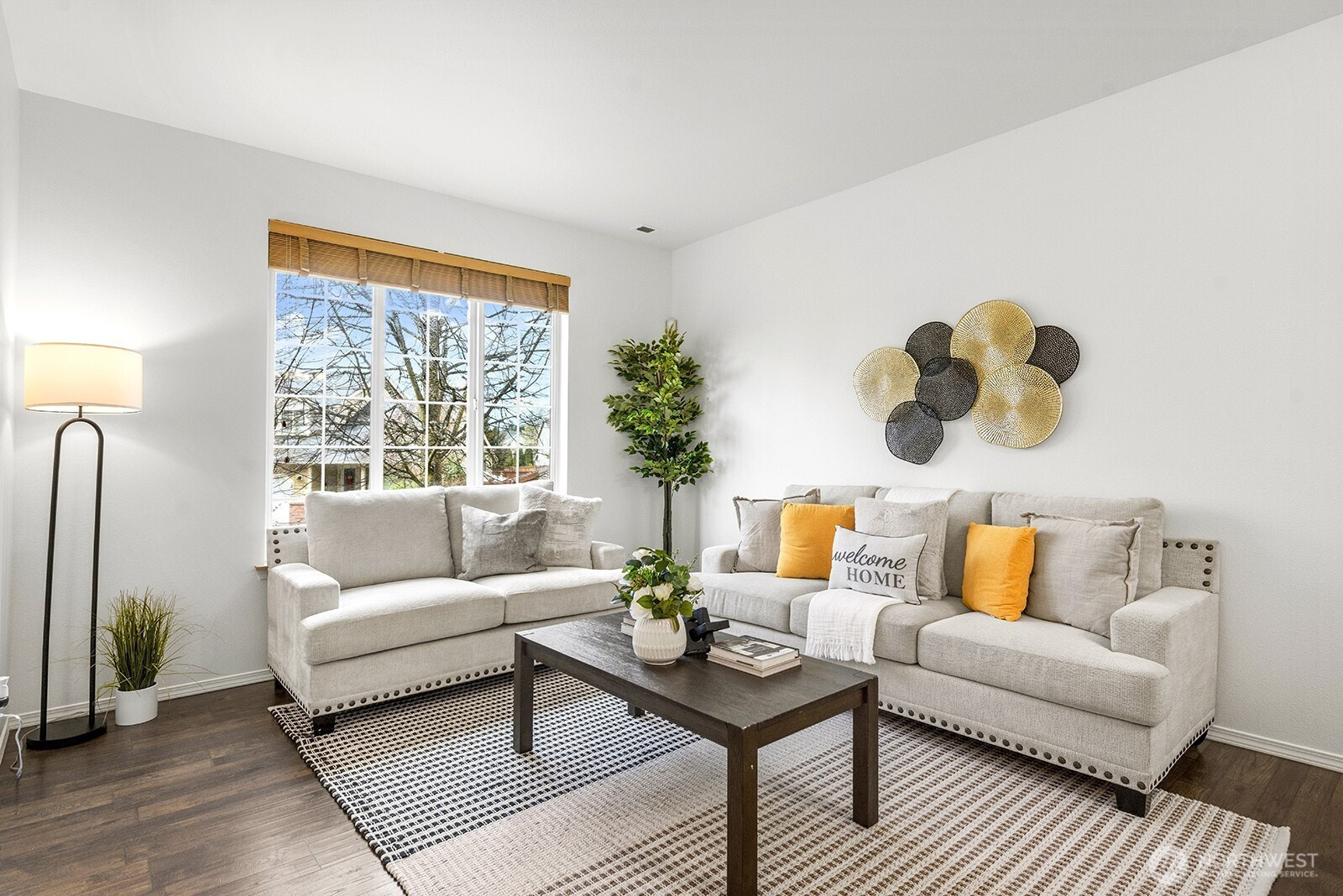 Well-maintained 4 bed, 2.5 bath home designed for comfort and functionality, featuring an open, flowing layout that seamlessly blends formal and casual living spaces. Inviting living and dining areas greet you upon entry, while the open-concept kitchen connects naturally to the family room and dining nook, creating a comfortable setting for both everyday living and entertaining, all centered around a cozy fireplace. The spacious primary suite offers a private retreat with a relaxing 5-piece bath, while three additional bedrooms provide flexibility for guests, a home office, or creative use. Updates include new interior paint, carpet, garage door, and 2021 water heater. Exterior has been refreshed with professional roof and gutter cleaning, along with power-washed concrete. ADT security system with optional monitoring (main-level entries/windows + motion detectors). Last home on alley-access row near community park, cul-de-sac style homes, and extra parking. Minutes to medical, shopping, LA Fitness, dining, and ~30 mins to JBLM, Costco, Hwy 512.
